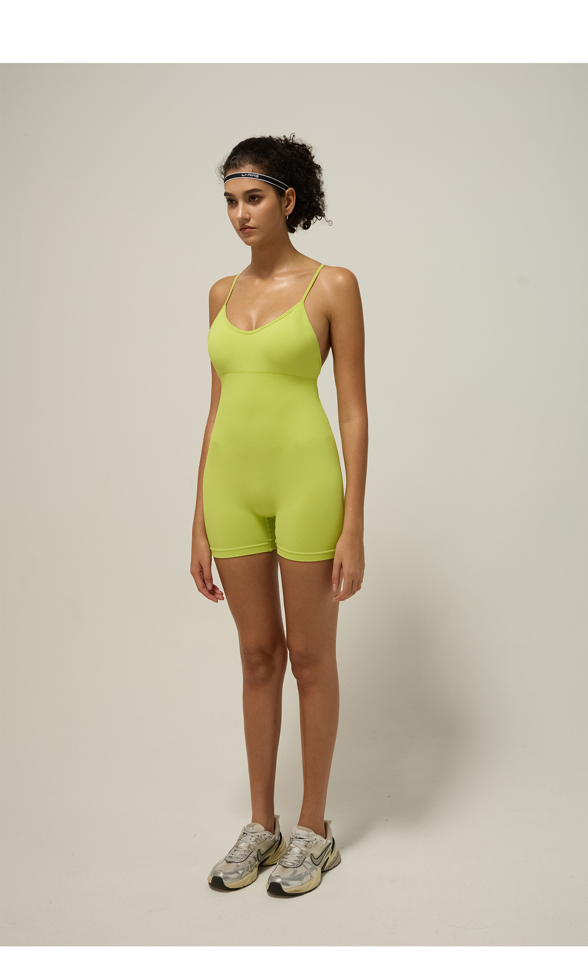 跨境欧美带胸垫交叉吊带连体瑜伽服女美背运动连体衣训练健身服
