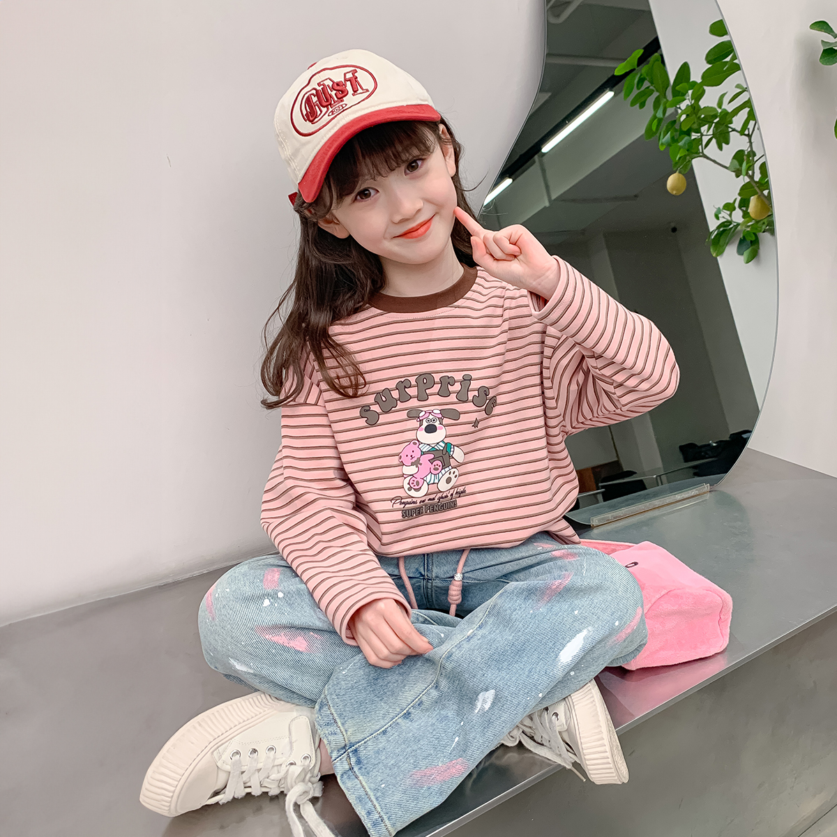 소녀 긴팔 티셔츠 봄과 가을 2024 새로운 아동복 소녀 봄 스트라이프 탑 어린이 봄베이스 셔츠스토어 가기