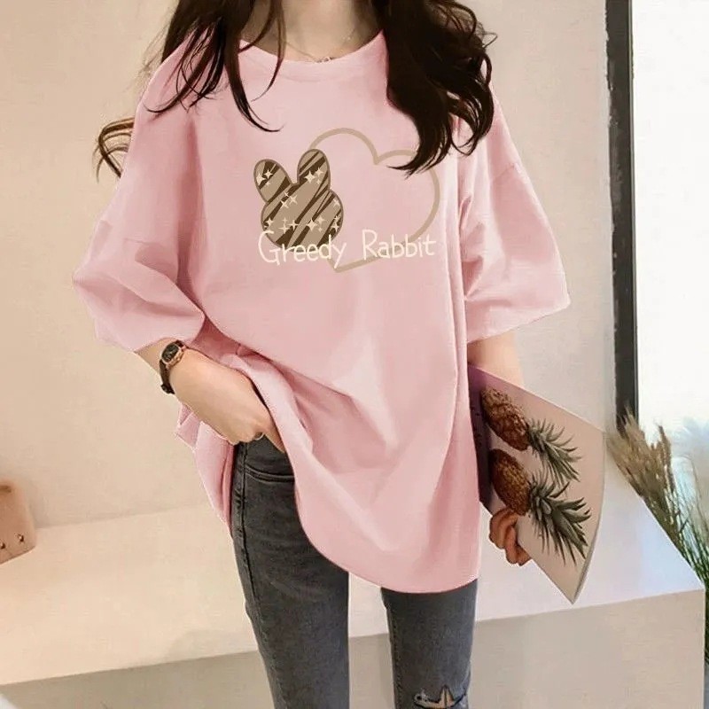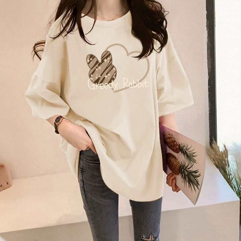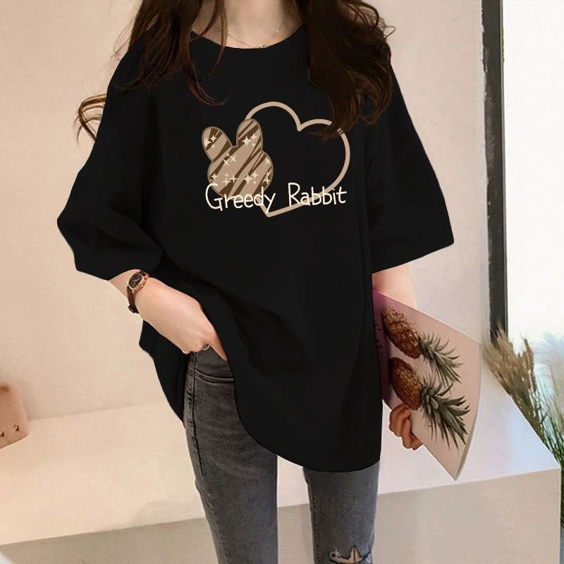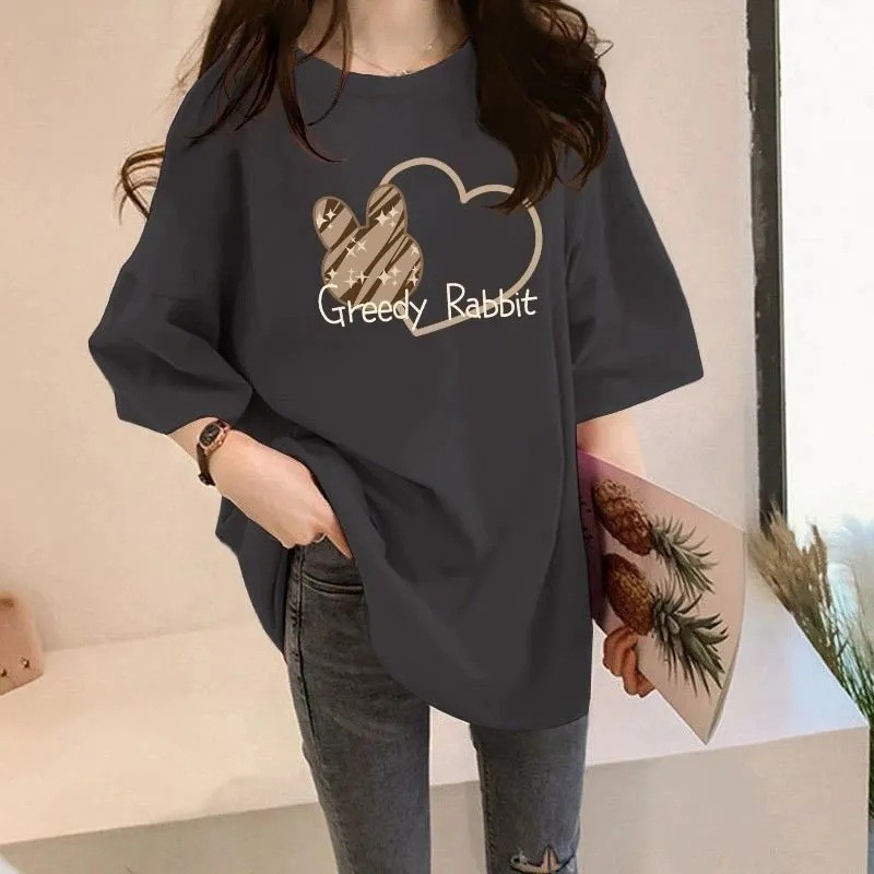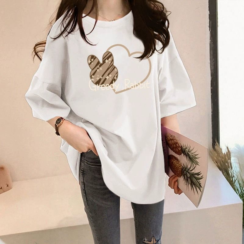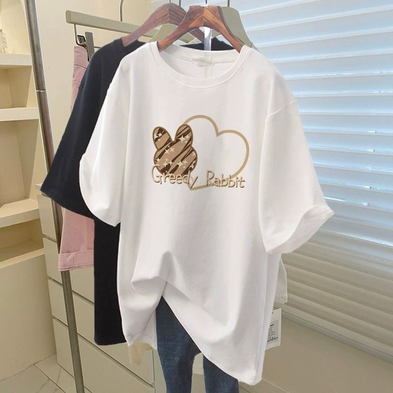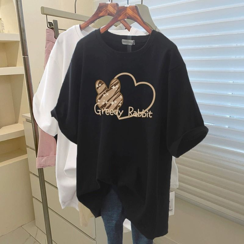 통통녀 1.00 kg-150.00 kg 최고 여자 루즈 올 매치 2024 여름 새 티셔츠 플러스 사이즈 오버 사이즈 반팔 티셔츠