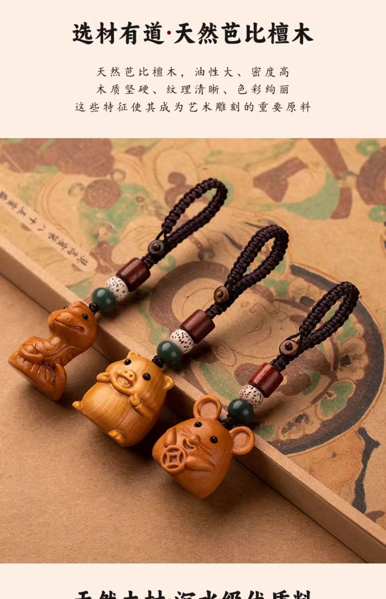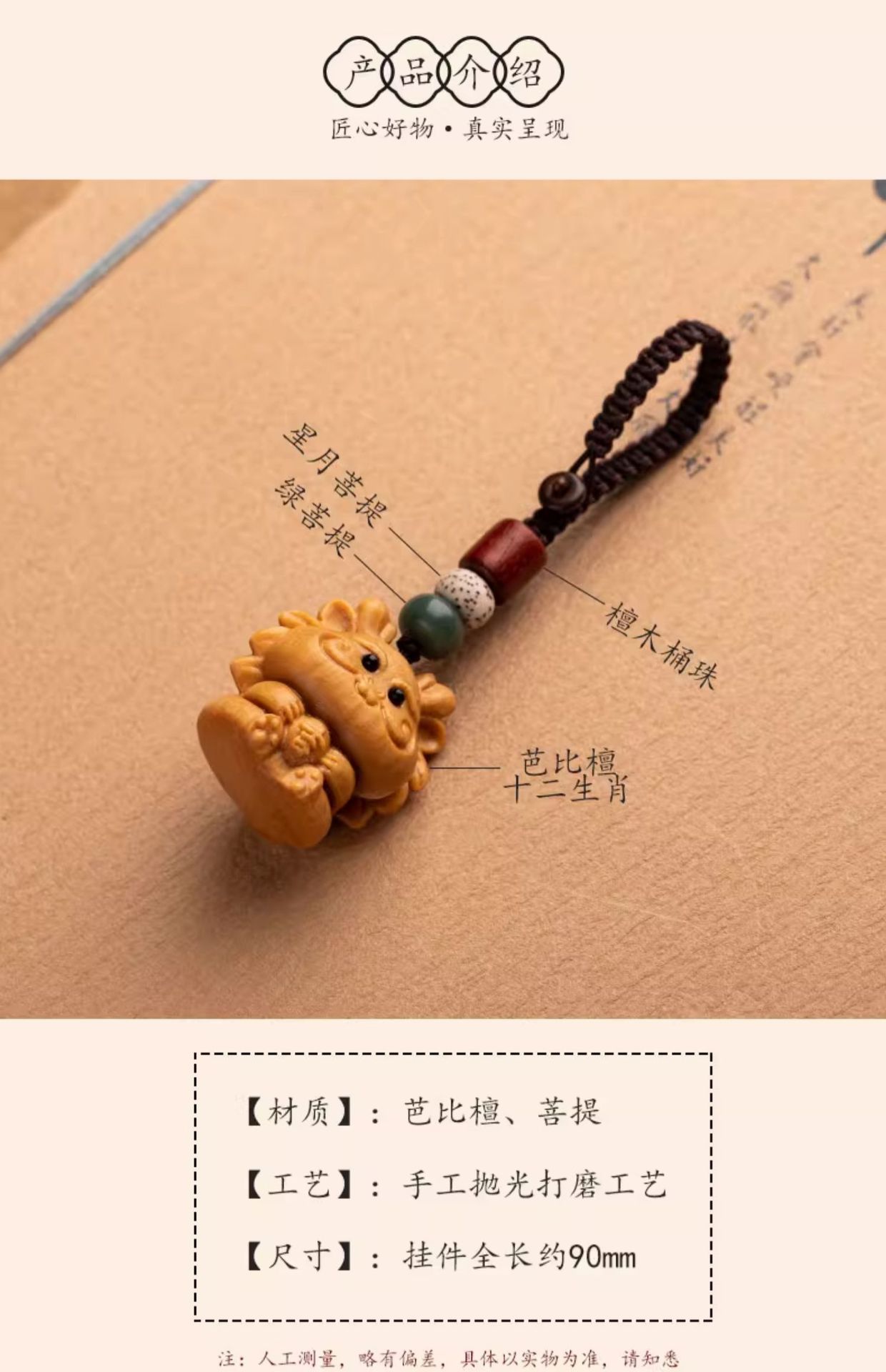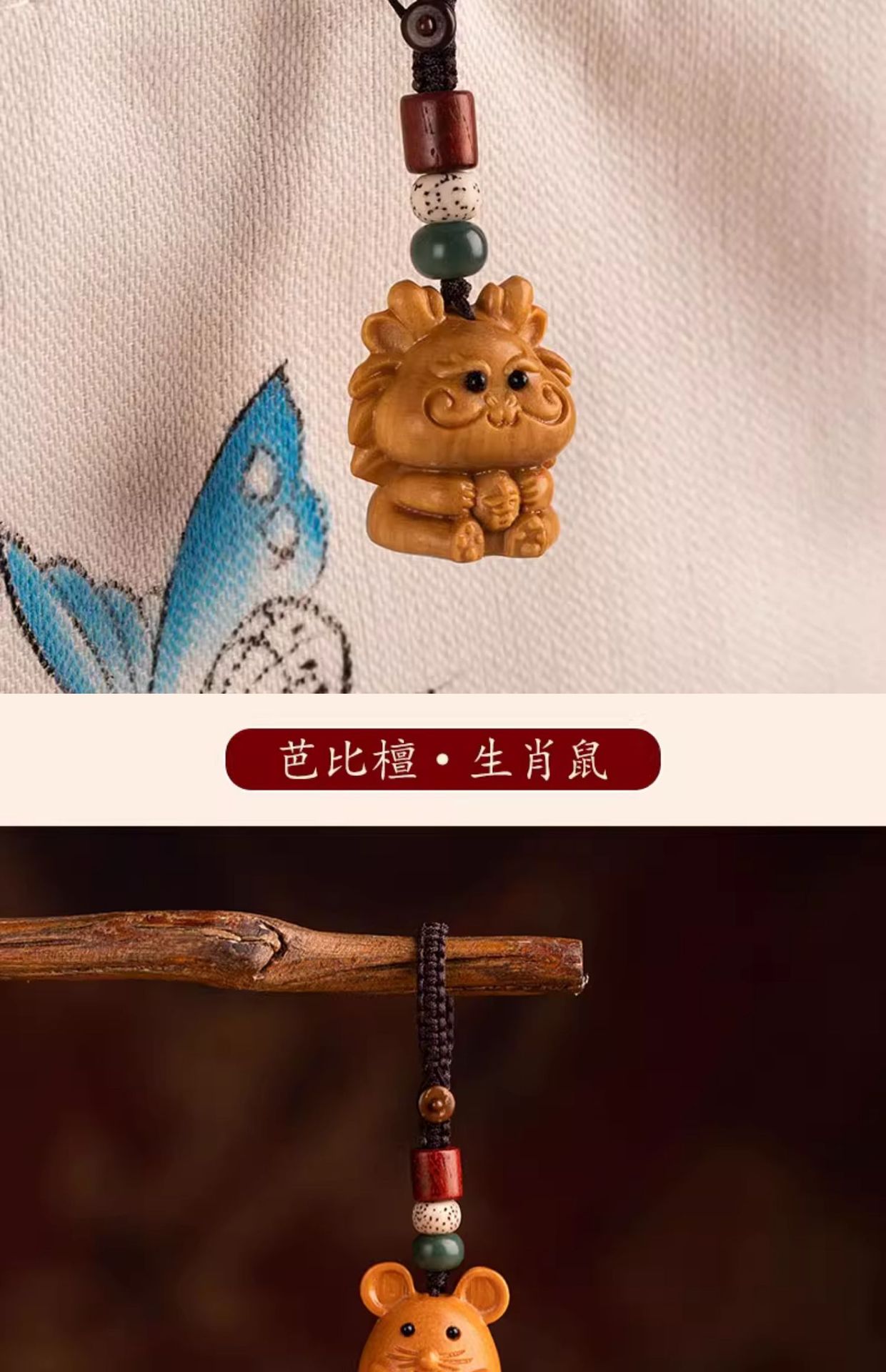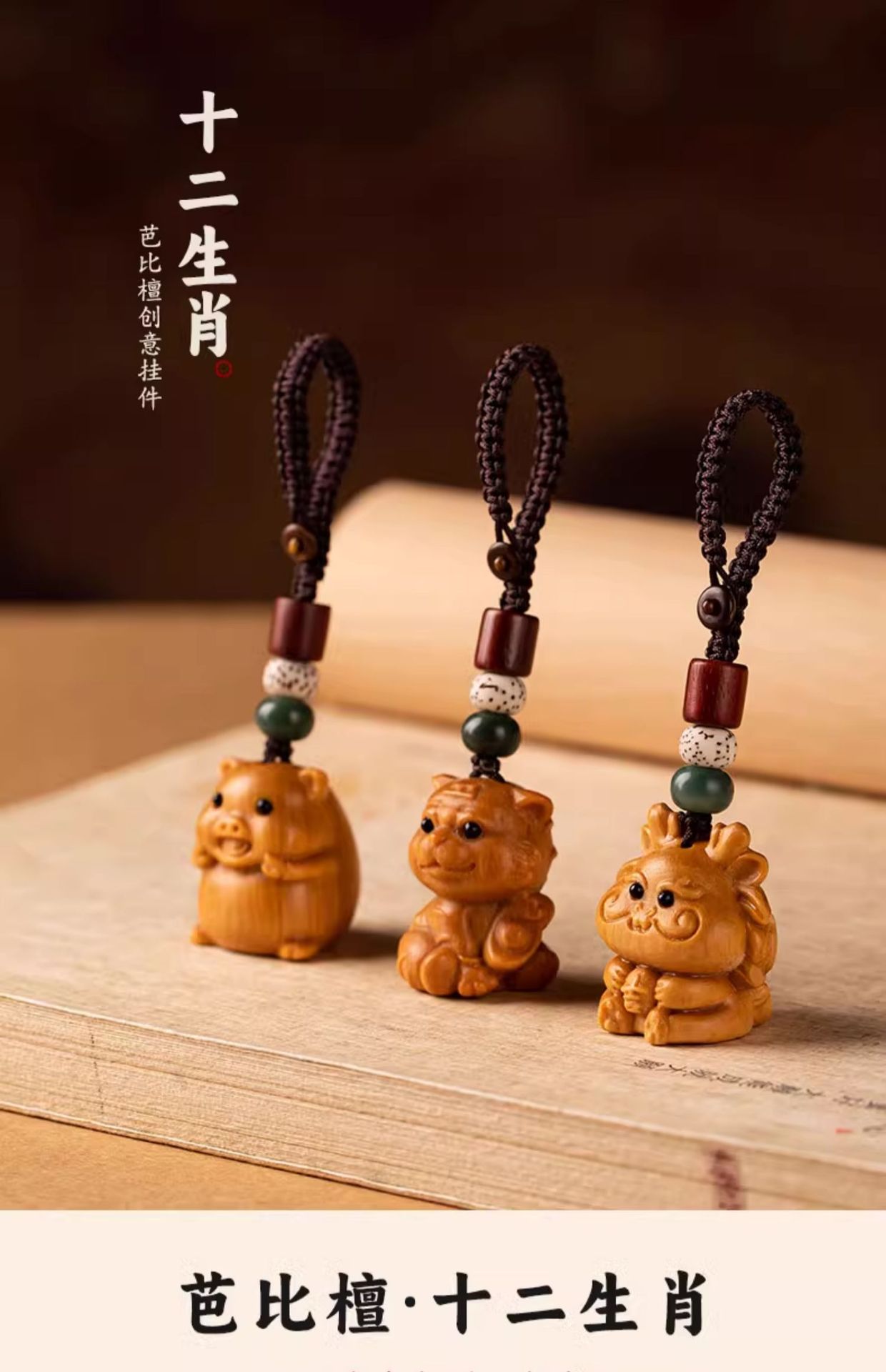 샌달 우드 조디악 키 체인 쥐 Ox 타이거 토끼 뱀 말 양 원숭이 치킨 개 돼지 용 올해 자동차 펜던트 하이 엔드스토어 가기