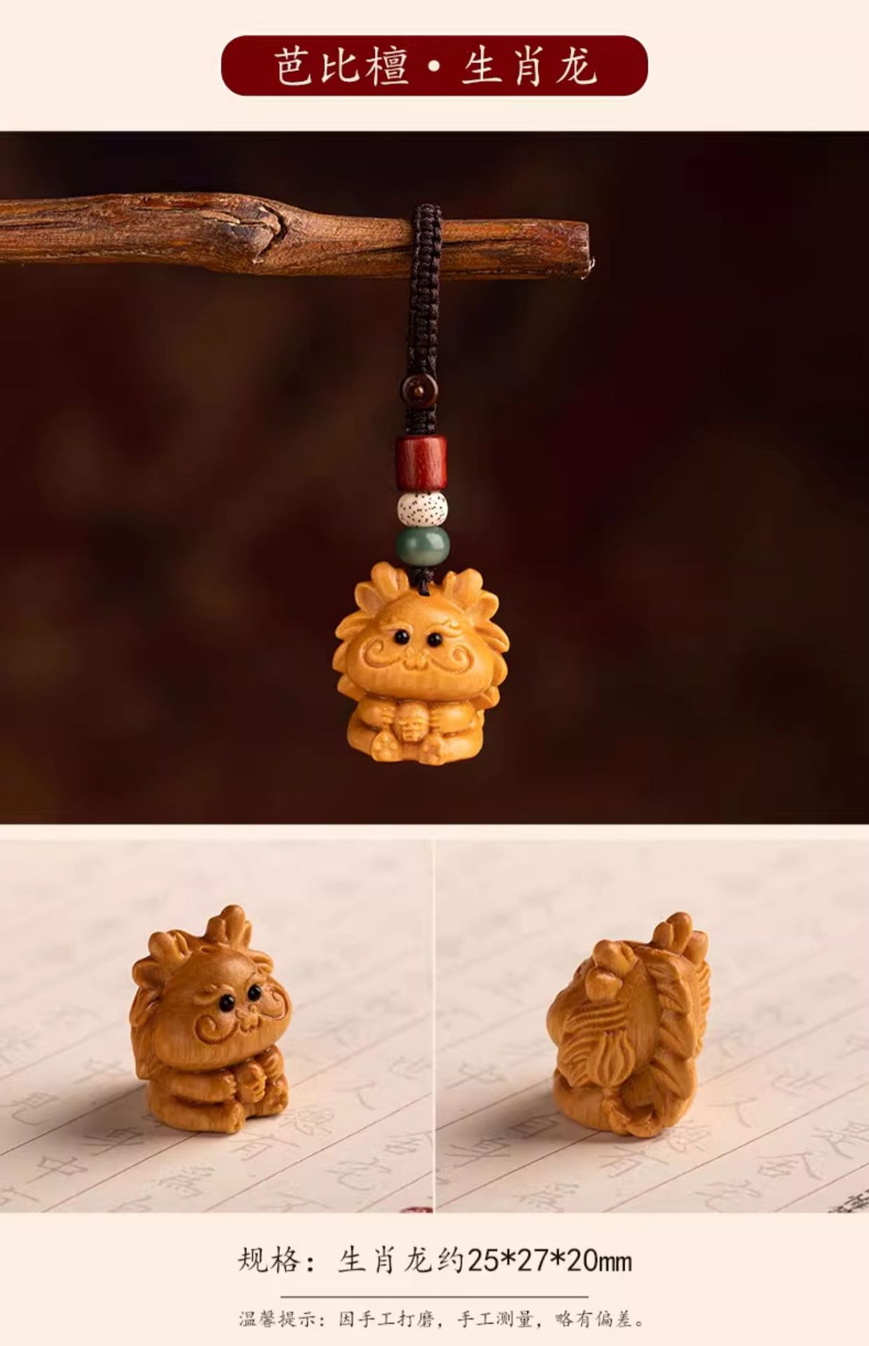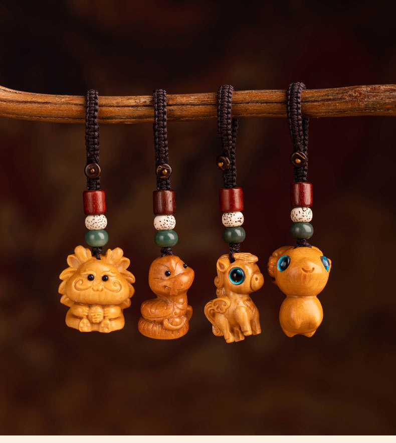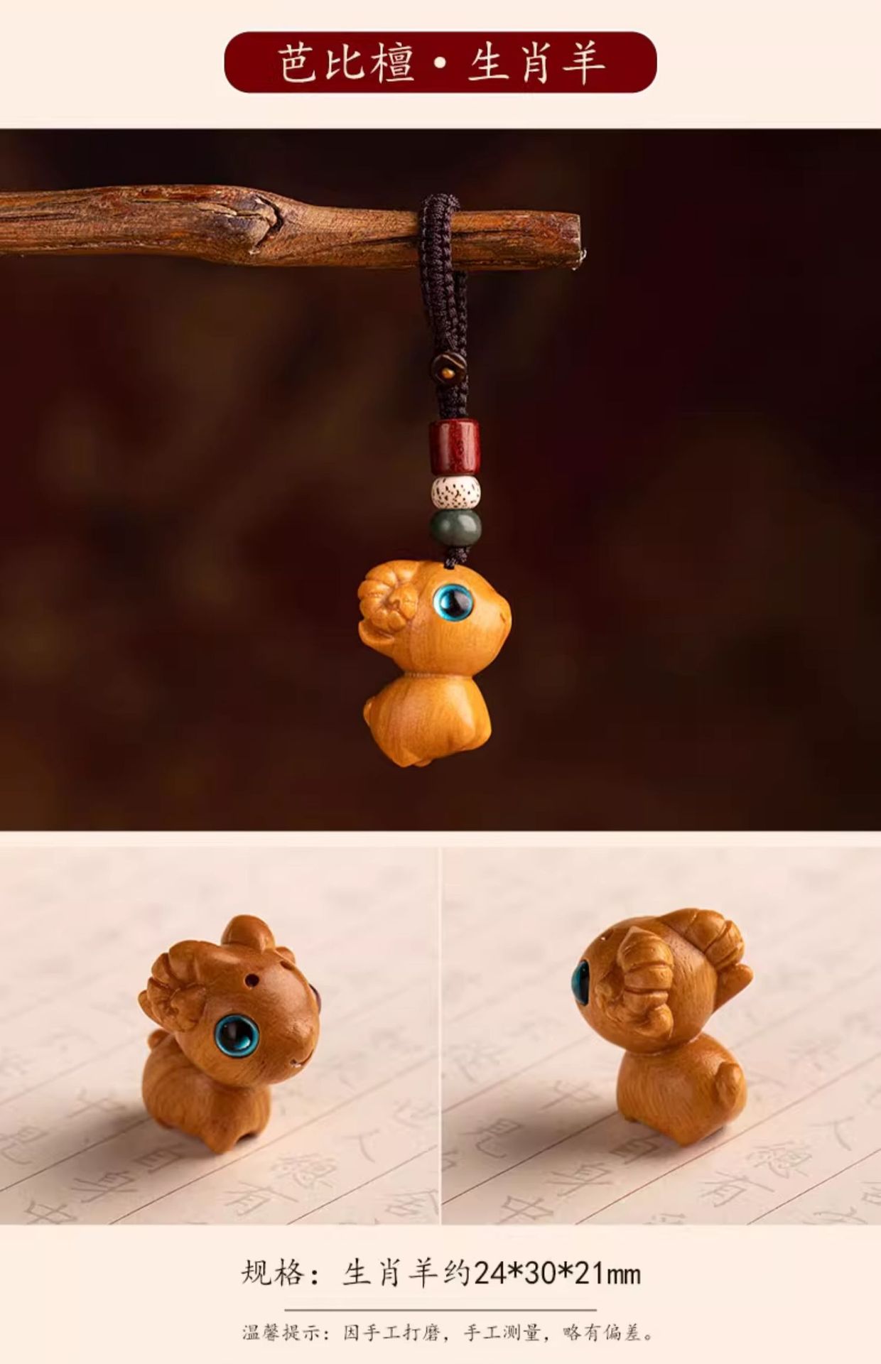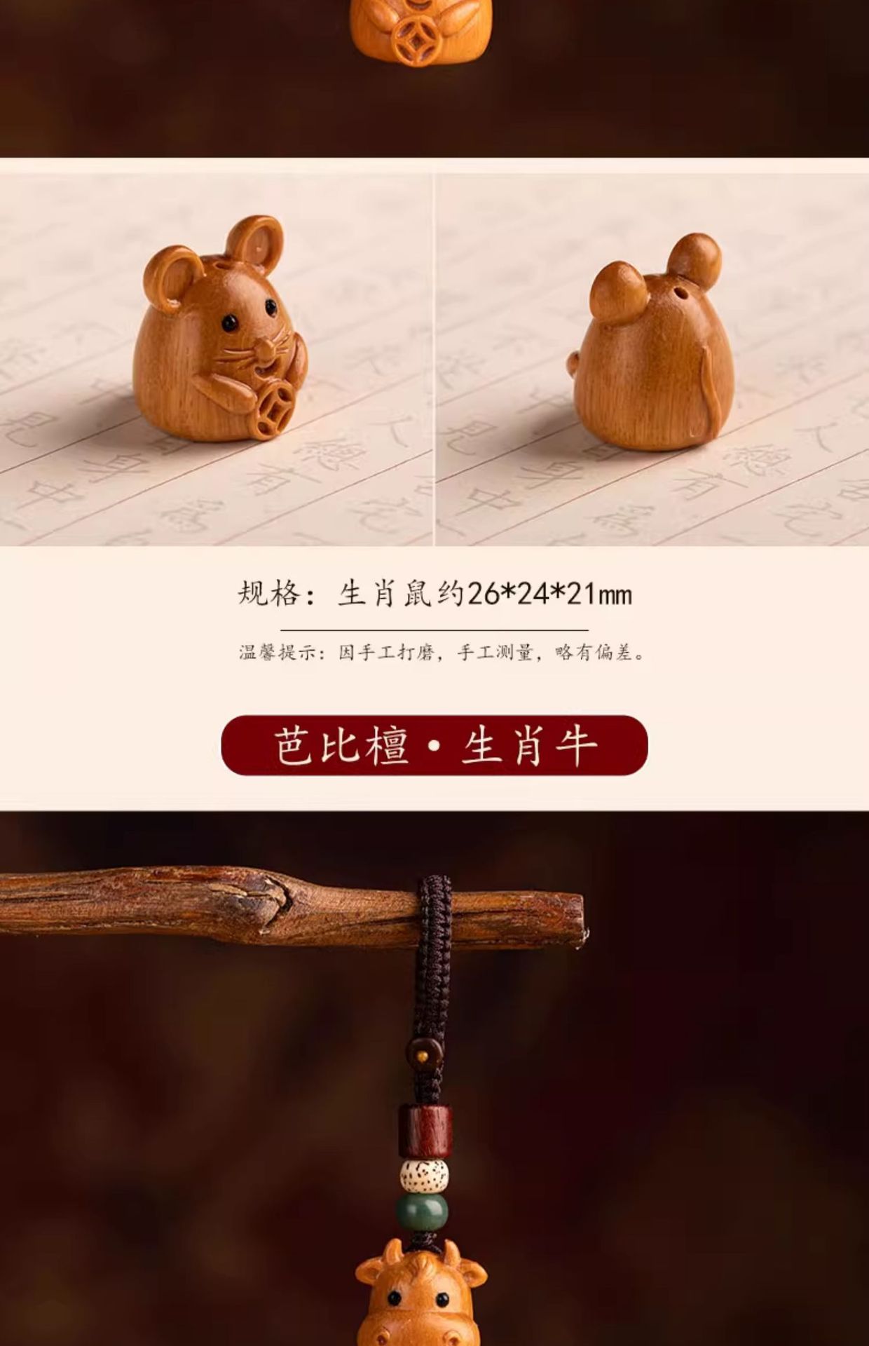 샌달 우드 조디악 키 체인 쥐 Ox 타이거 토끼 뱀 말 양 원숭이 치킨 개 돼지 용 올해 자동차 펜던트 하이 엔드스토어 가기