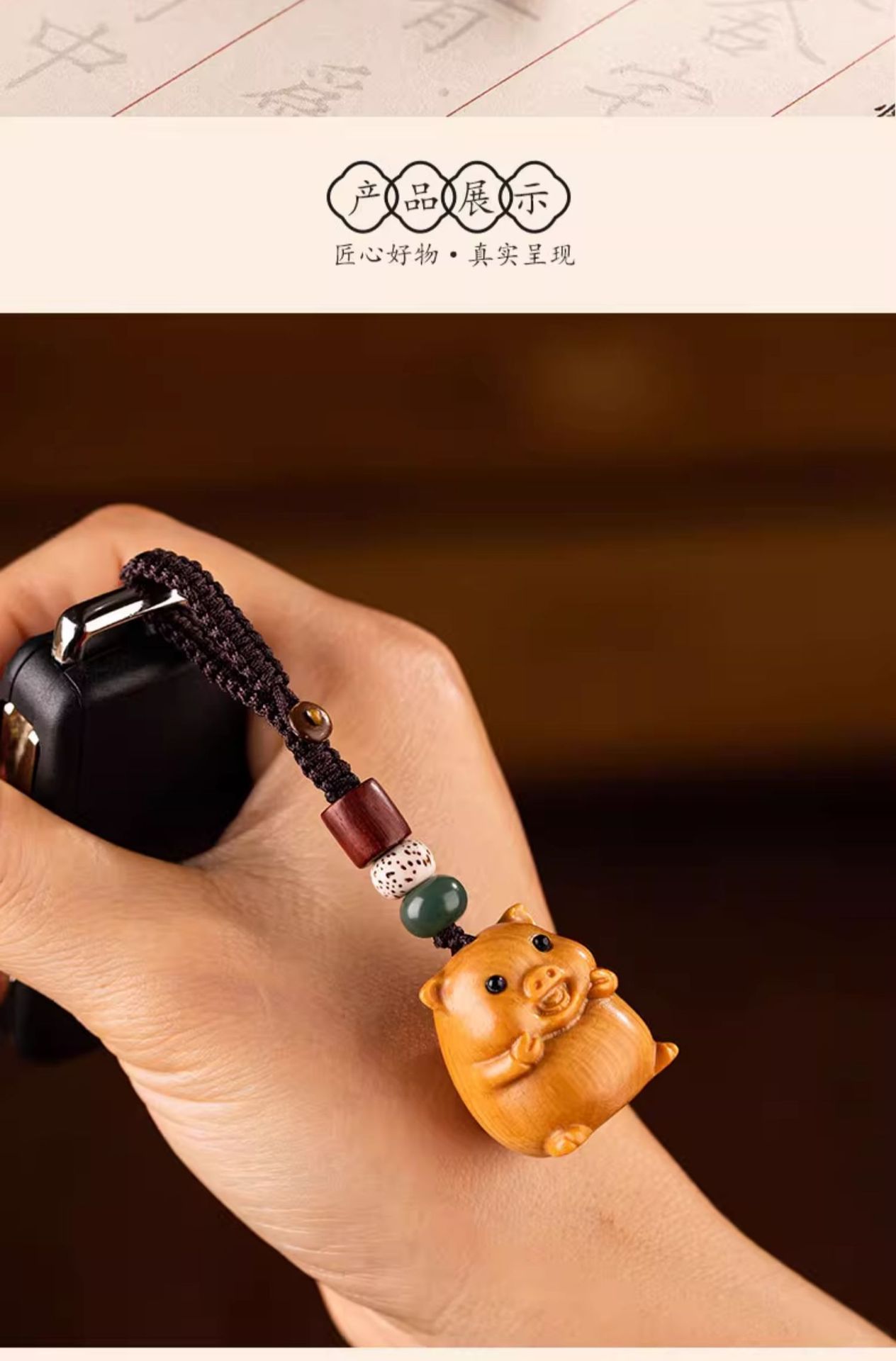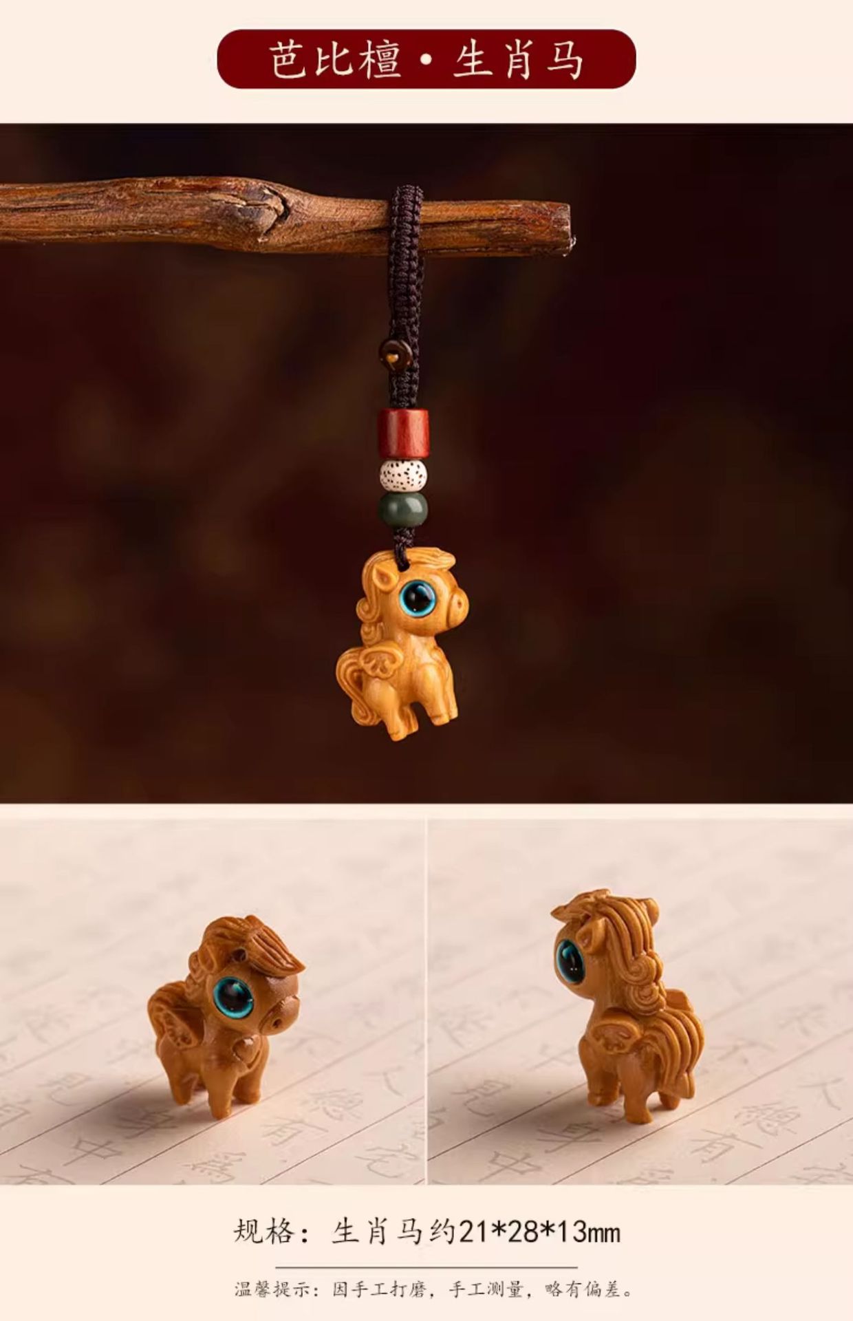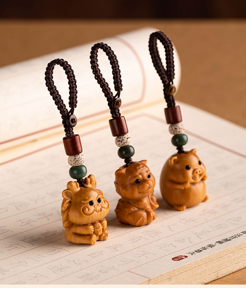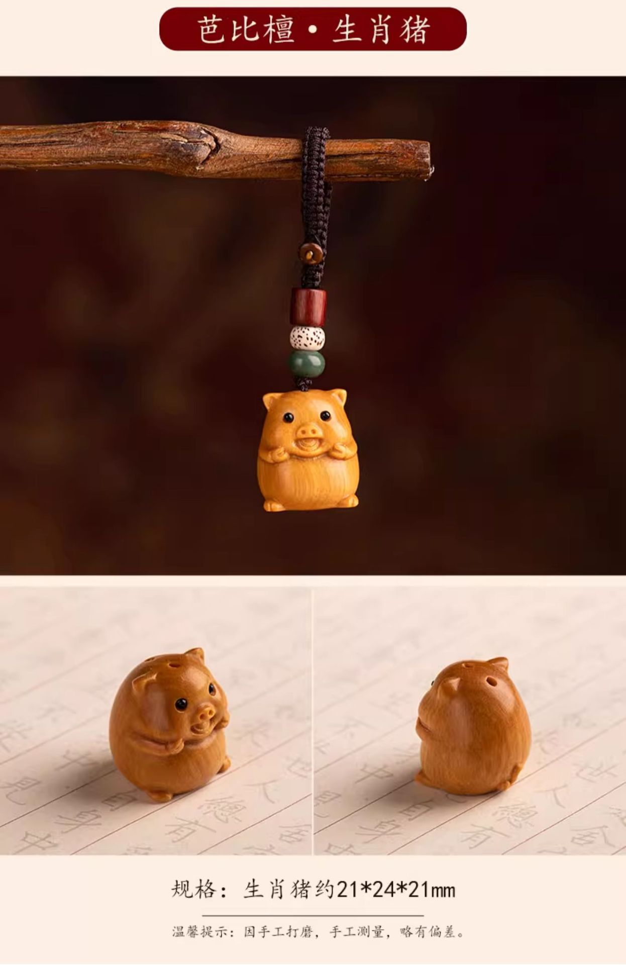 샌달 우드 조디악 키 체인 쥐 Ox 타이거 토끼 뱀 말 양 원숭이 치킨 개 돼지 용 올해 자동차 펜던트 하이 엔드스토어 가기