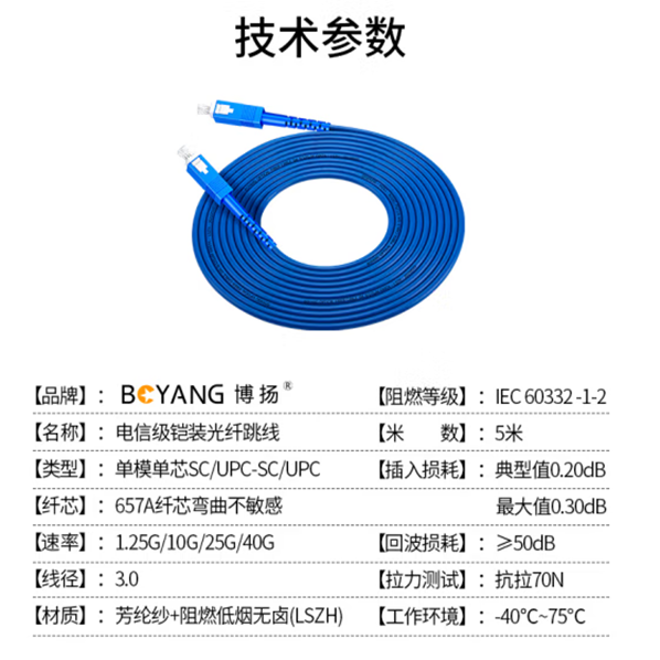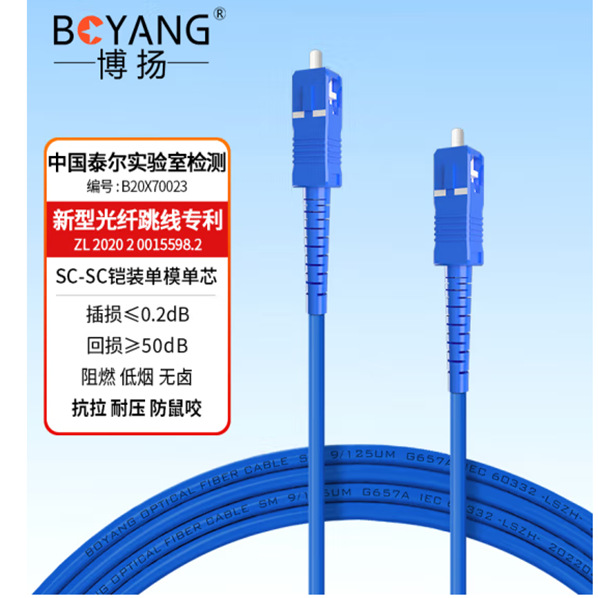 博扬(BOYANG)BY-K3111S 电信级铠装光纤跳线sc-sc 3米 单模单芯 抗拉压防鼠咬低烟无卤环保网线光纤线