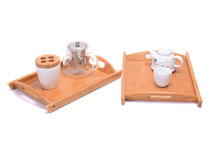 대나무 호텔 오른쪽 앵글 트레이 홈 대나무 나무 핸들 플레이트 티 트레이 레스토랑 패스트 푸드 플레이트 바이나럴 과일 트레이