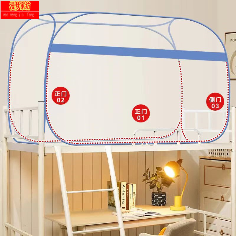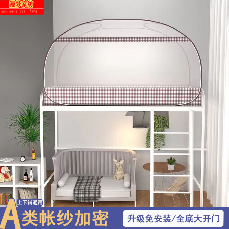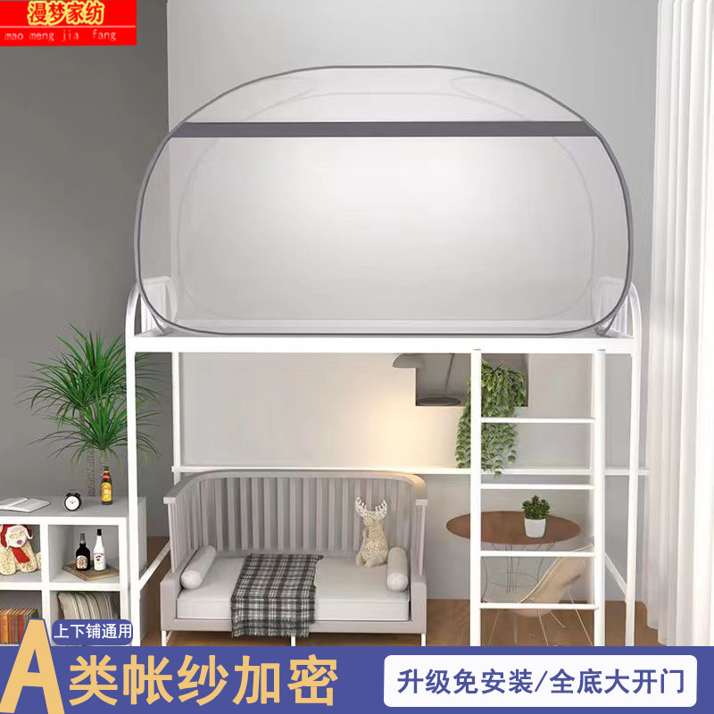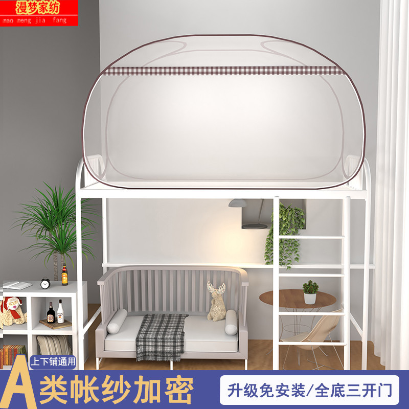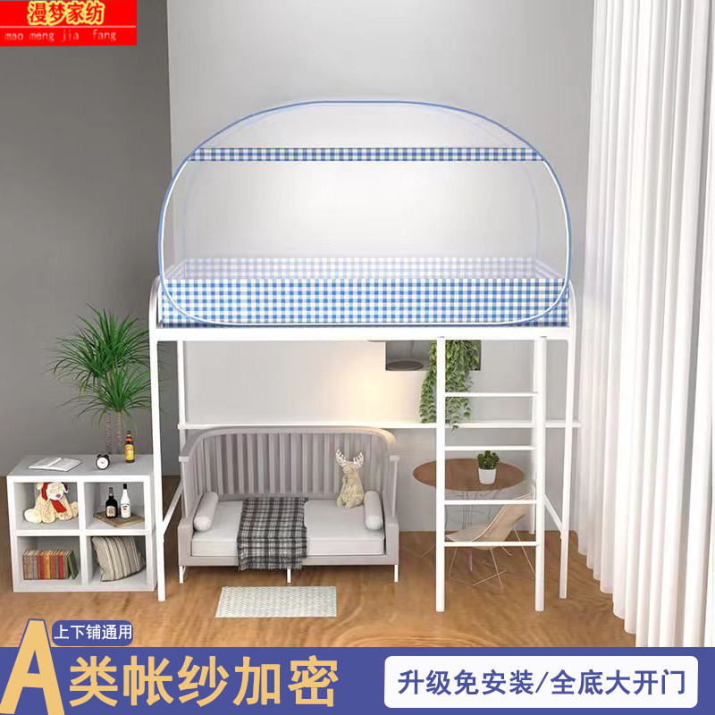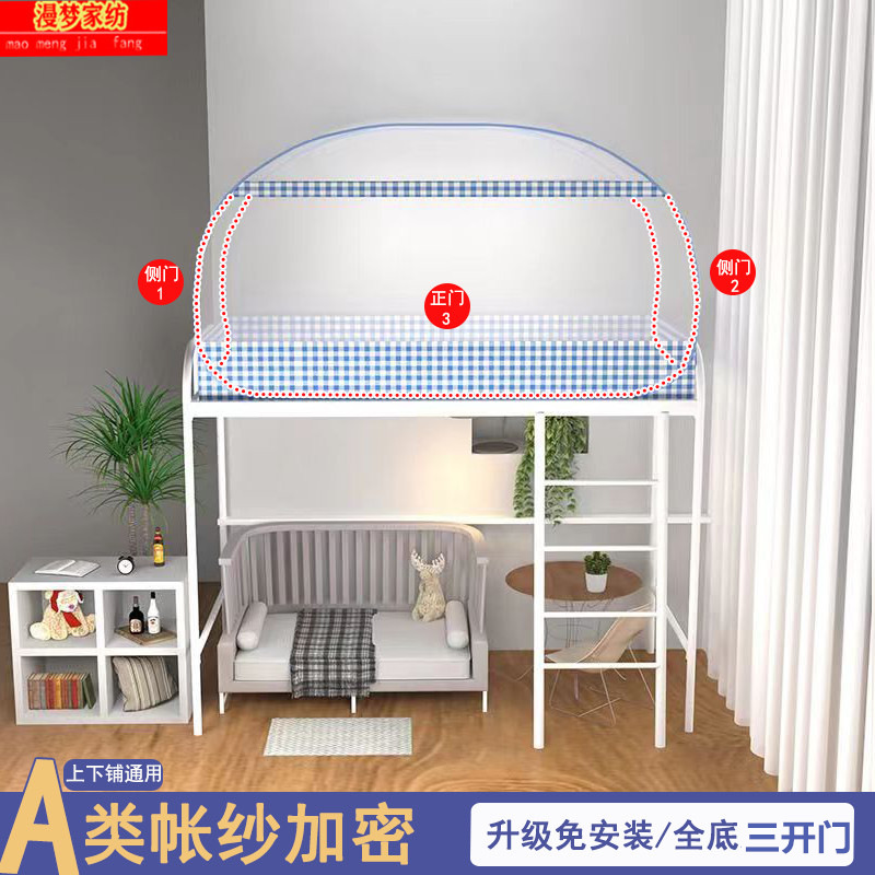 P66D 몽골 유르트 모기장 학생 기숙사 어머니 침대 1.0m 더블 레이어 싱글 도어 상단 및 하단 벙크 무료 설치 1.5 m 3