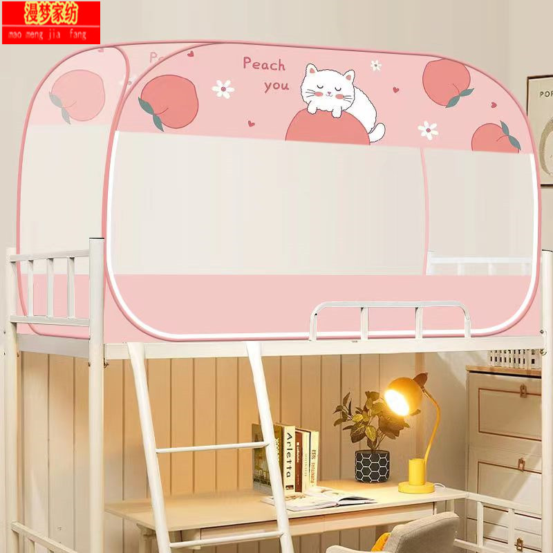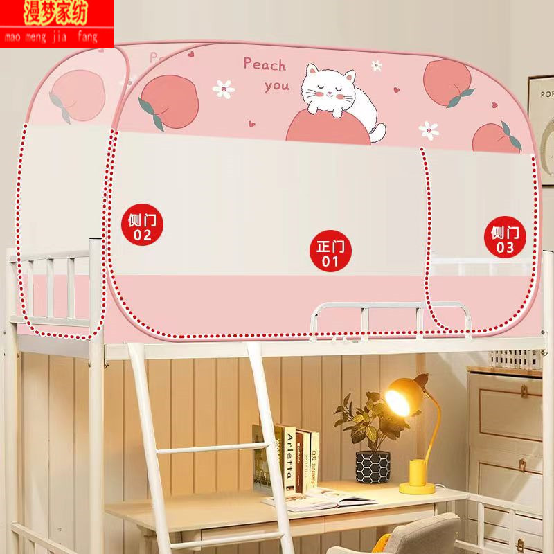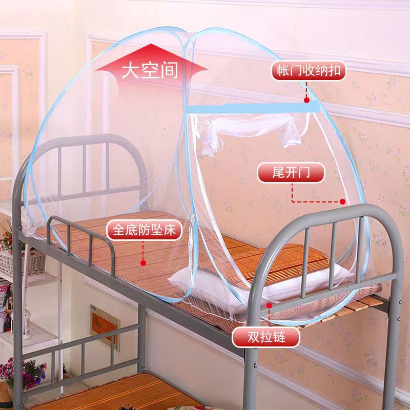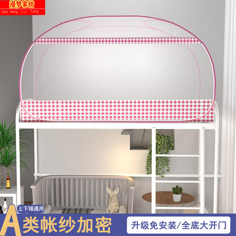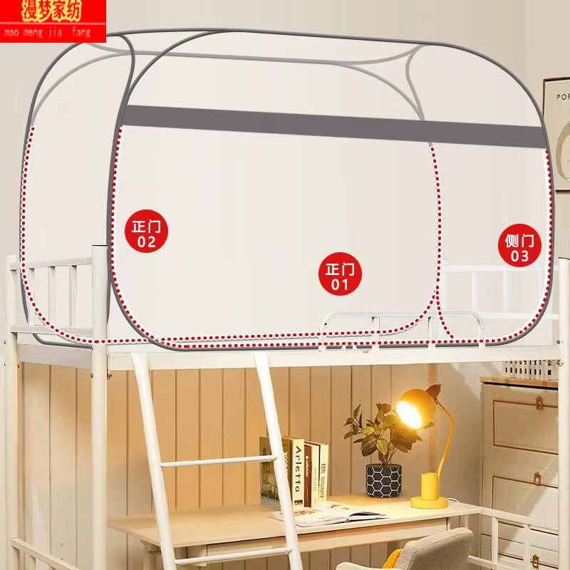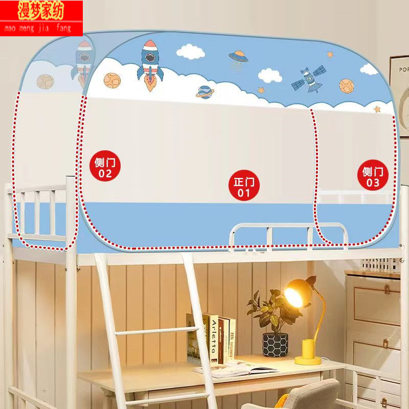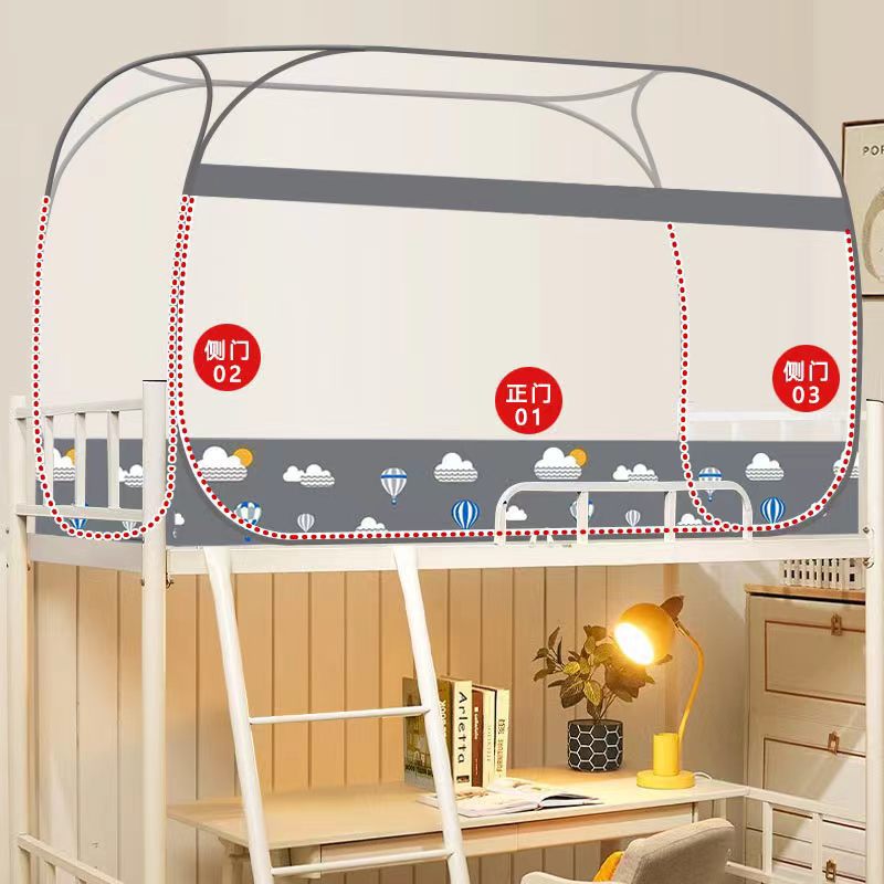 P66D 몽골 유르트 모기장 학생 기숙사 어머니 침대 1.0m 더블 레이어 싱글 도어 상단 및 하단 벙크 무료 설치 1.5 m 3