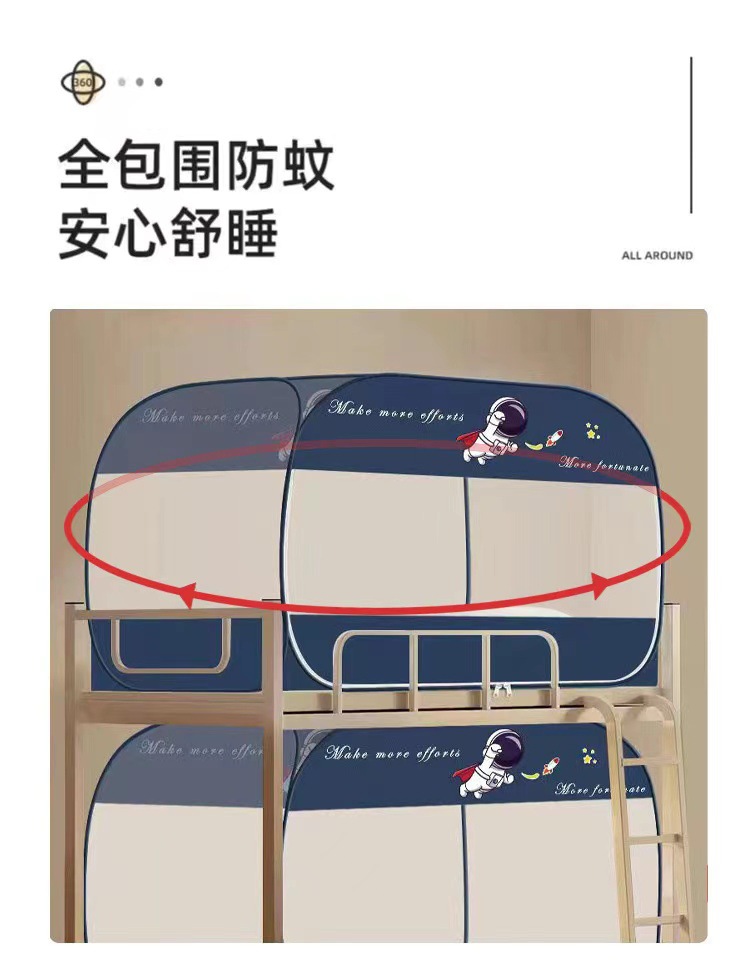 P66D 몽골 유르트 모기장 학생 기숙사 어머니 침대 1.0m 더블 레이어 싱글 도어 상단 및 하단 벙크 무료 설치 1.5 m 3스토어 가기