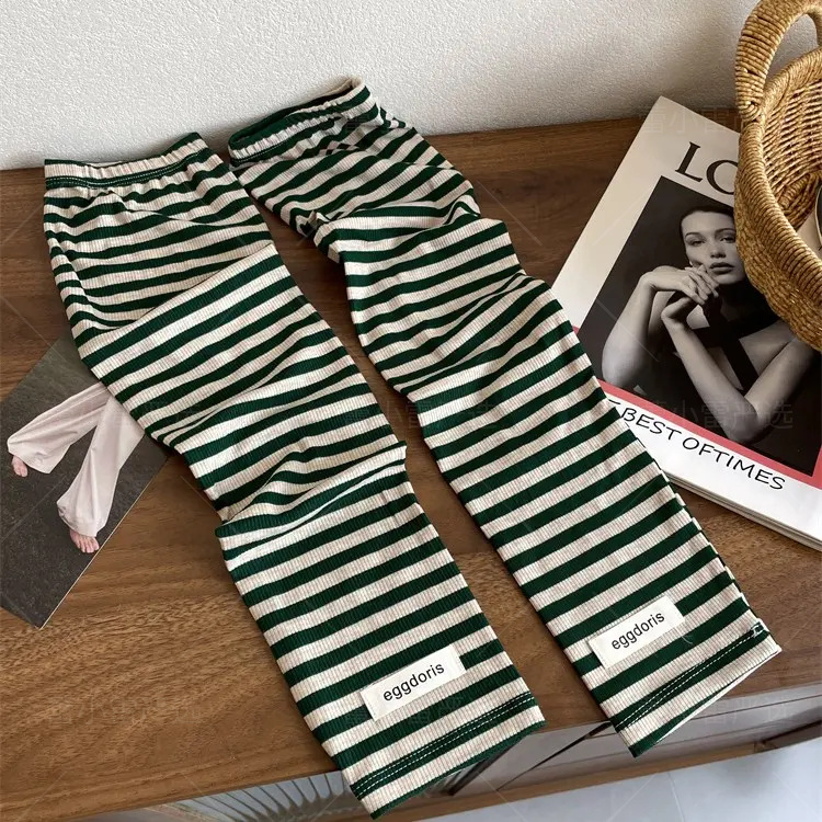 • INS 새로운 줄무늬 녹색 분말-소매