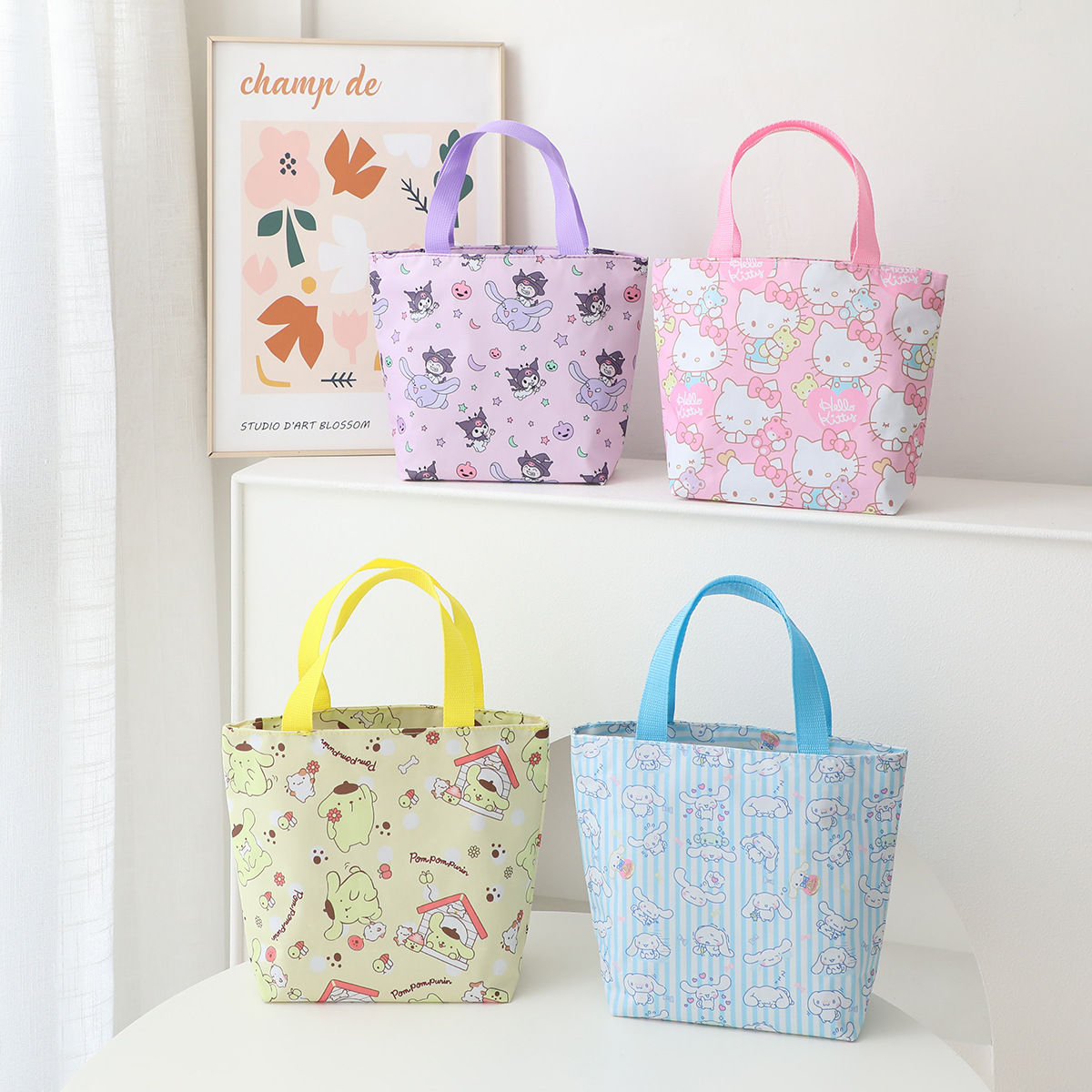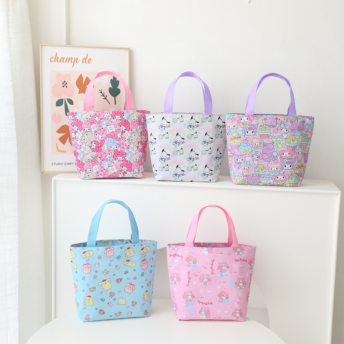 새로운 만화 흰 개 Kulomi Merlot 방수 손 보관 가방 학생 도시락 가방 핸드백스토어 가기