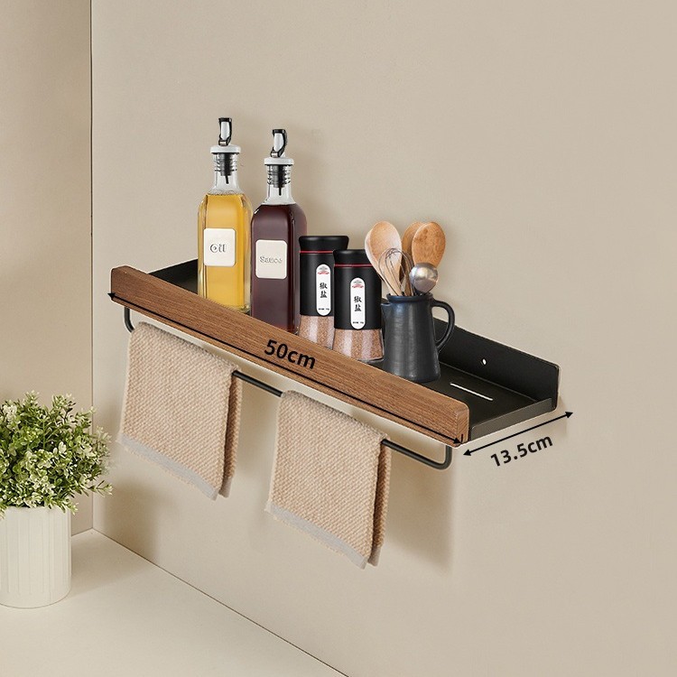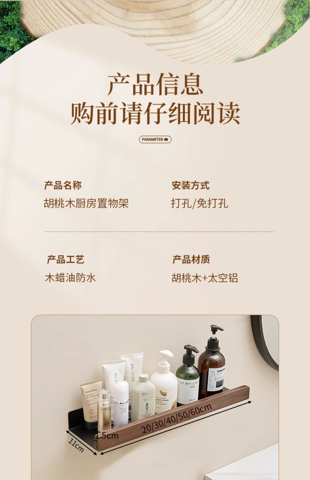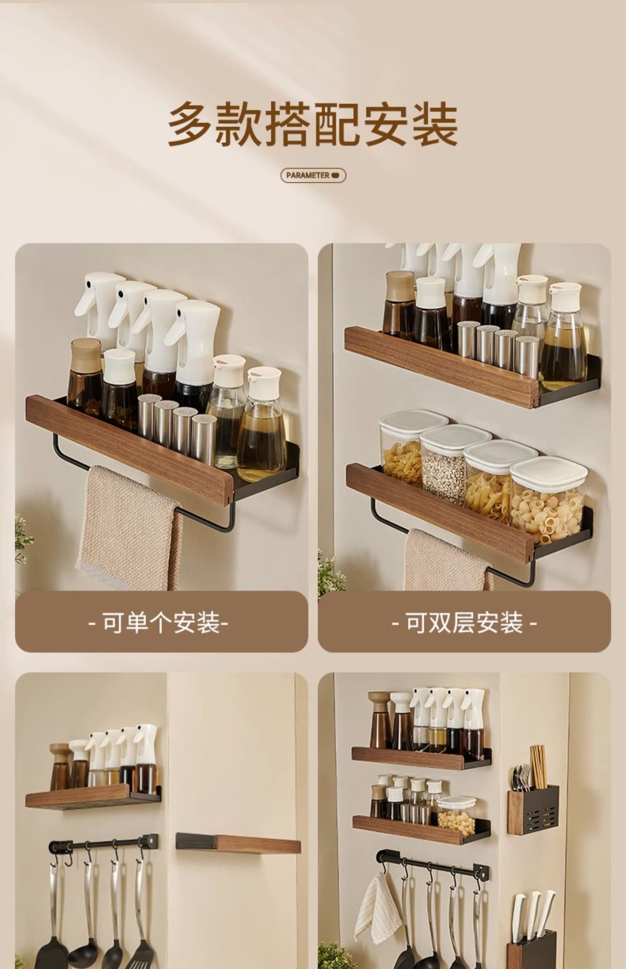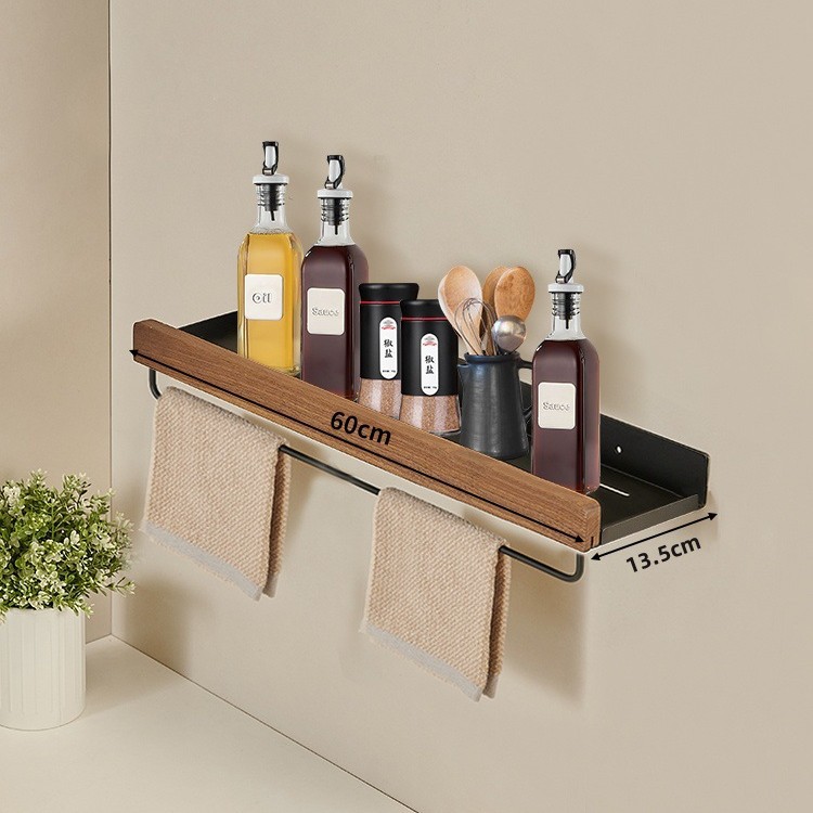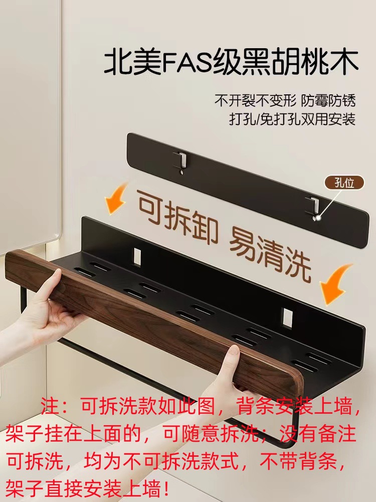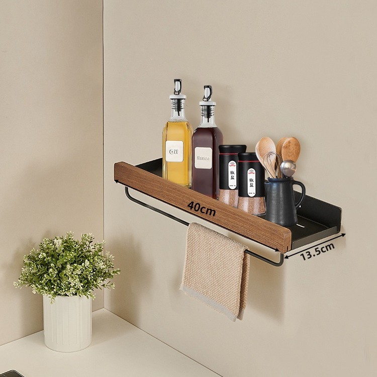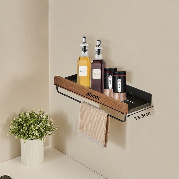단단한 나무 주방 양념 저장 랙 다기능 호두 욕실 벽 욕실 보관 수건 선반