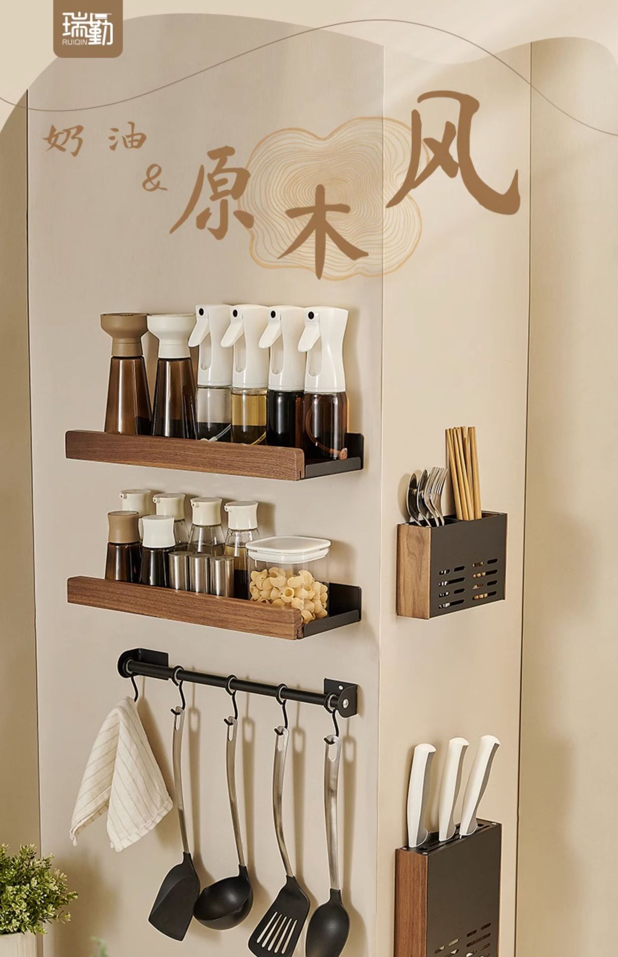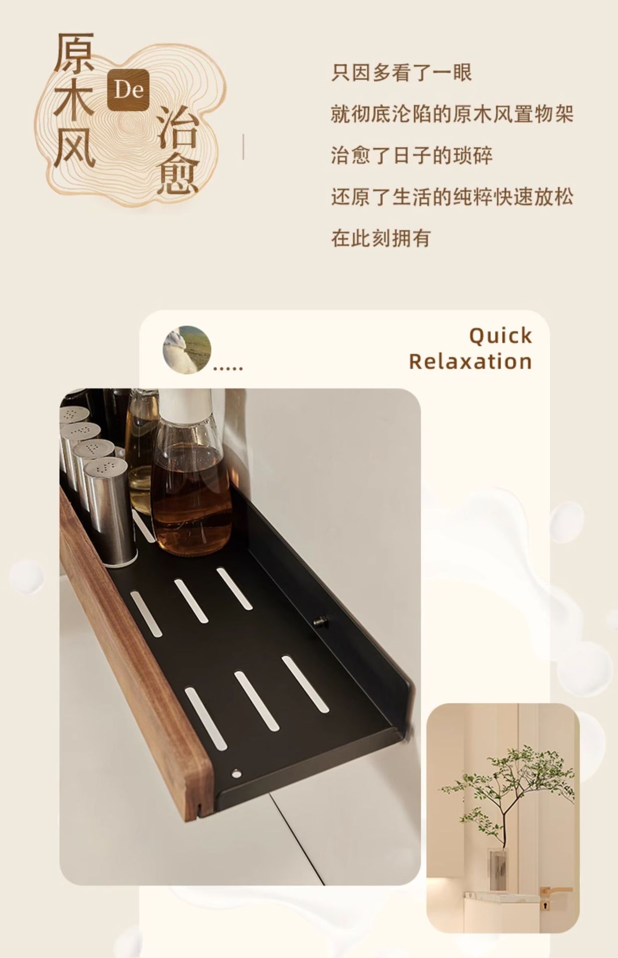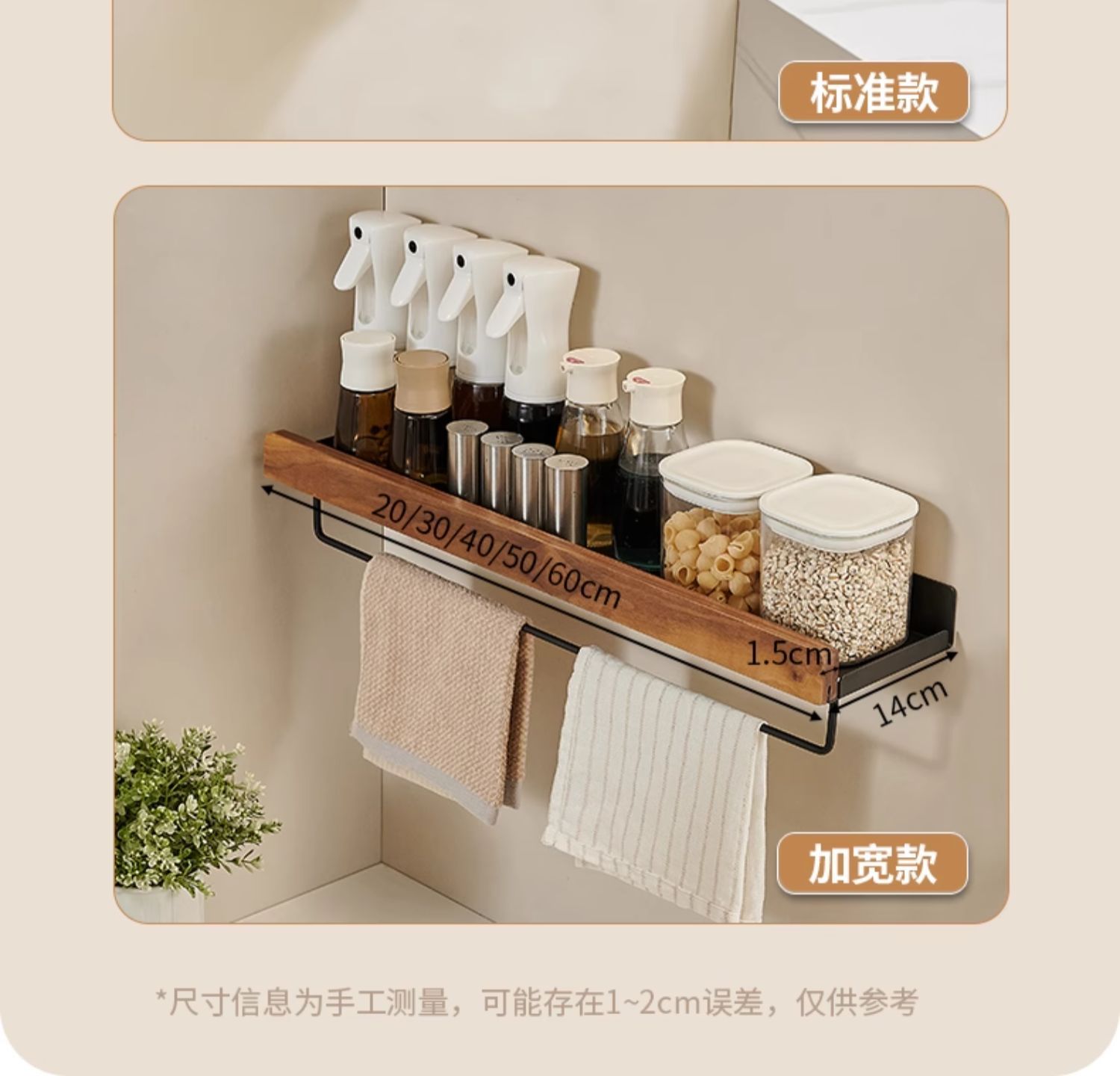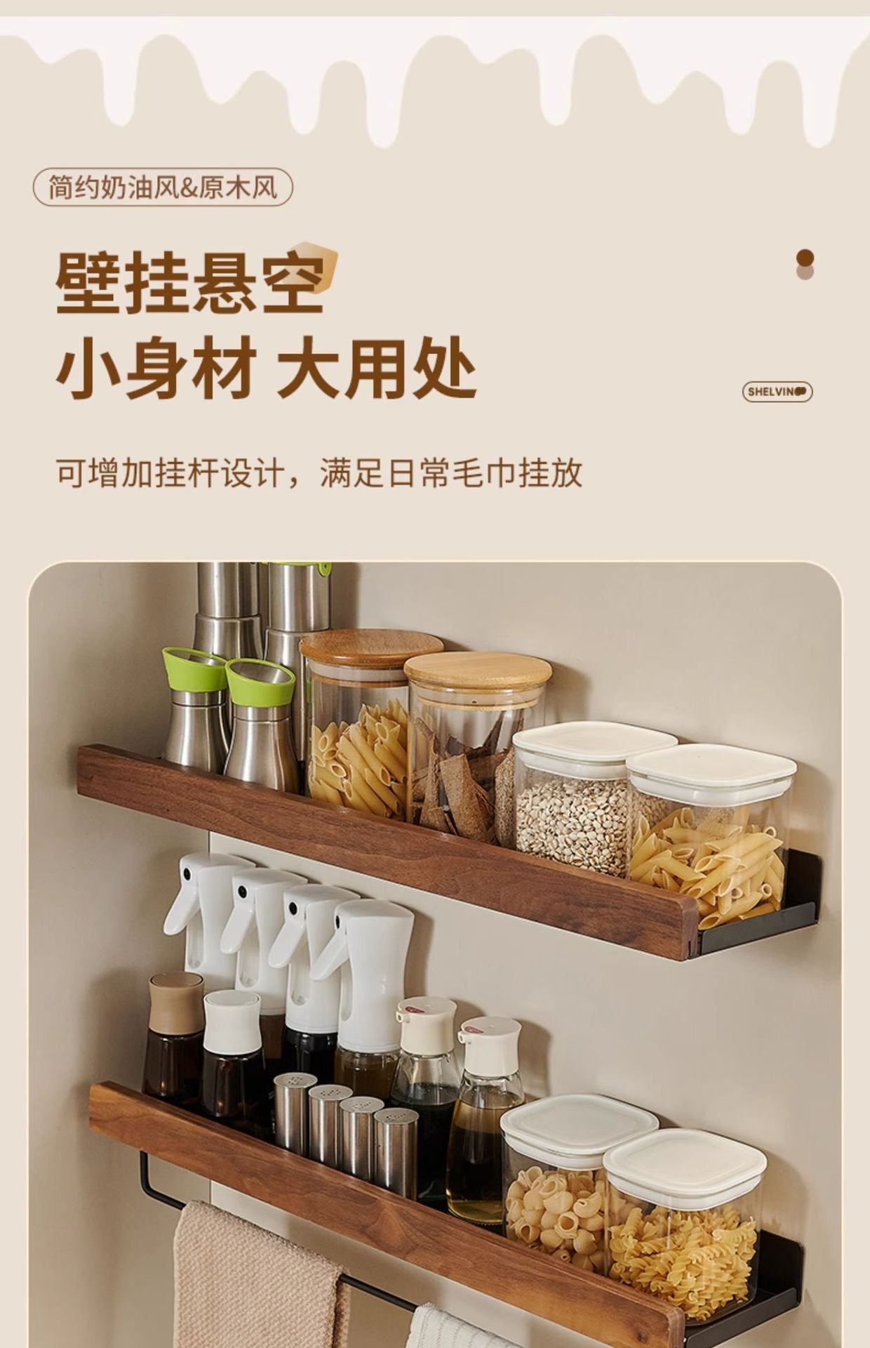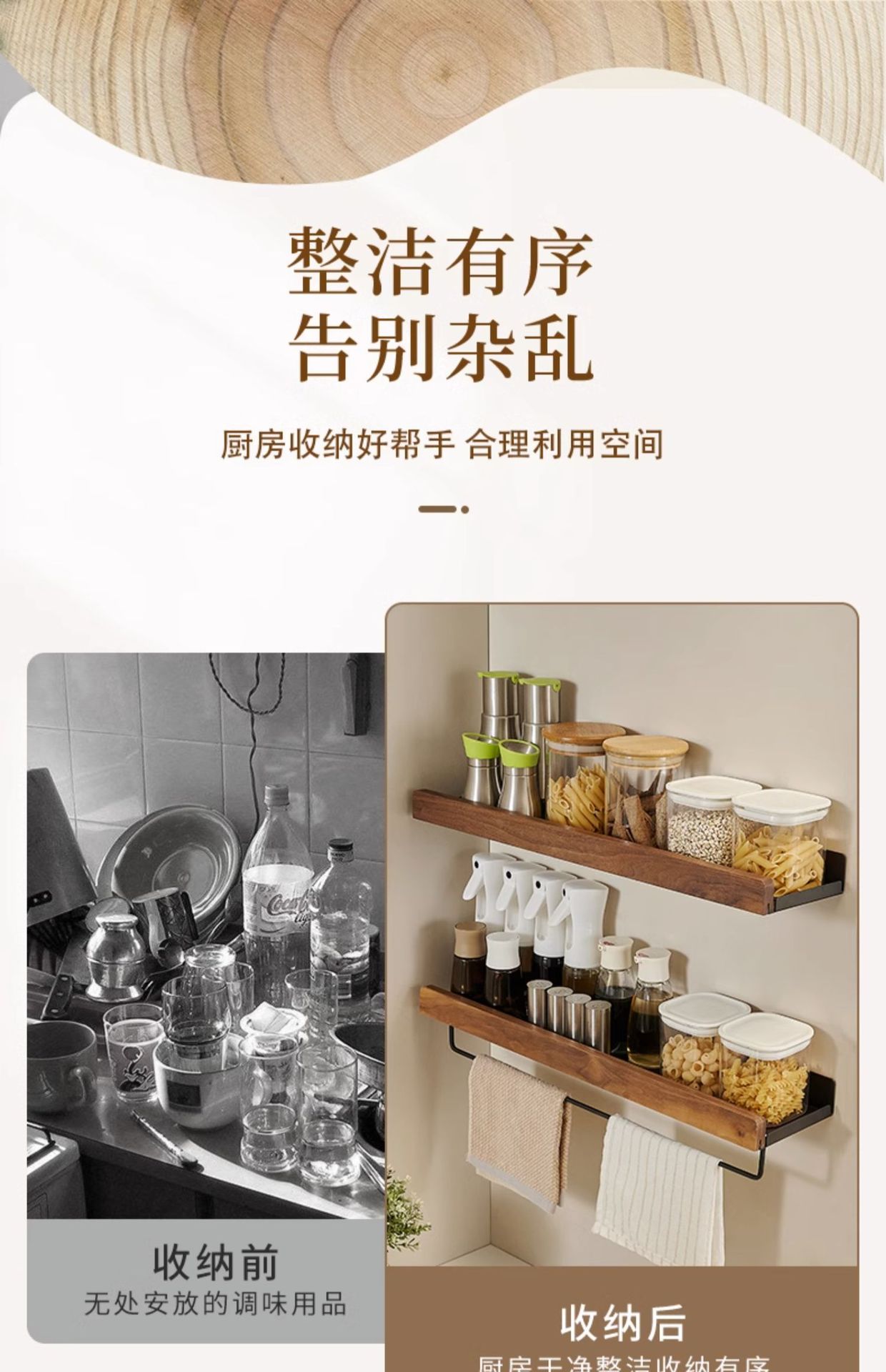 단단한 나무 주방 양념 저장 랙 다기능 호두 욕실 벽 욕실 보관 수건 선반