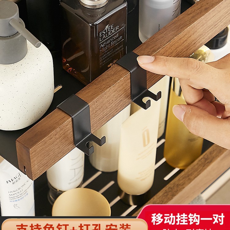 단단한 나무 주방 양념 저장 랙 다기능 호두 욕실 벽 욕실 보관 수건 선반스토어 가기