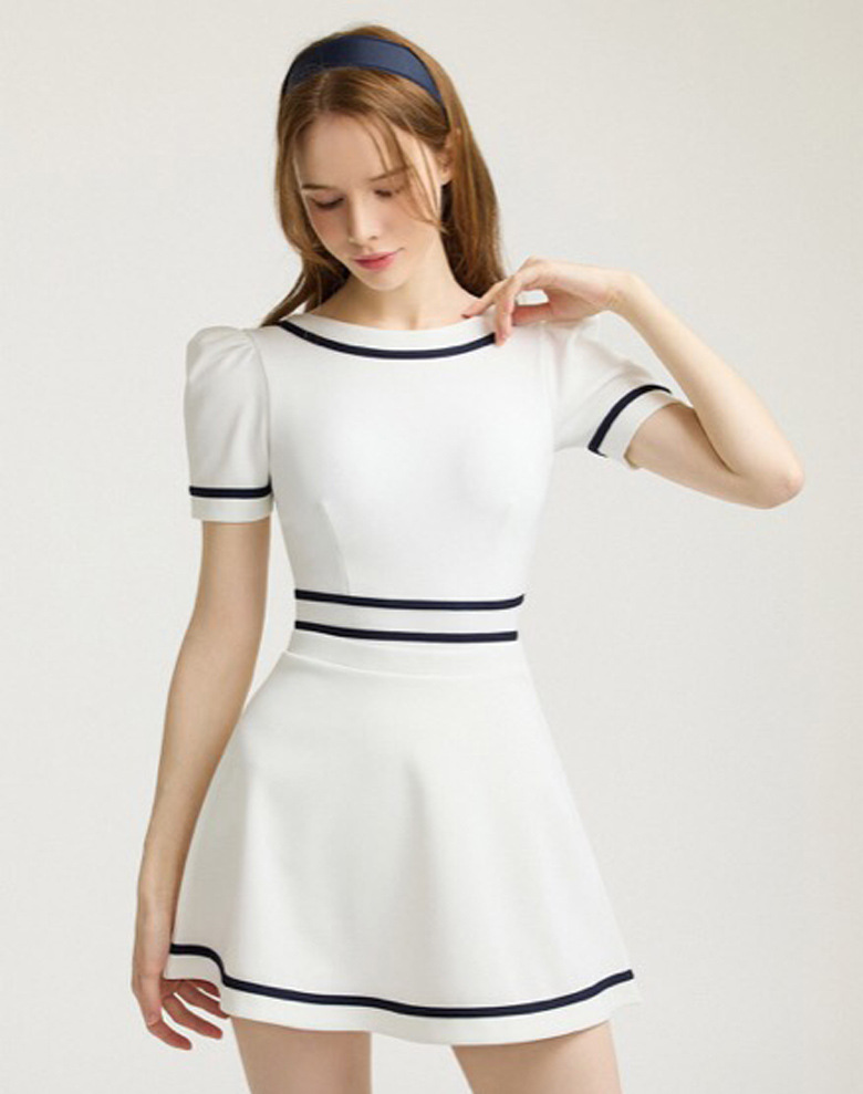 반팔 수영복 여성의 2024 새로운 원피스 스커트 벨리 커버 슬리밍 섹시한 온천 수영복 비키니 도매