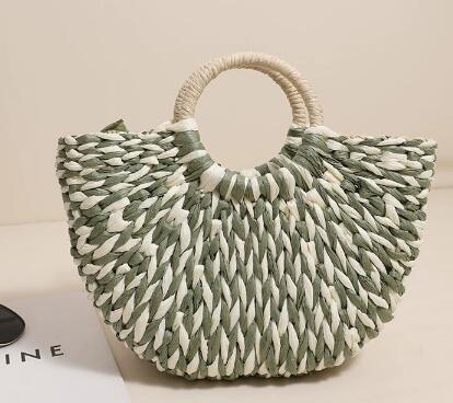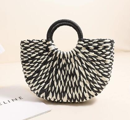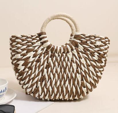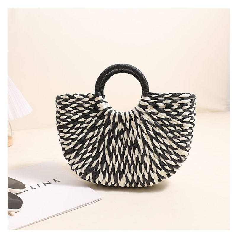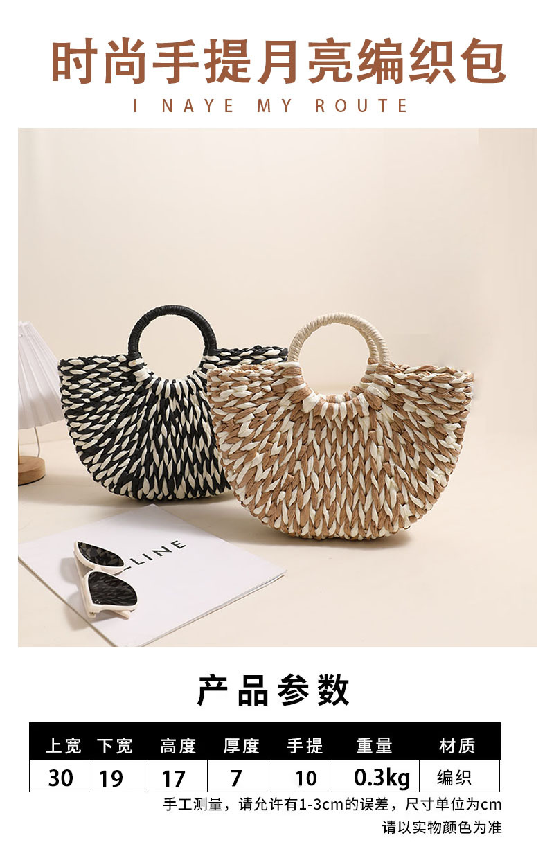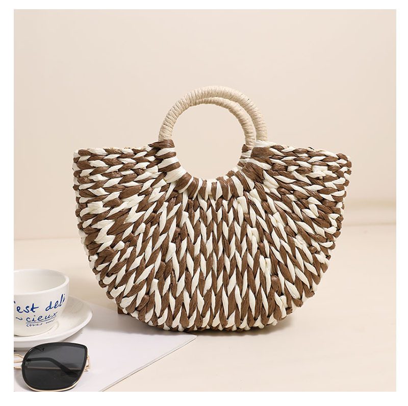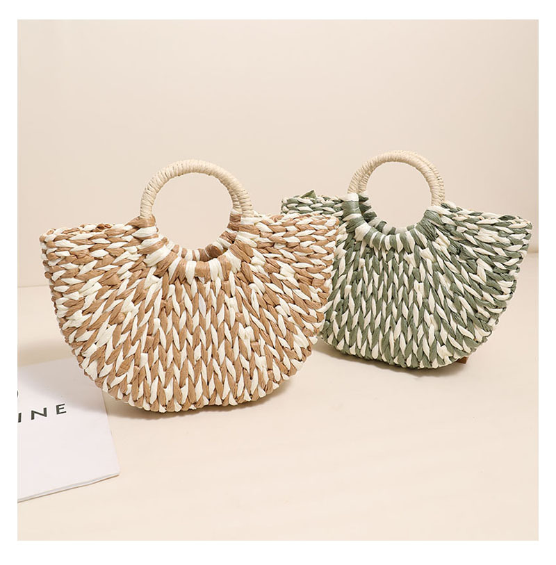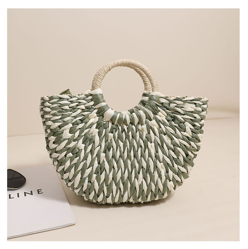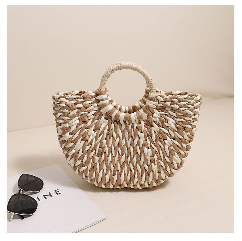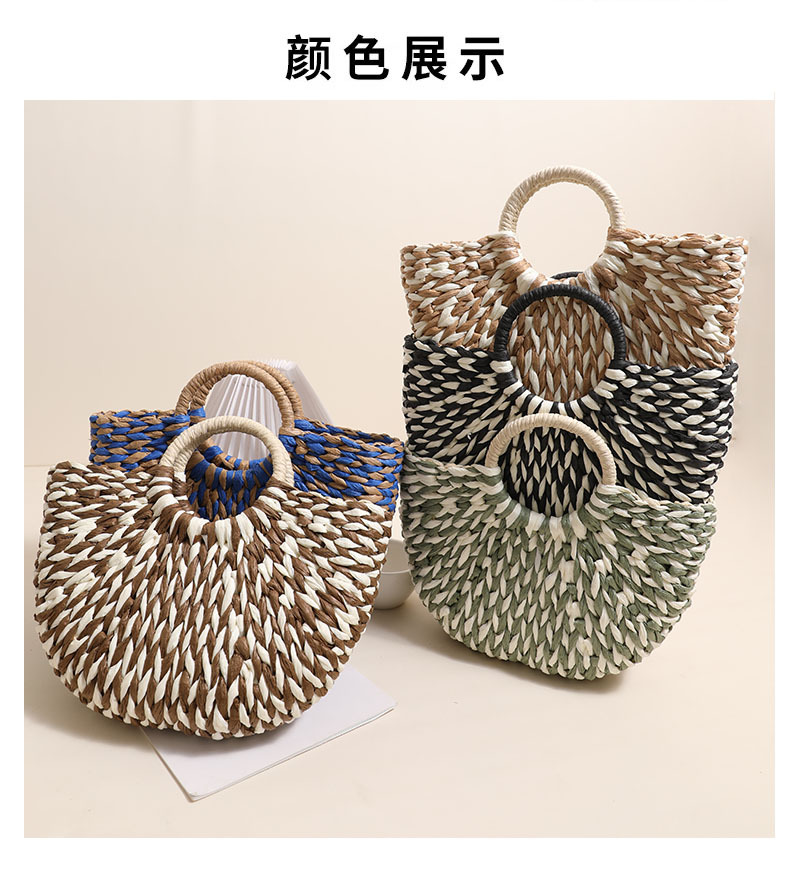 컬러 반라운드 핸드 헬드 밀짚 짠 가방 새로운 스타일 핸드 헬드 컬러 매칭 밀짚 가방 짠 가방 홀리데이 스타일 비치 백 올 매치 여성용 가방