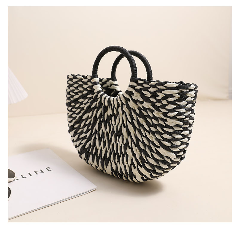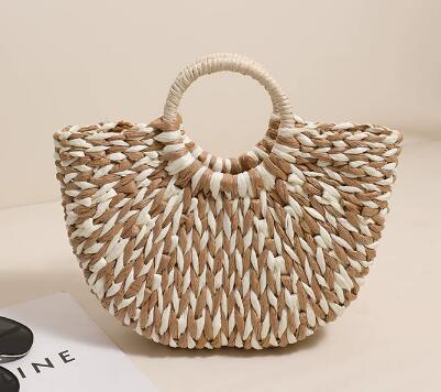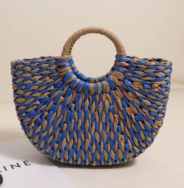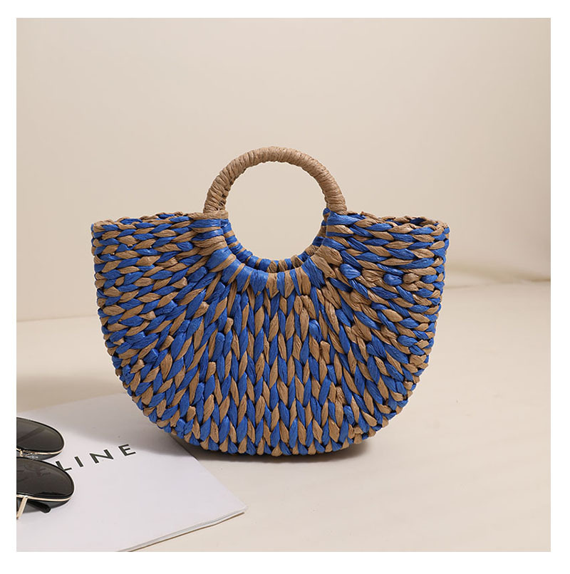 컬러 반라운드 핸드 헬드 밀짚 짠 가방 새로운 스타일 핸드 헬드 컬러 매칭 밀짚 가방 짠 가방 홀리데이 스타일 비치 백 올 매치 여성용 가방스토어 가기