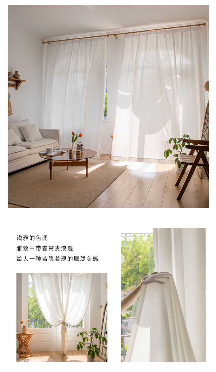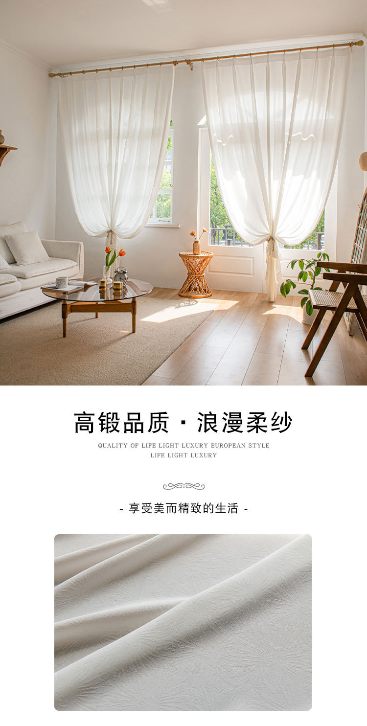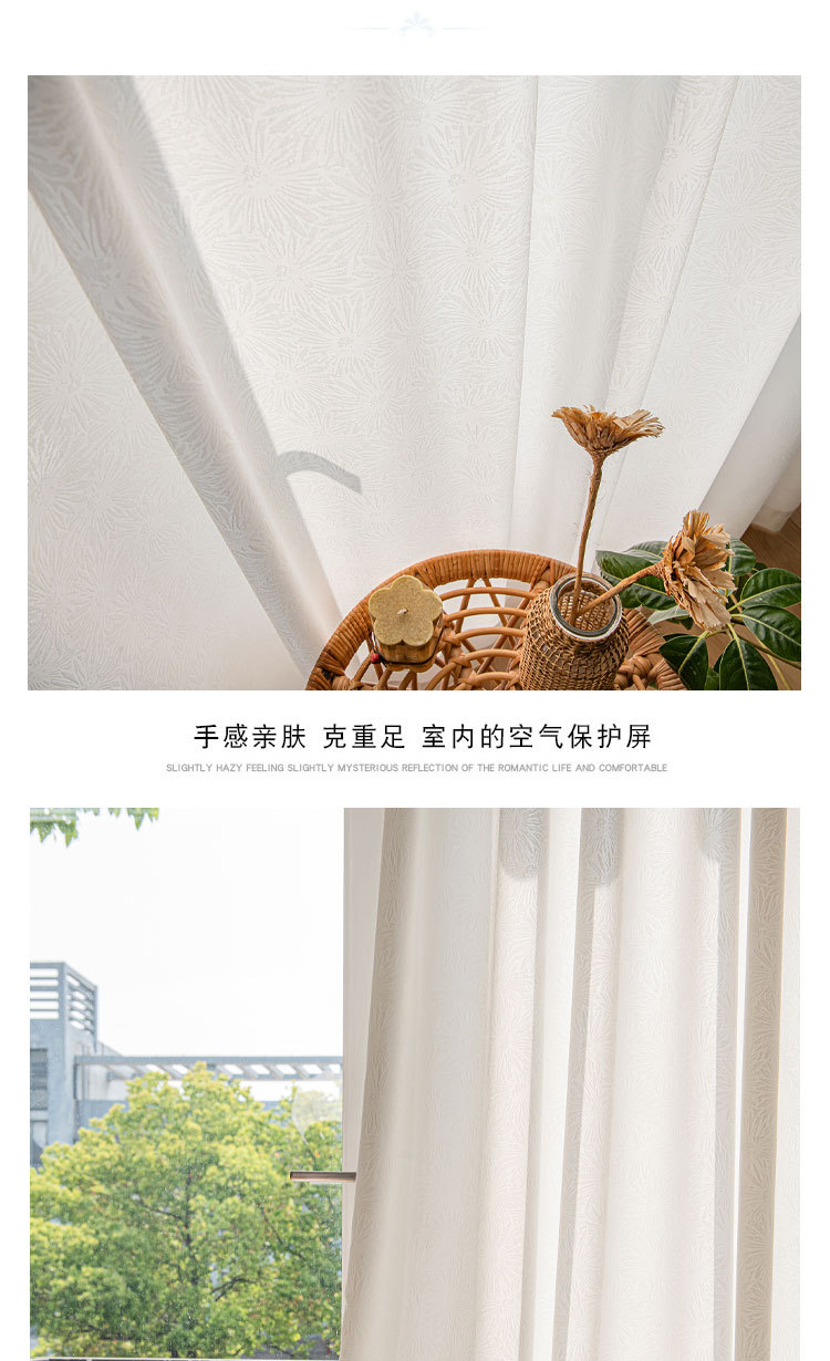 현대적인 간단한 자카드 해바라기 창 스크린, 빛과 불투명, 발코니 침실 베드 창, 흰색 창 스크린 커튼 완제품