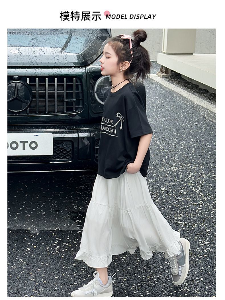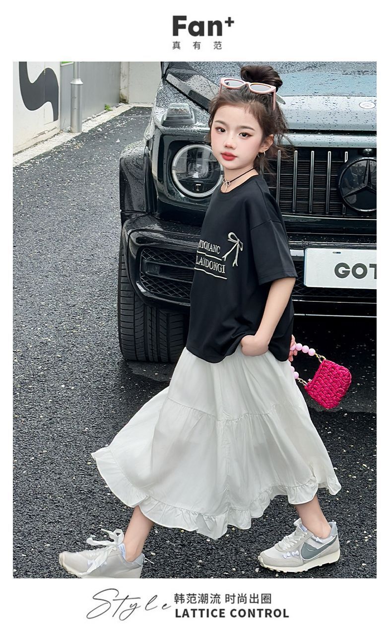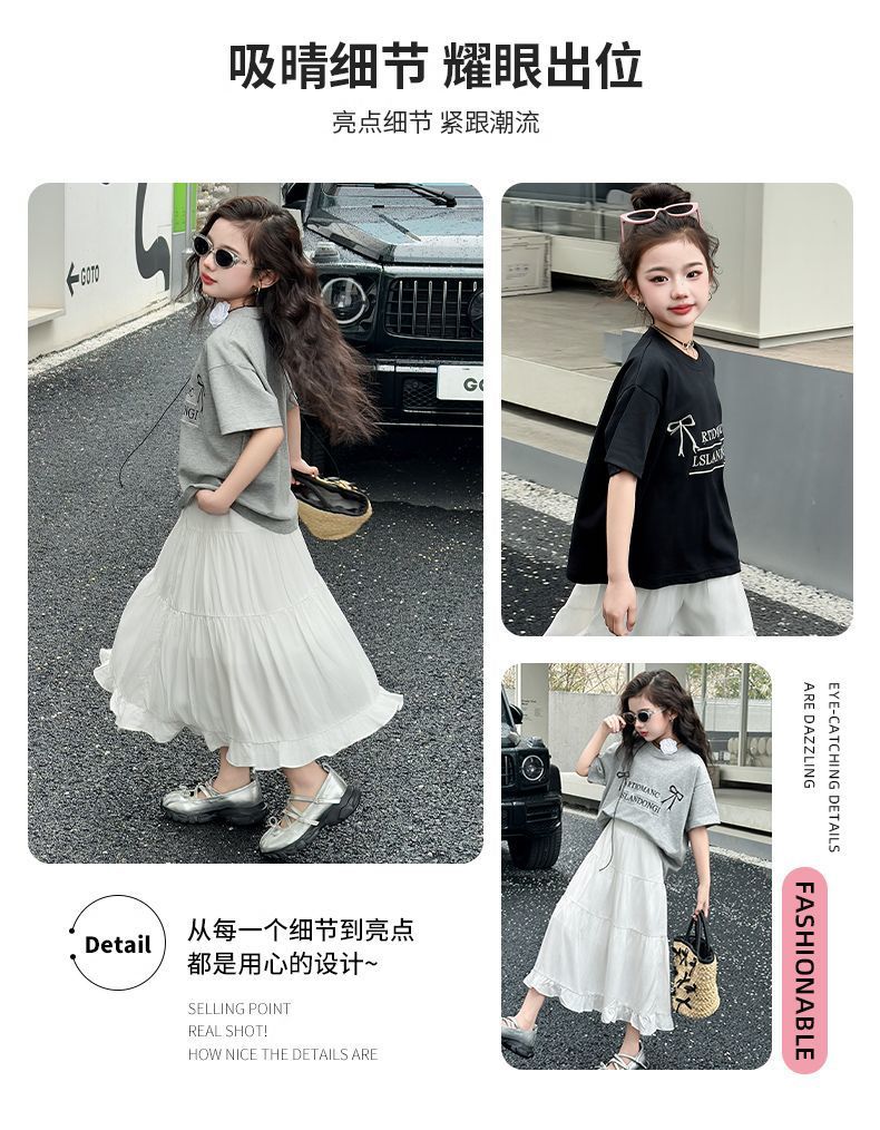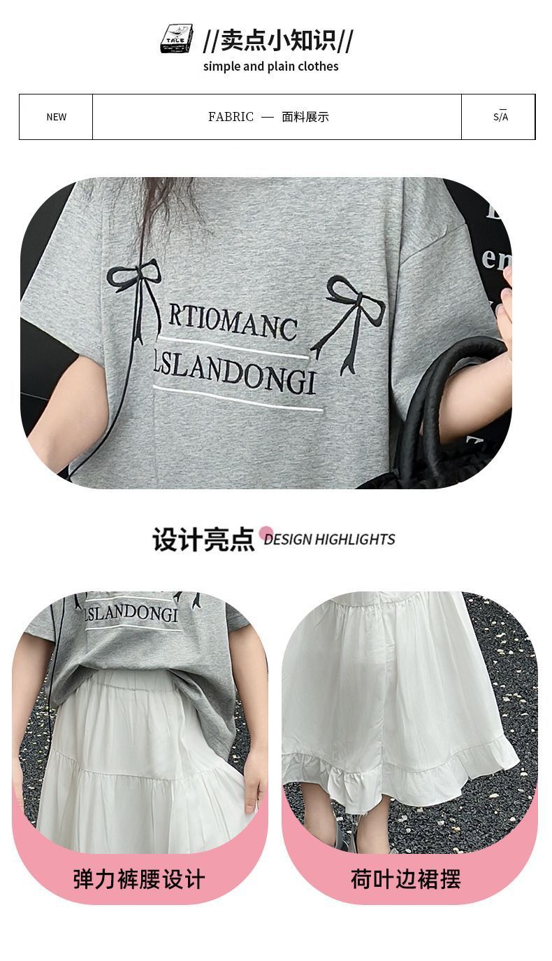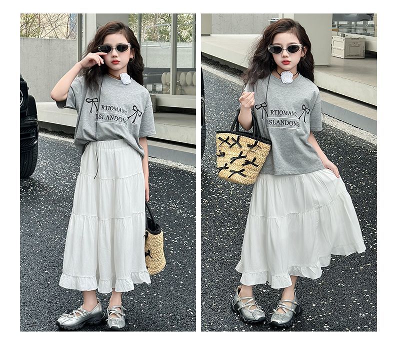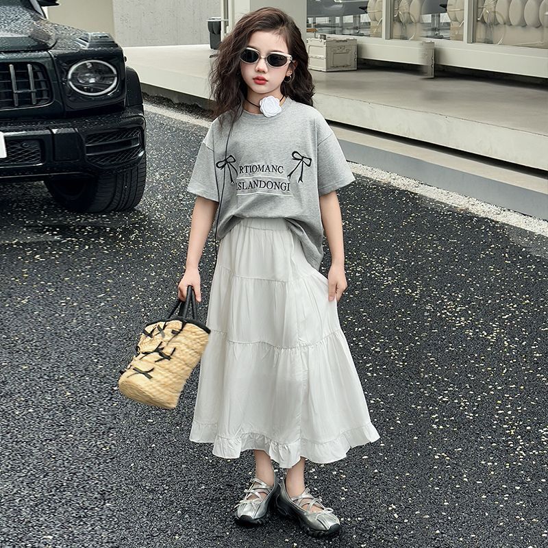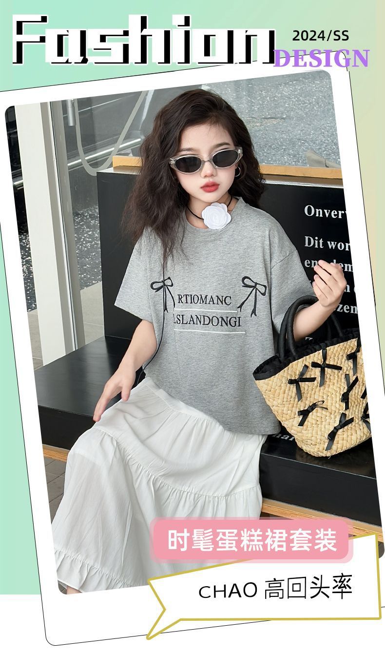 소녀 여름 원피스 세트 2024 새로운 어린이 반팔 케이크 스커트 투피스 소녀의 옷 세련된스토어 가기