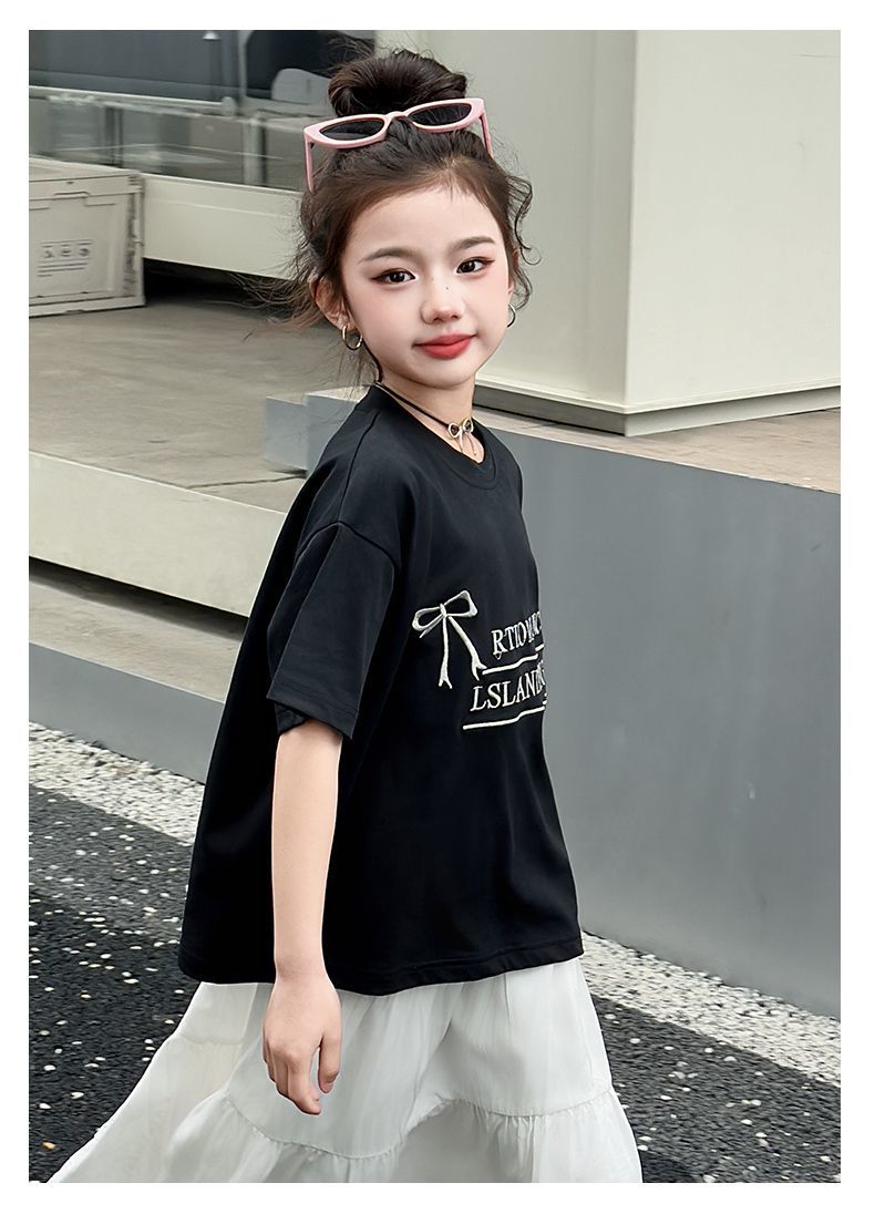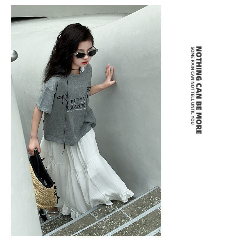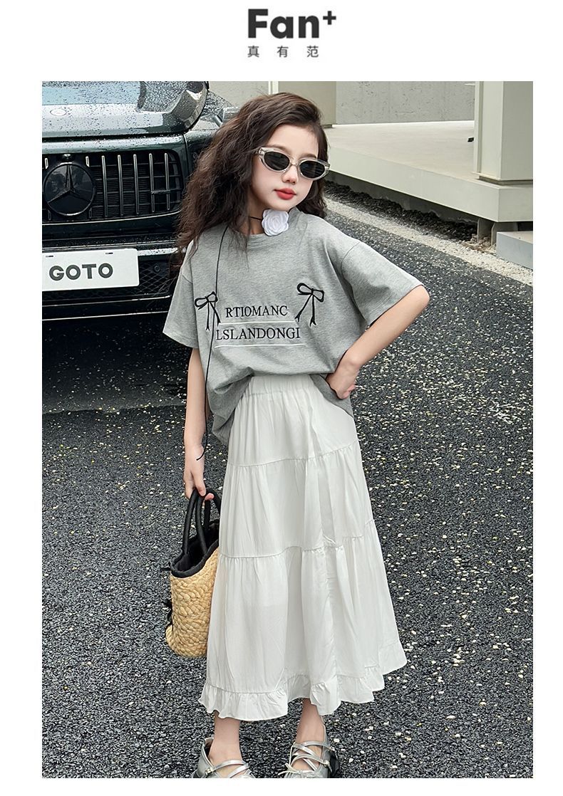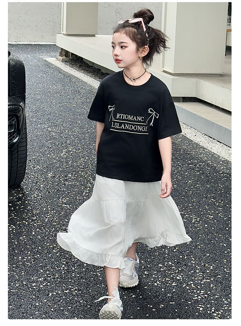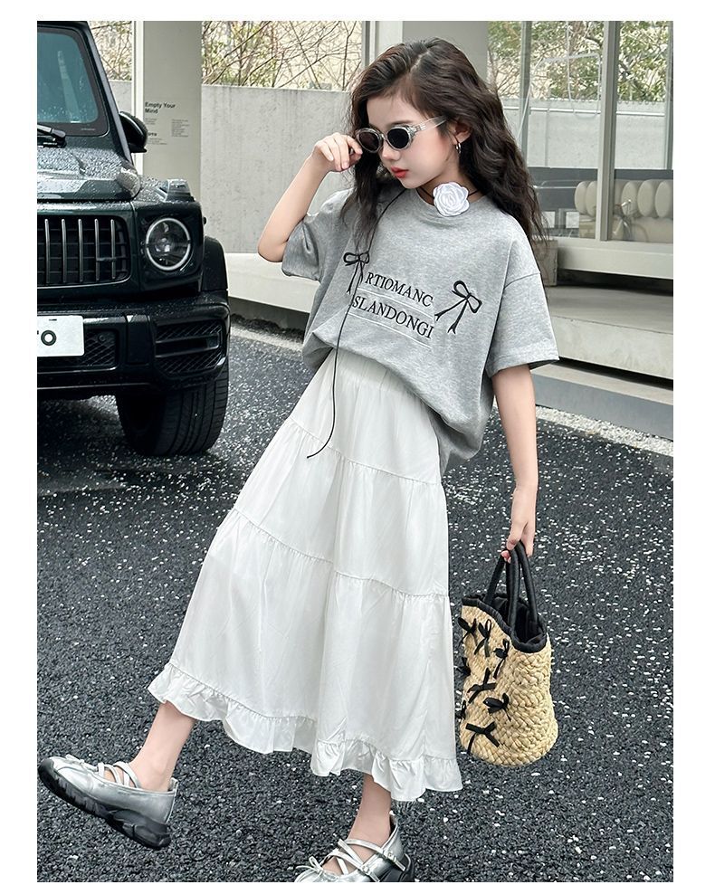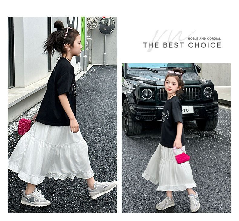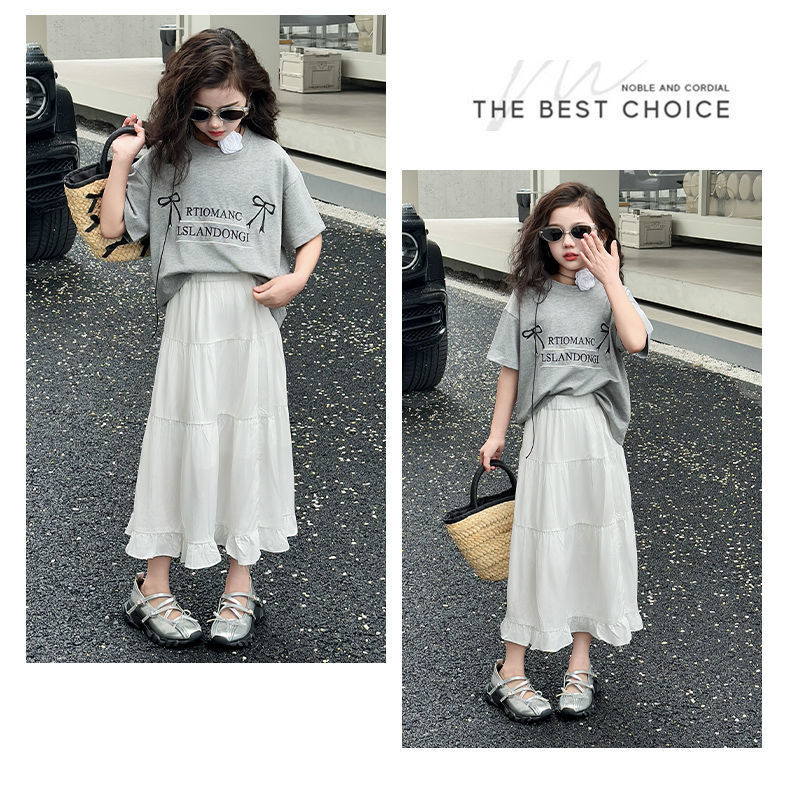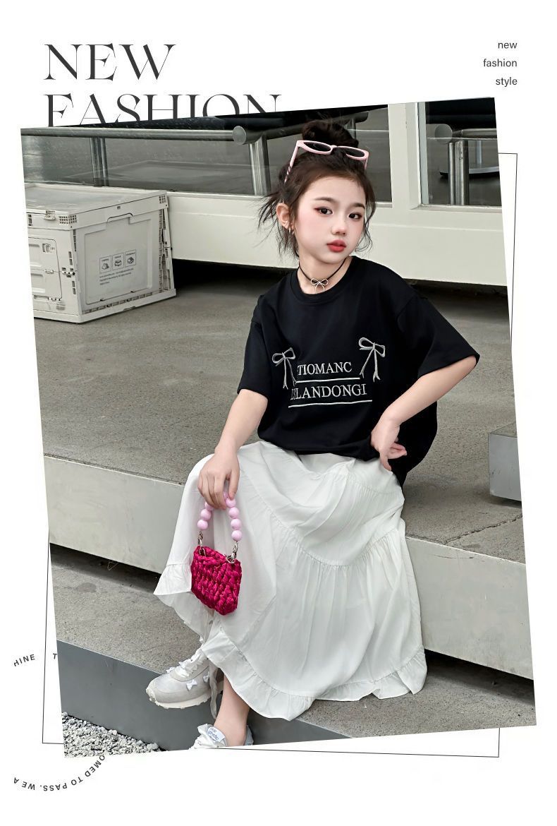 소녀 여름 원피스 세트 2024 새로운 어린이 반팔 케이크 스커트 투피스 소녀의 옷 세련된스토어 가기