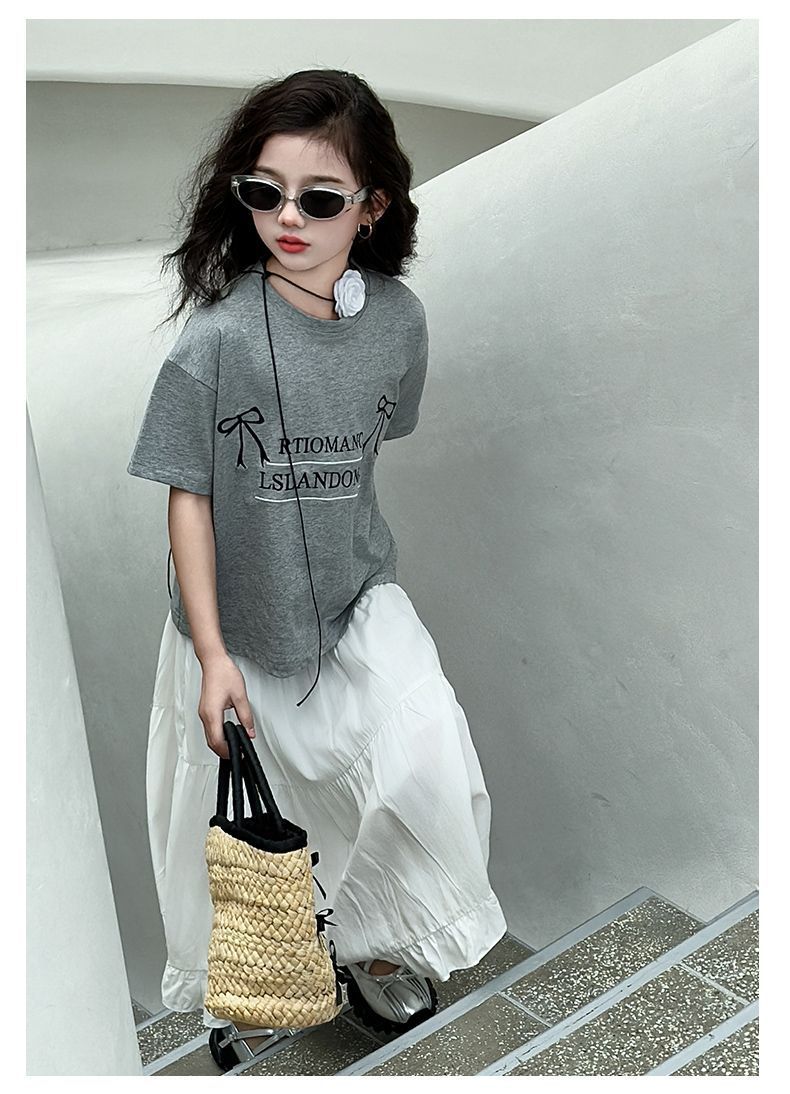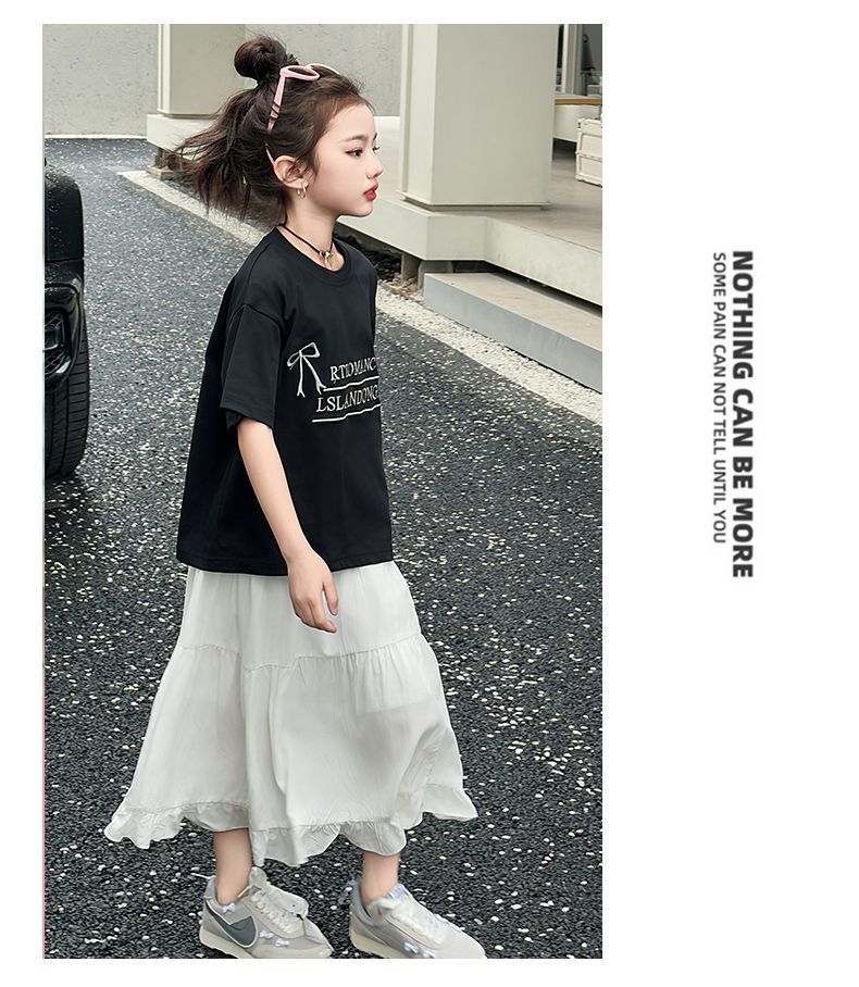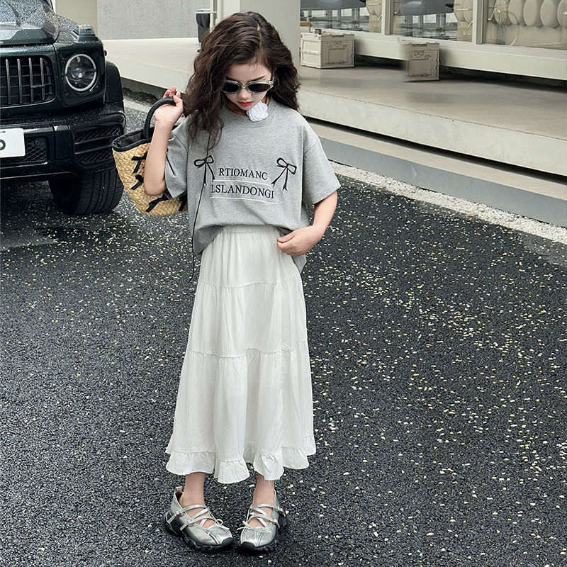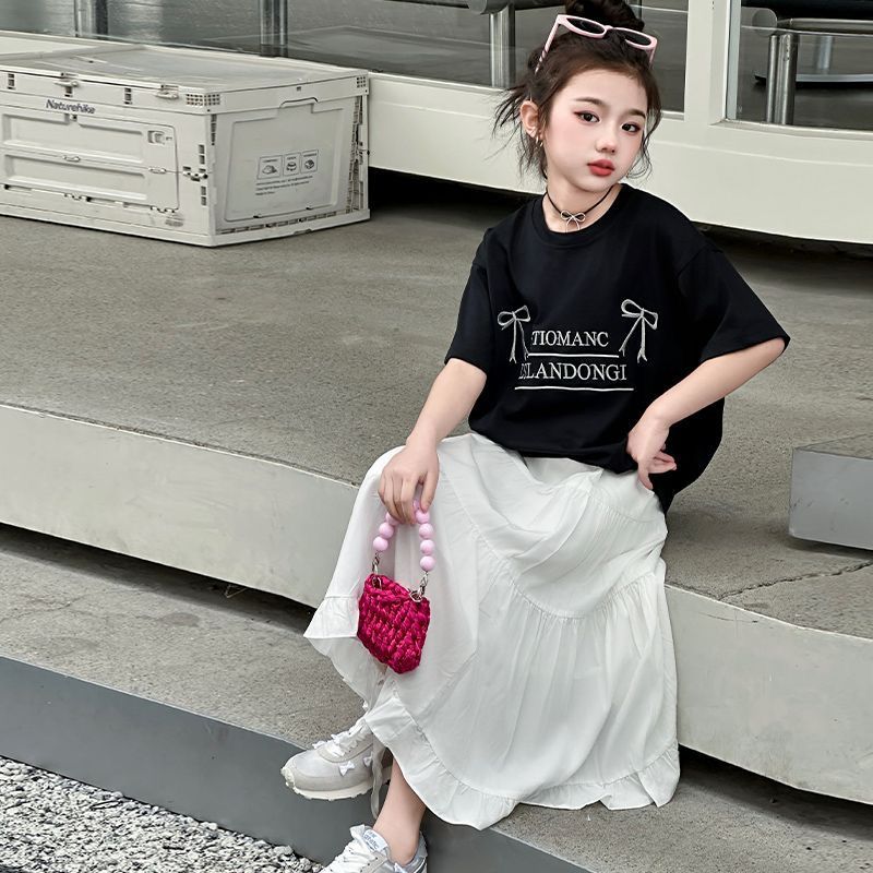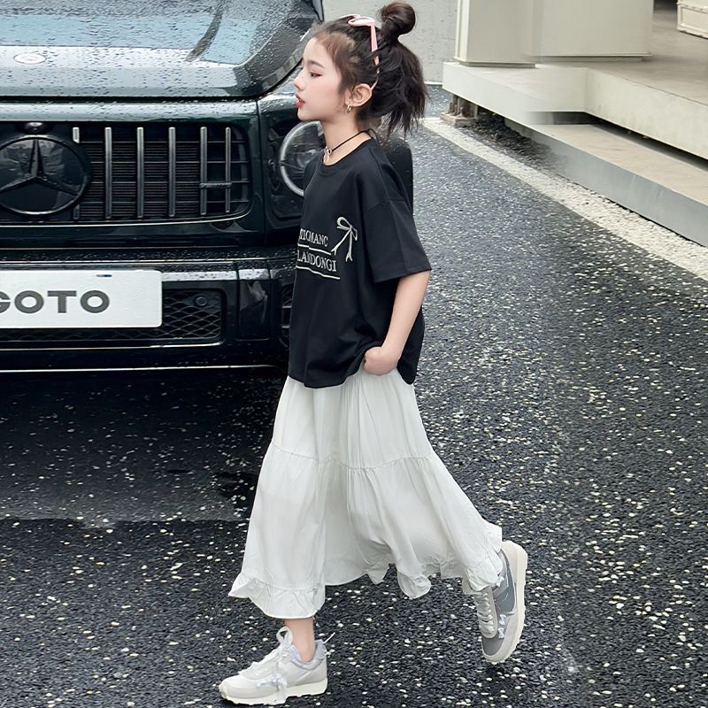 소녀 여름 원피스 세트 2024 새로운 어린이 반팔 케이크 스커트 투피스 소녀의 옷 세련된