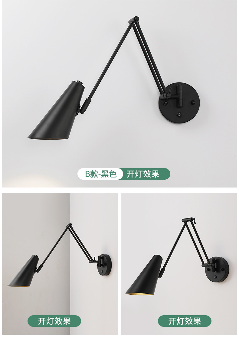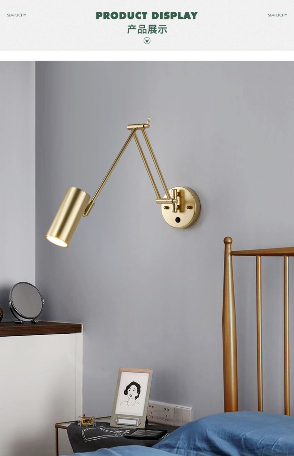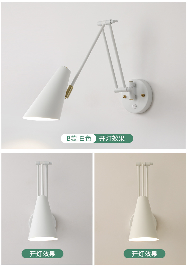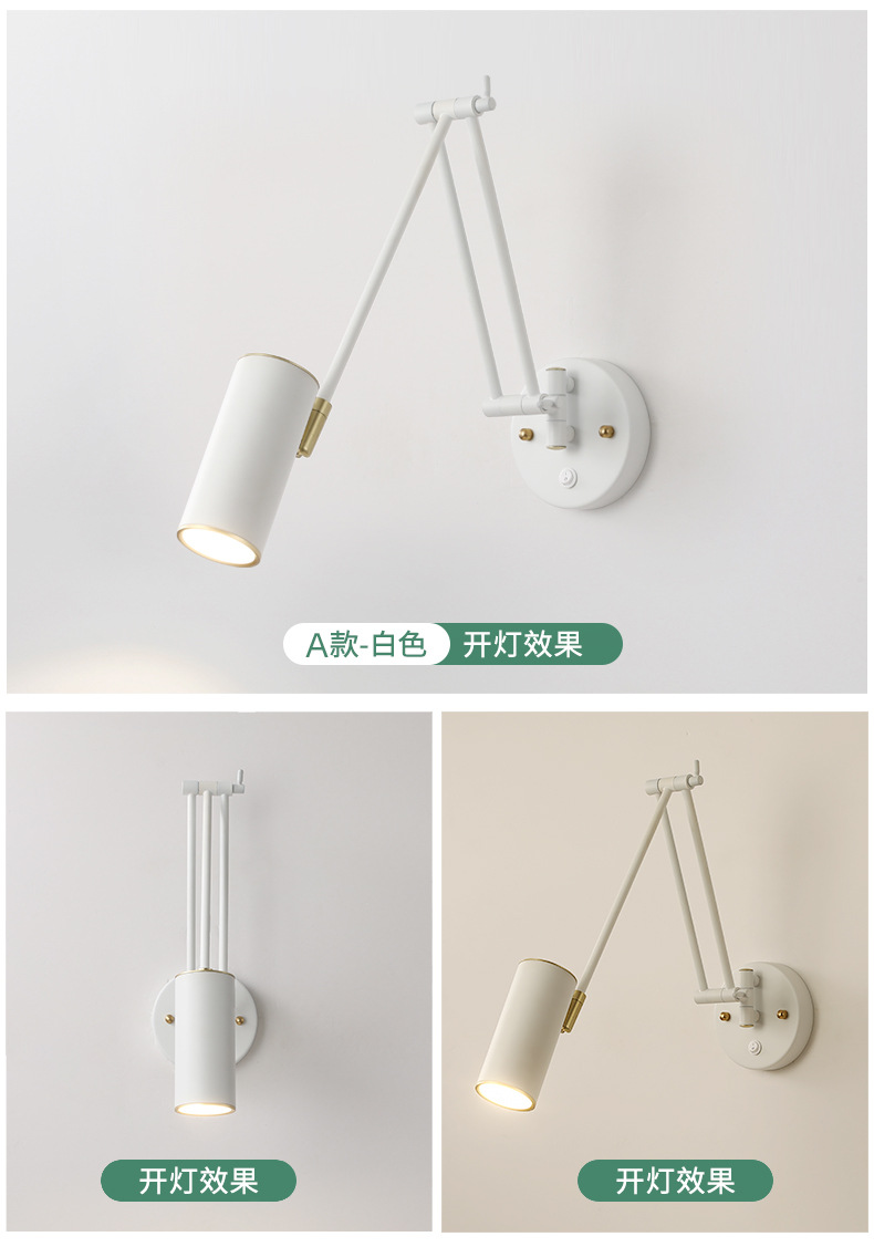 벽 램프 침실 옆 독서 눈 보호 연구 스위치 로타리 망원경 접히는 긴 로커 램프를 가진 북유럽 사이버 축하스토어 가기