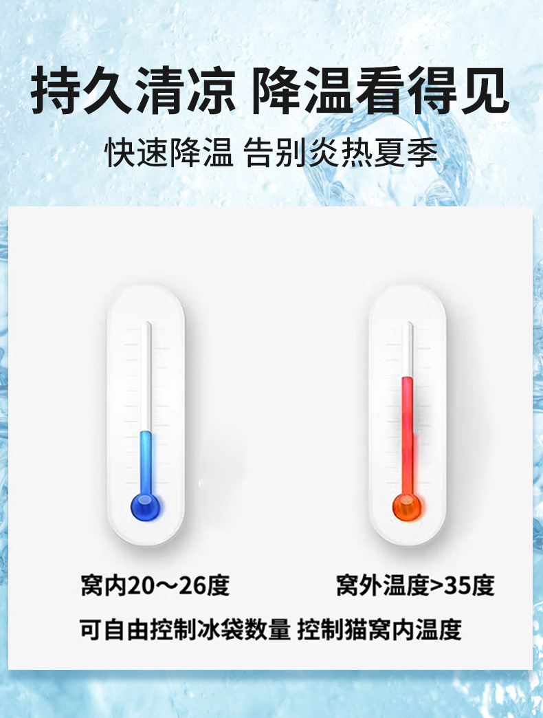 2.赠送6-8个自吸水冰袋,温度可控制,自由调节可维持6-8小时全身降温