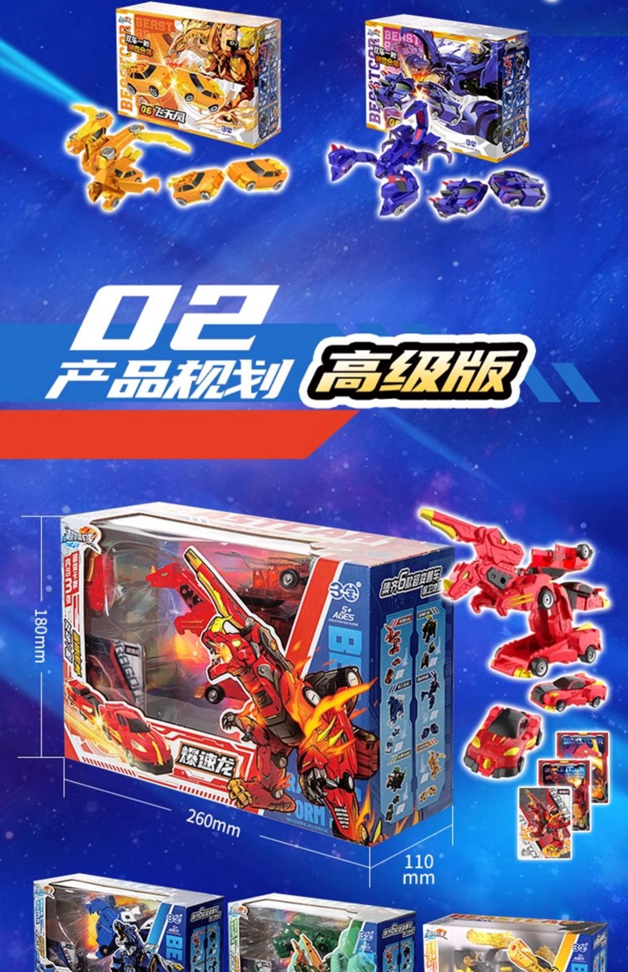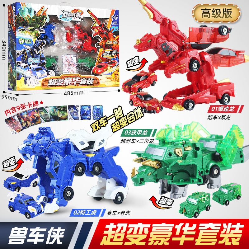산바오 슈퍼 가변 야수 자동차 남자 폭발 속도 드래곤 자동차 충돌 피트 변형 공룡 로봇 소년 킹 콩 장난감