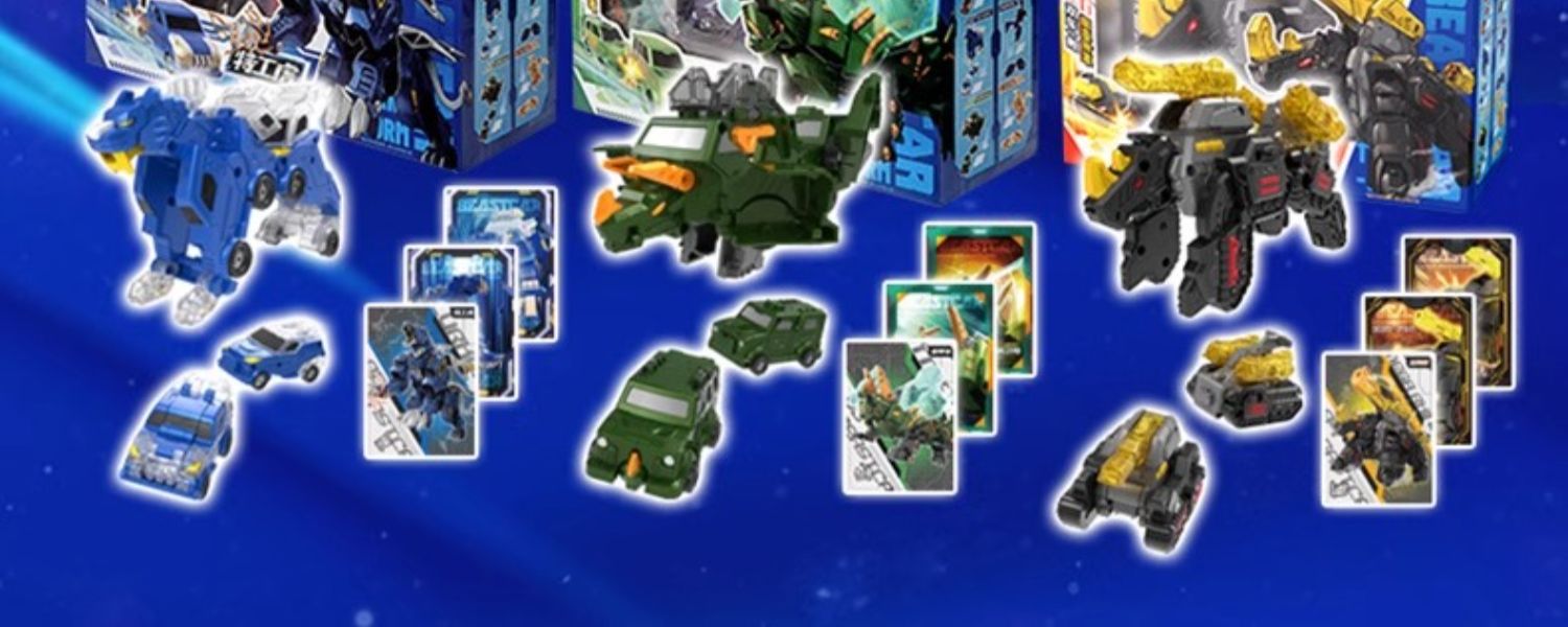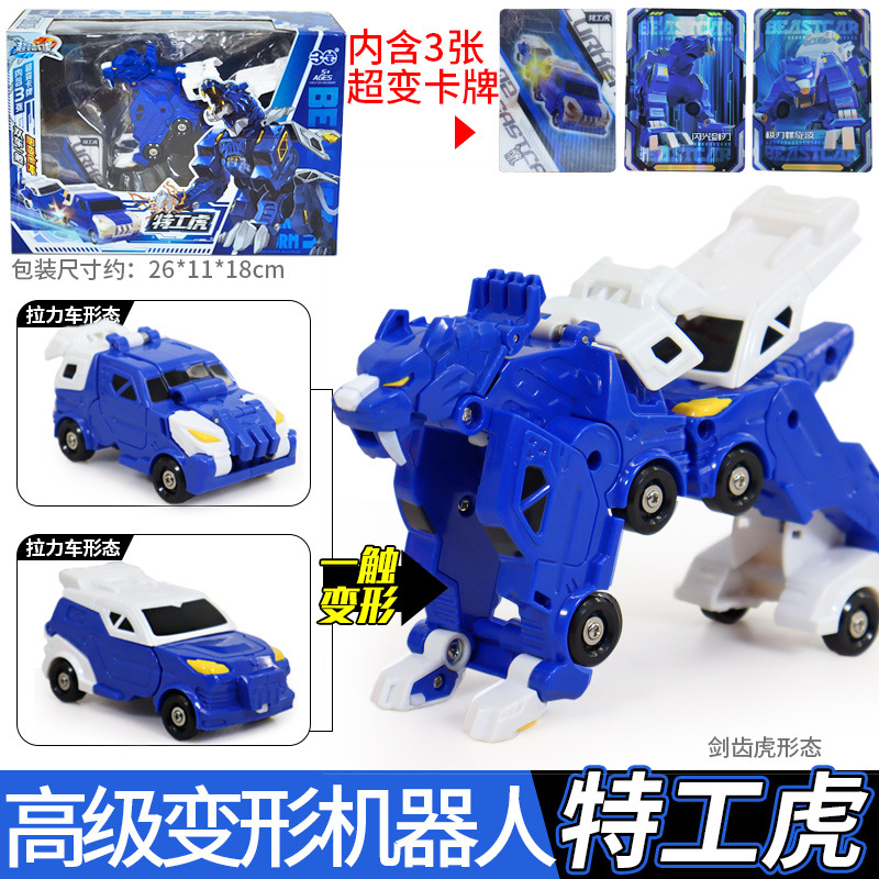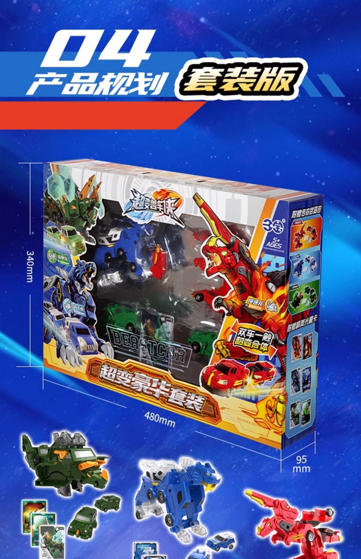 산바오 슈퍼 가변 야수 자동차 남자 폭발 속도 드래곤 자동차 충돌 피트 변형 공룡 로봇 소년 킹 콩 장난감스토어 가기