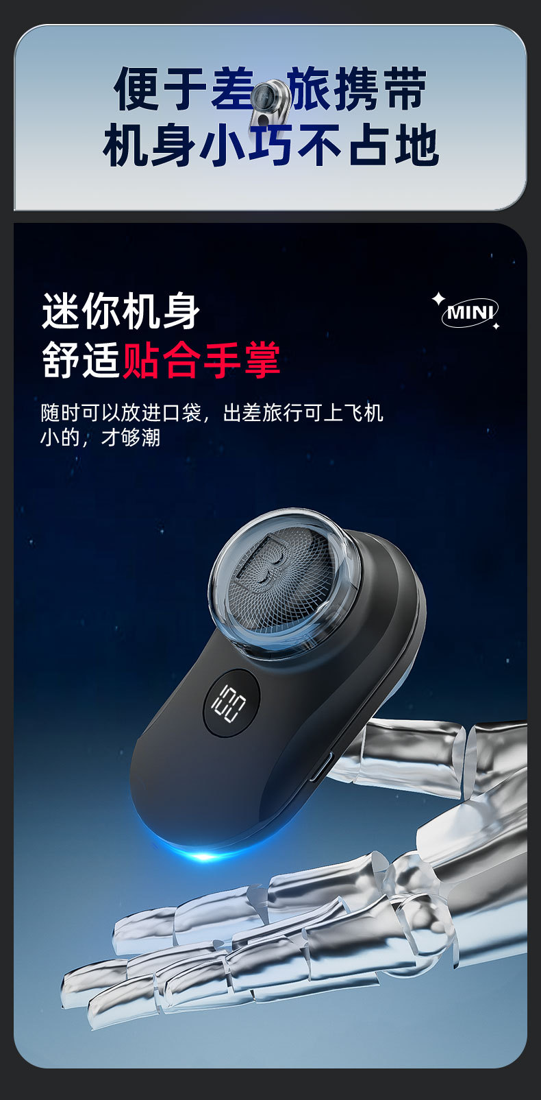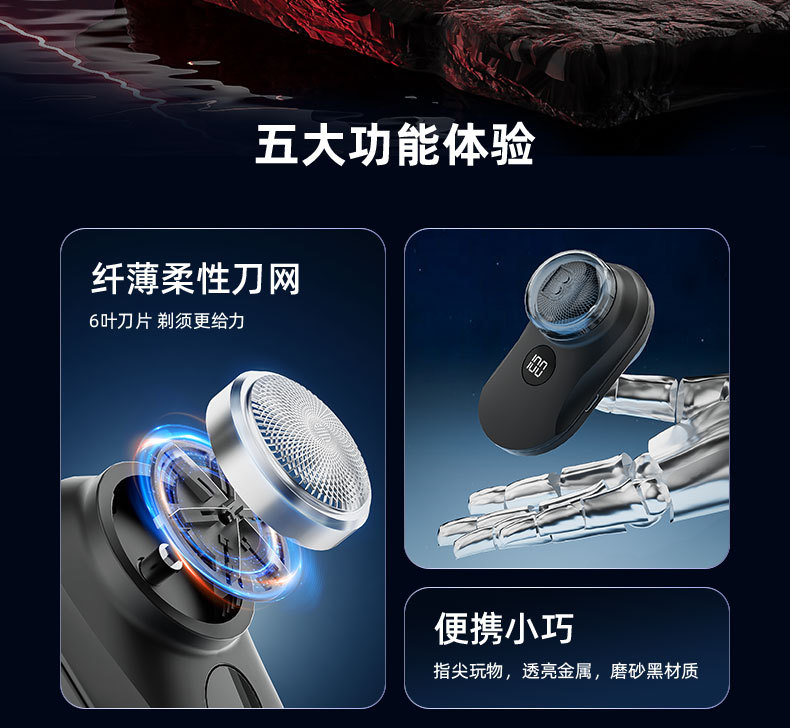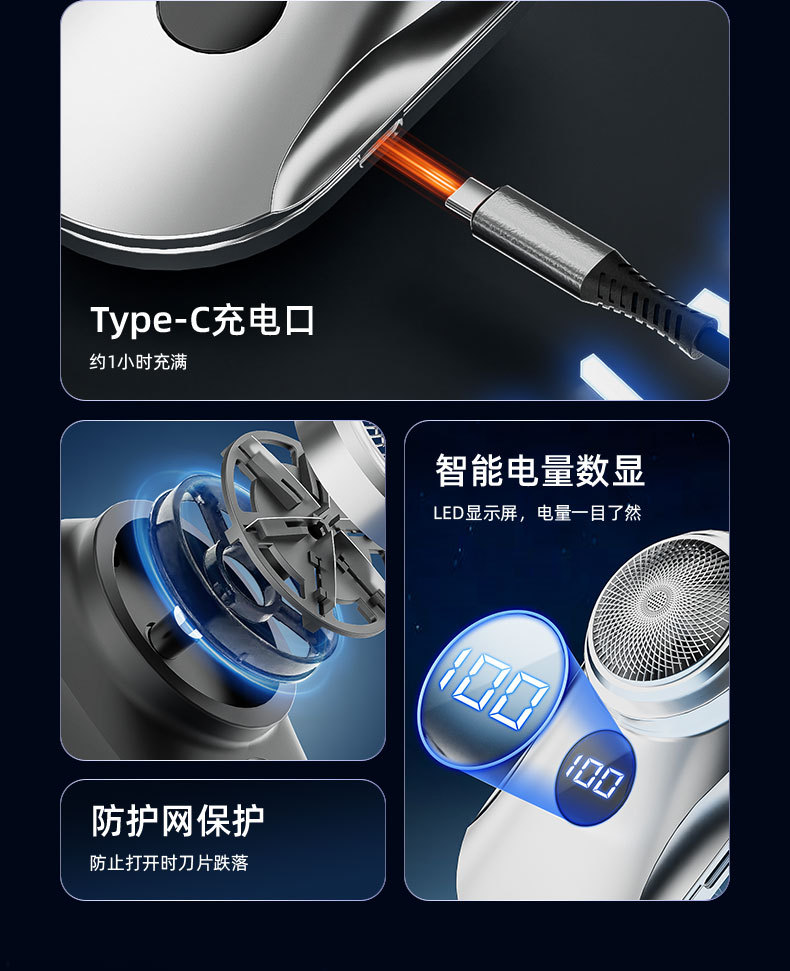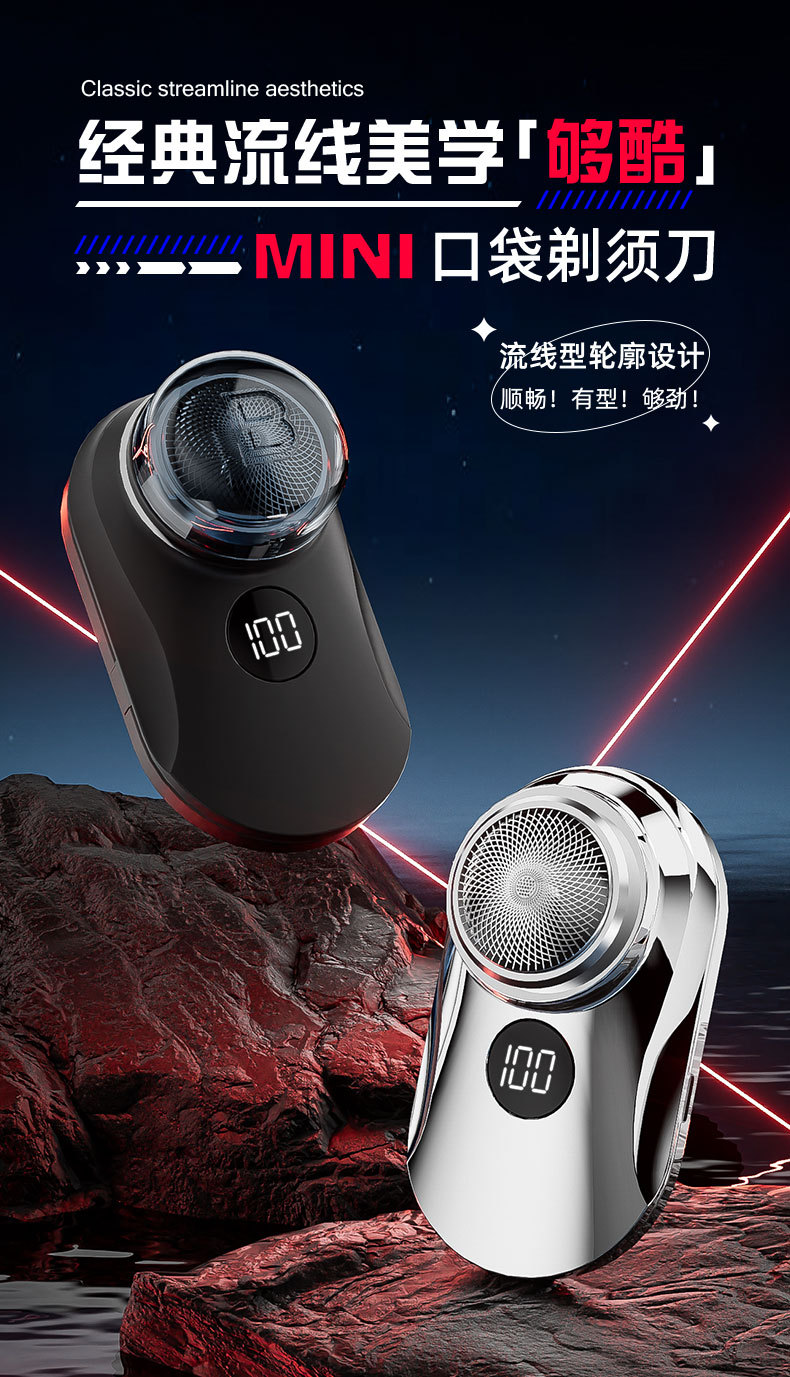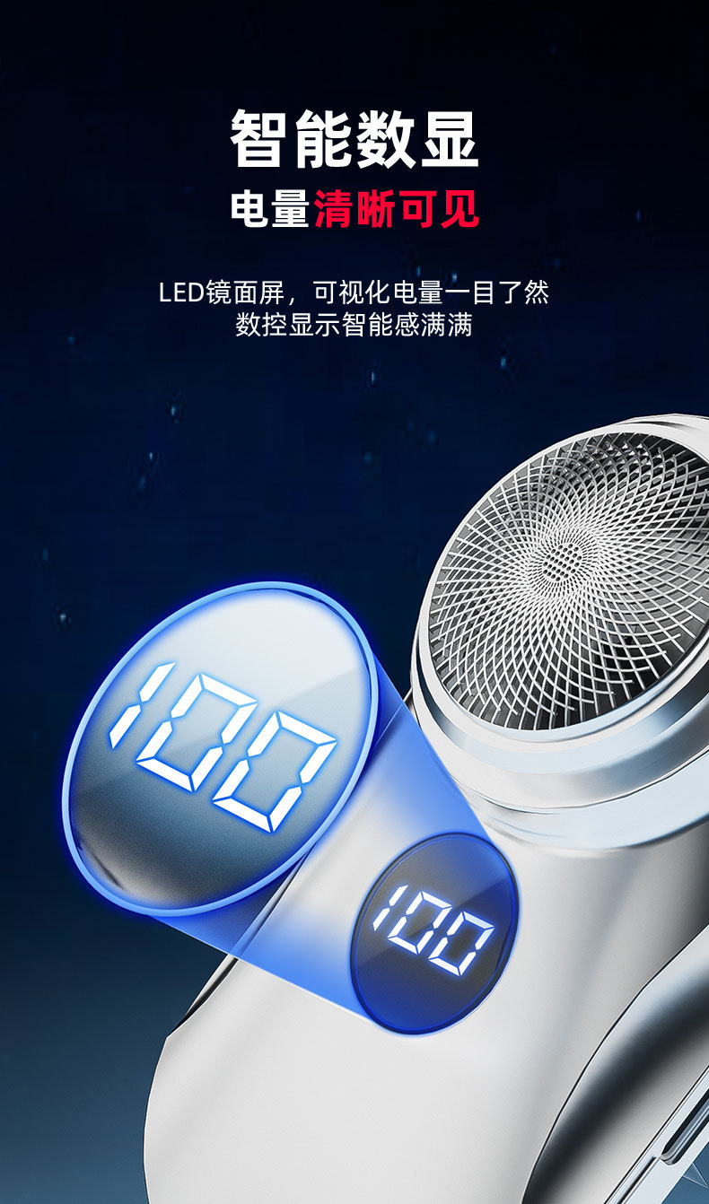 跨境电动剃须刀数显可水洗居家差旅电动刮胡刀USB充长续航剃须刀