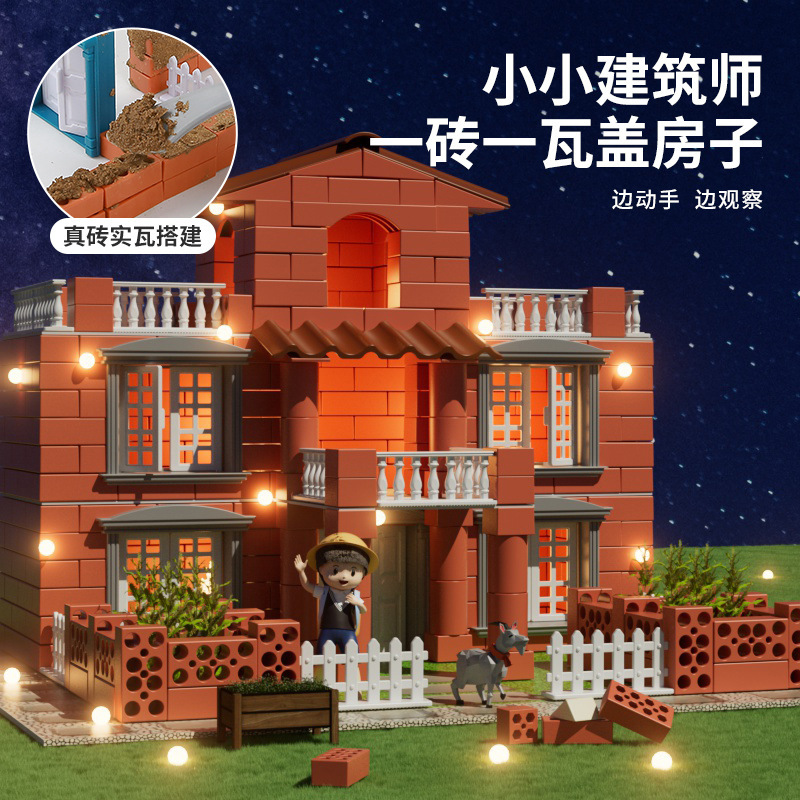 메이슨 건물 집 벽 건물 장난감 선물 어린이 건축가 수제 DIY 벽돌 헛 미니 시멘트