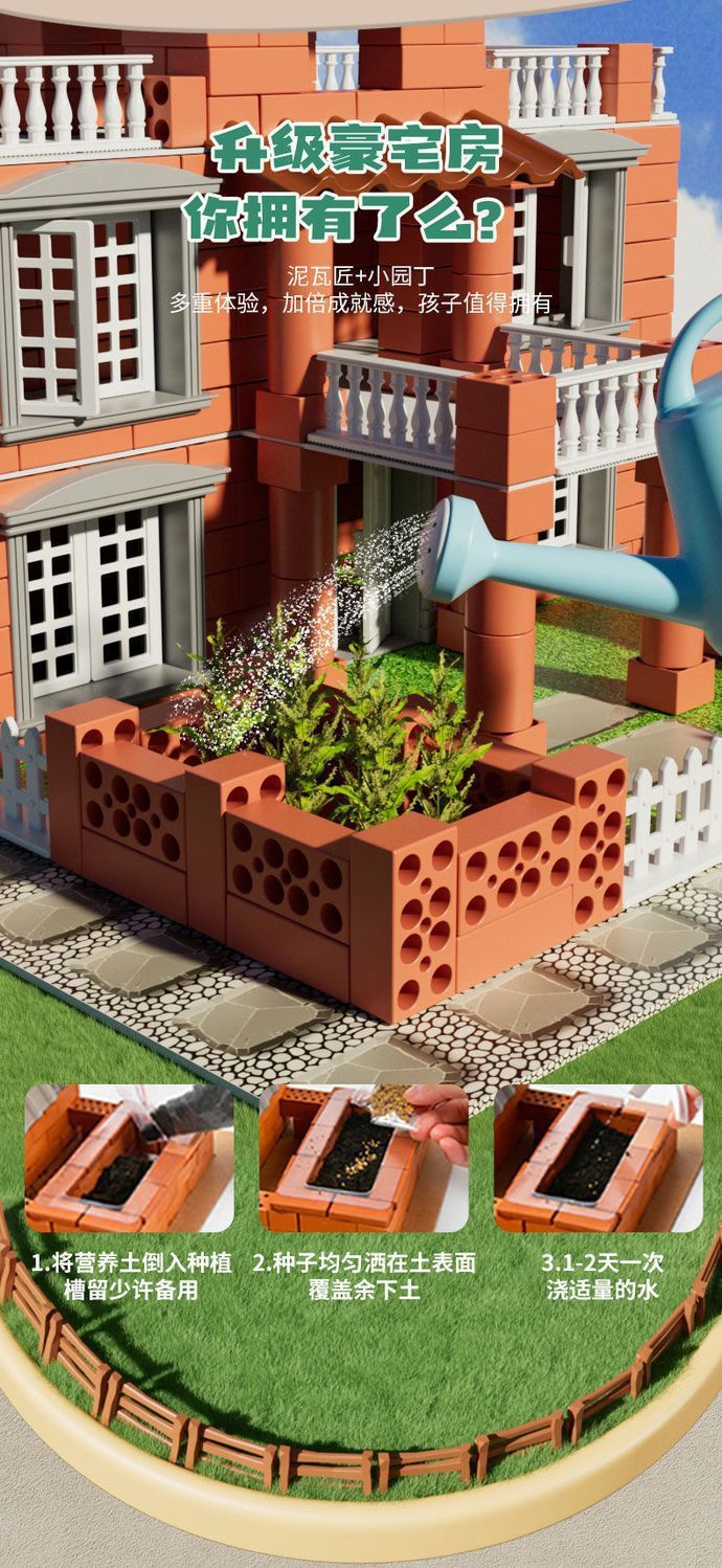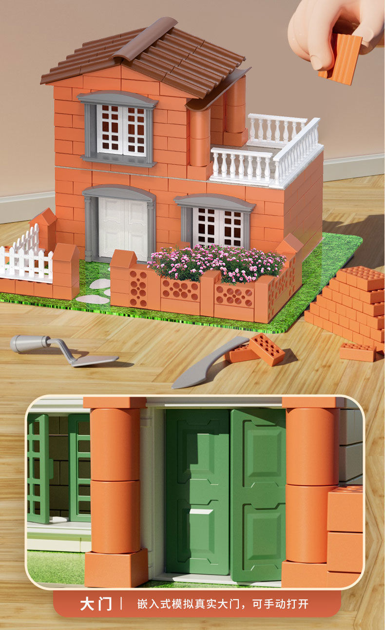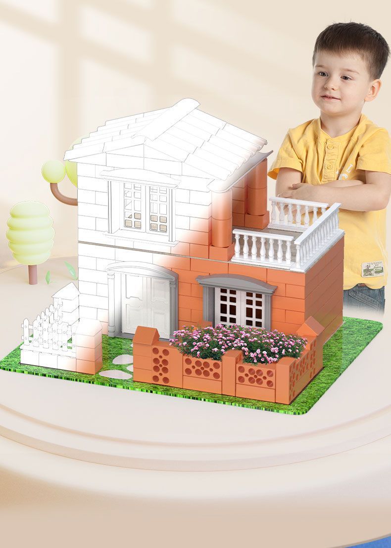 메이슨 건물 집 벽 건물 장난감 선물 어린이 건축가 수제 DIY 벽돌 헛 미니 시멘트스토어 가기