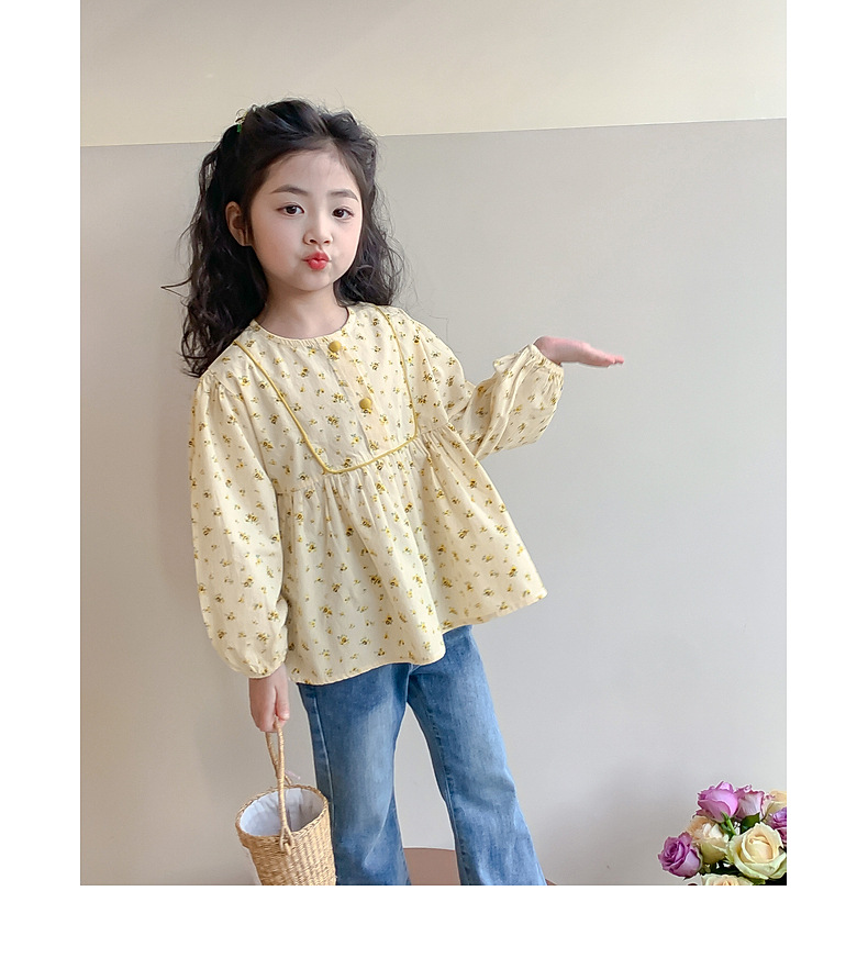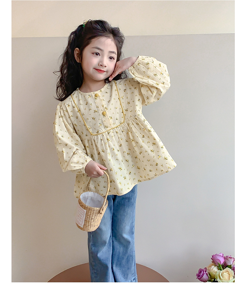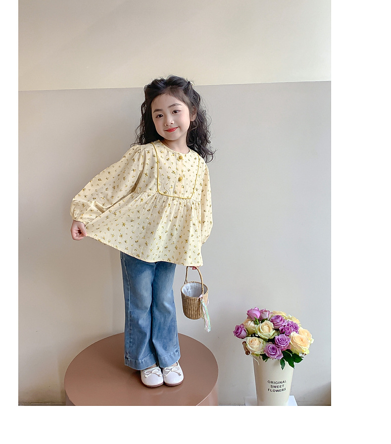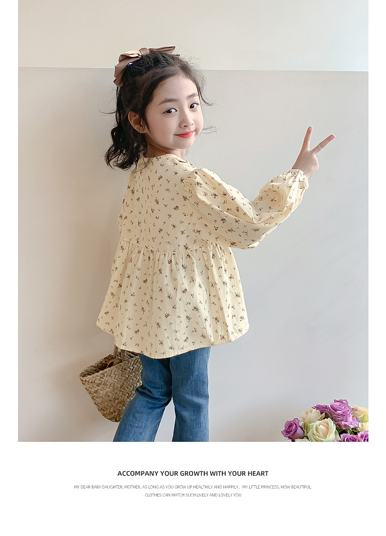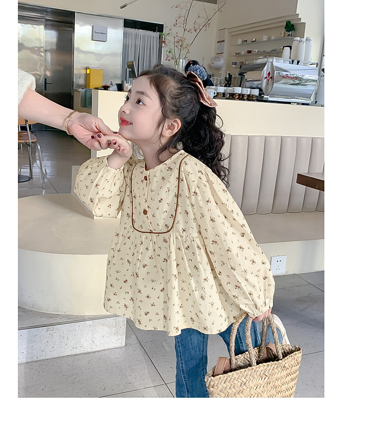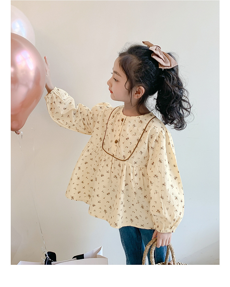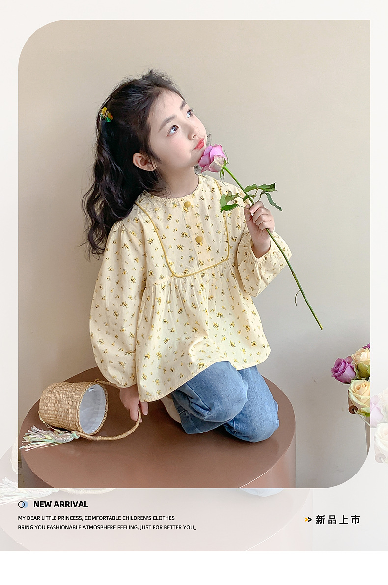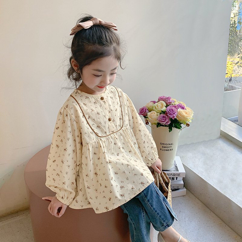 여자 셔츠 유행 여자 꽃 무늬 긴팔 셔츠 봄, 가을 2025 새로운 가을 아동 의류 아동상의 가을 의류스토어 가기