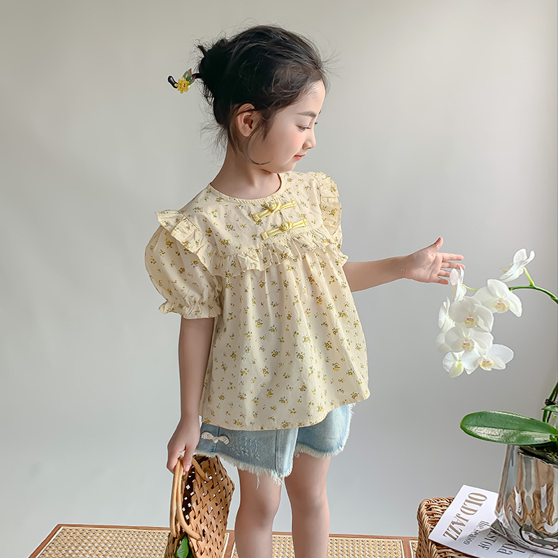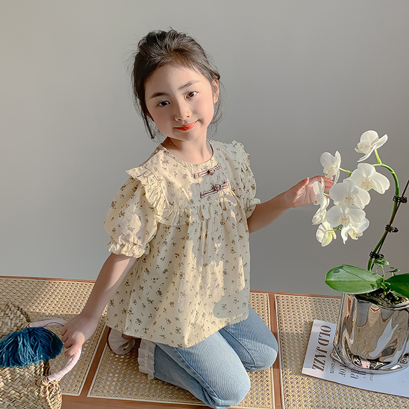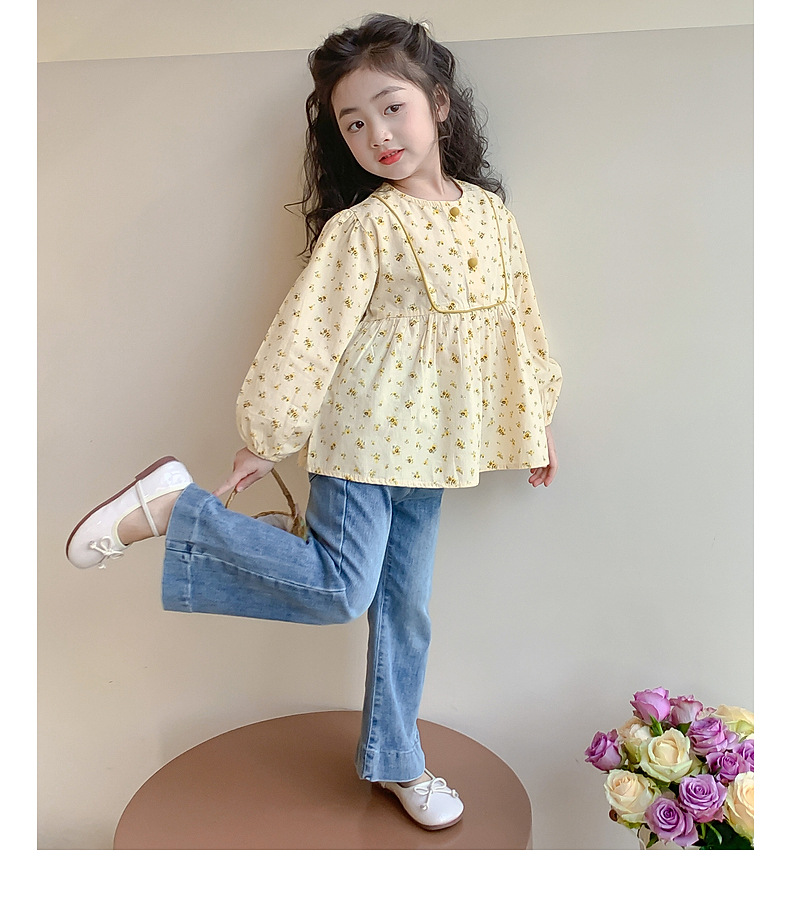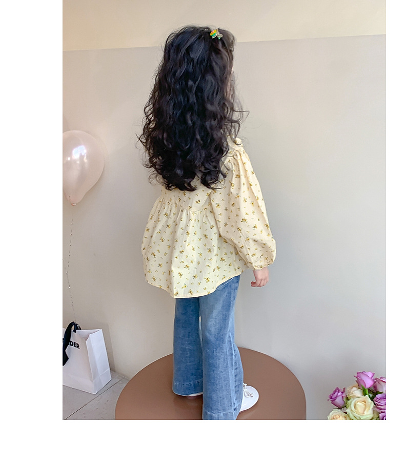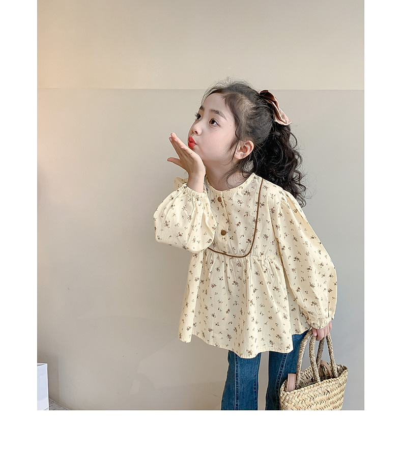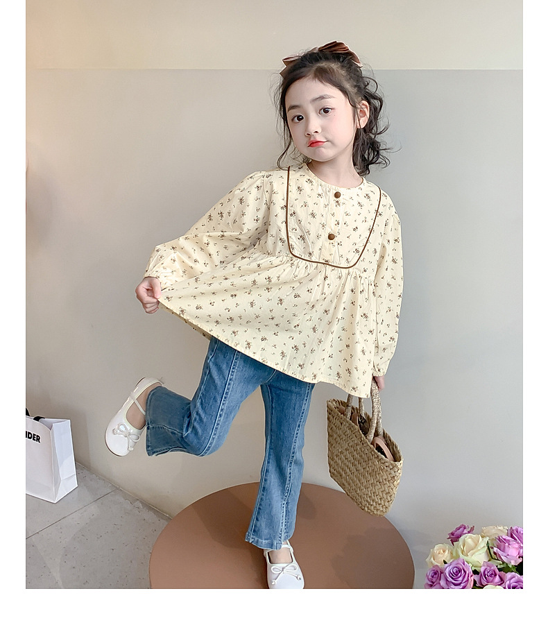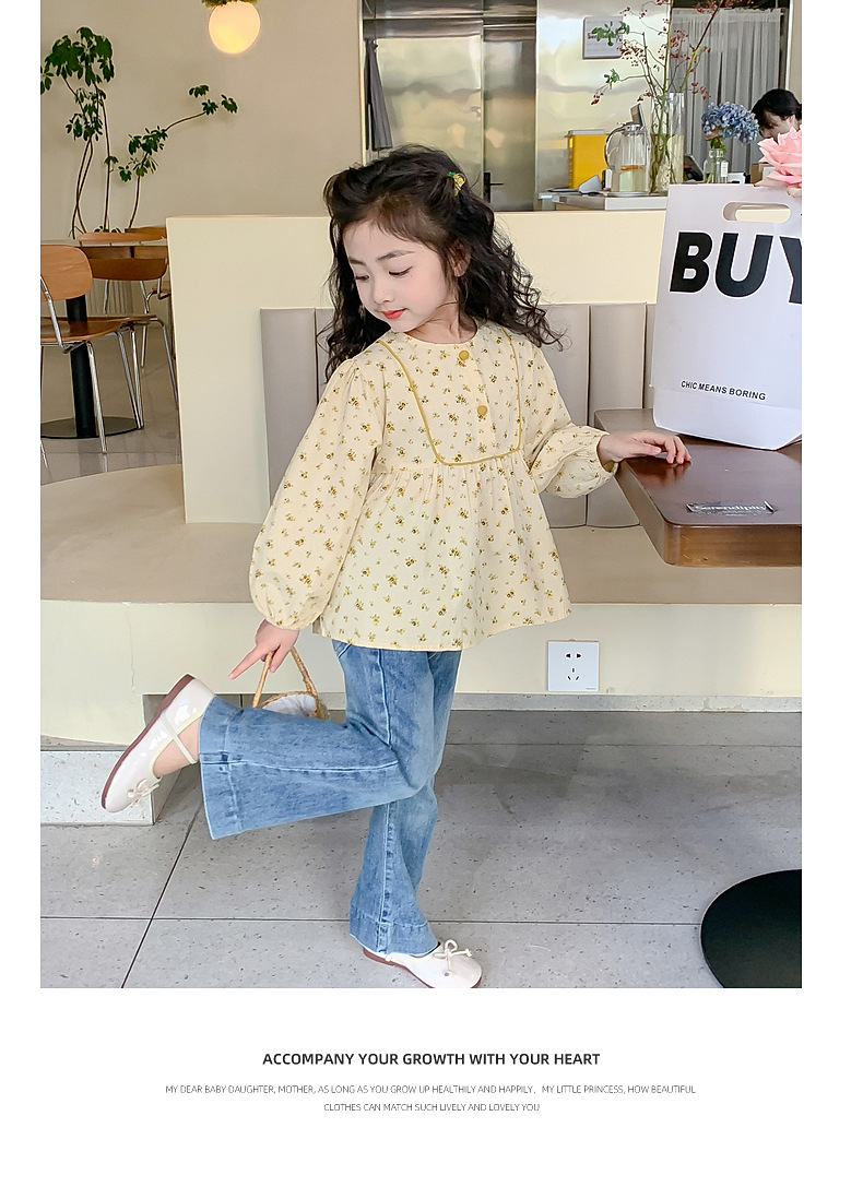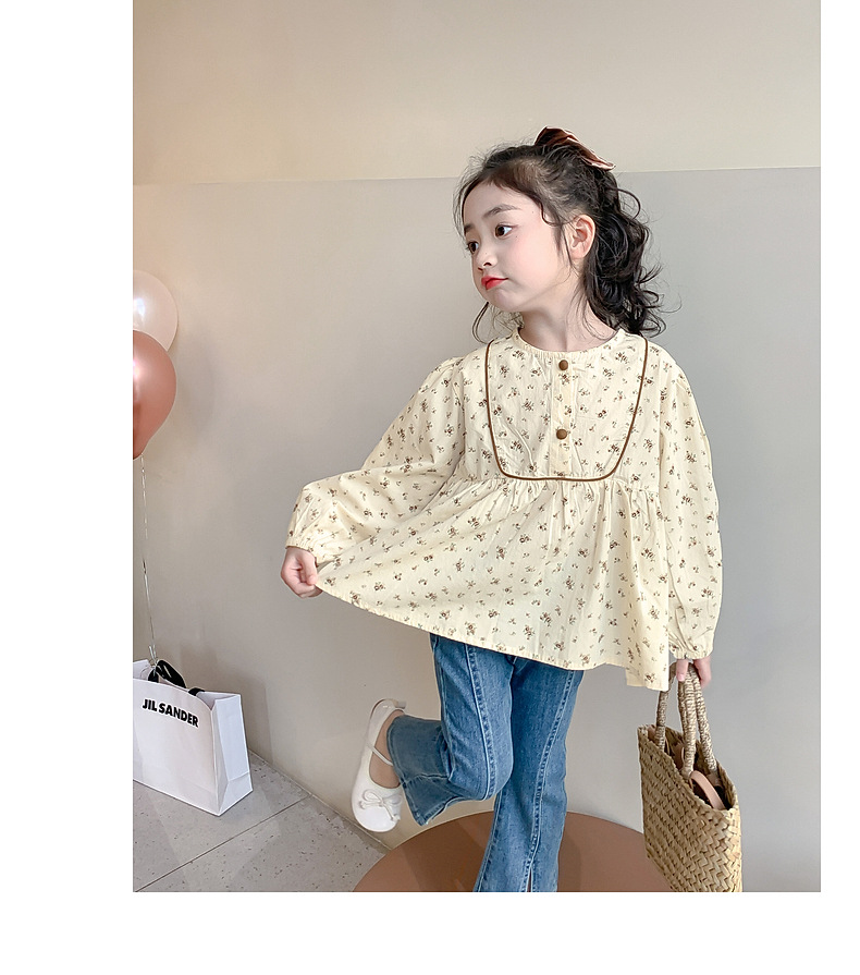 여자 셔츠 유행 여자 꽃 무늬 긴팔 셔츠 봄, 가을 2025 새로운 가을 아동 의류 아동상의 가을 의류스토어 가기