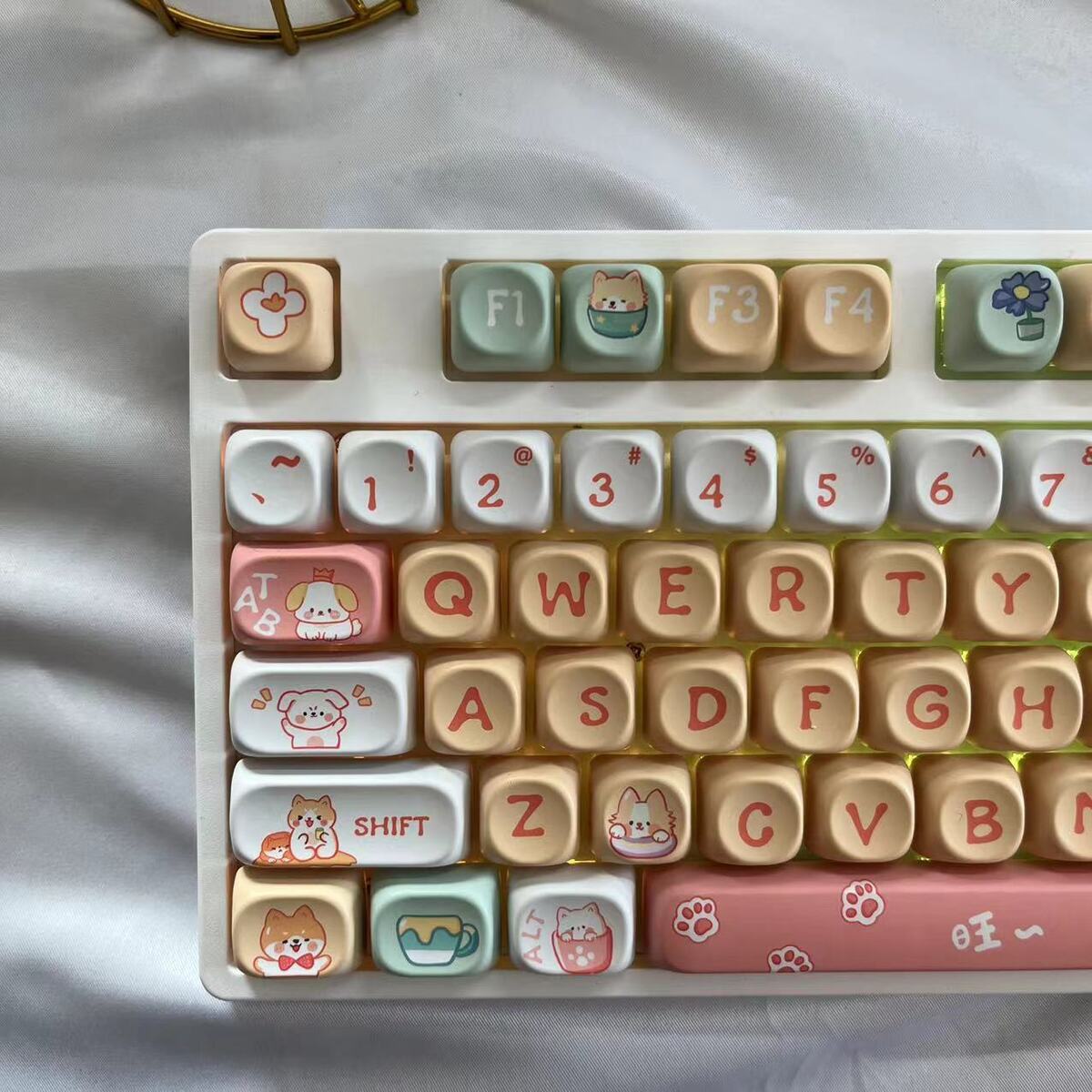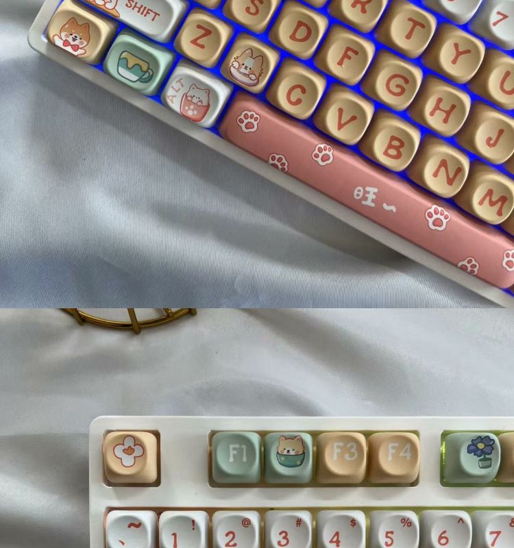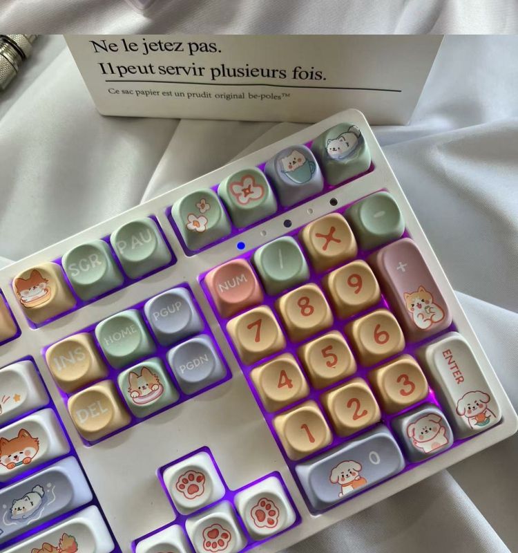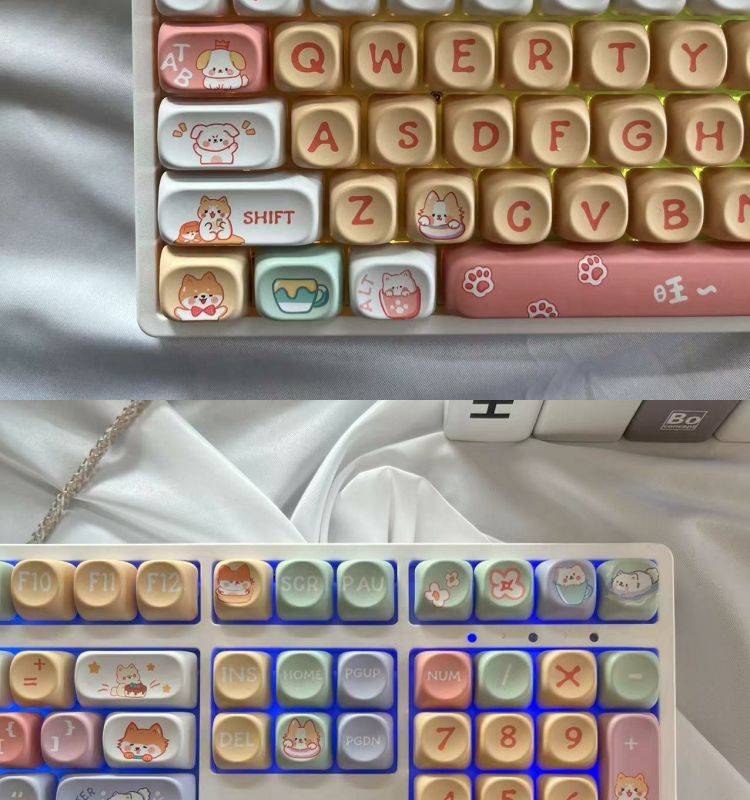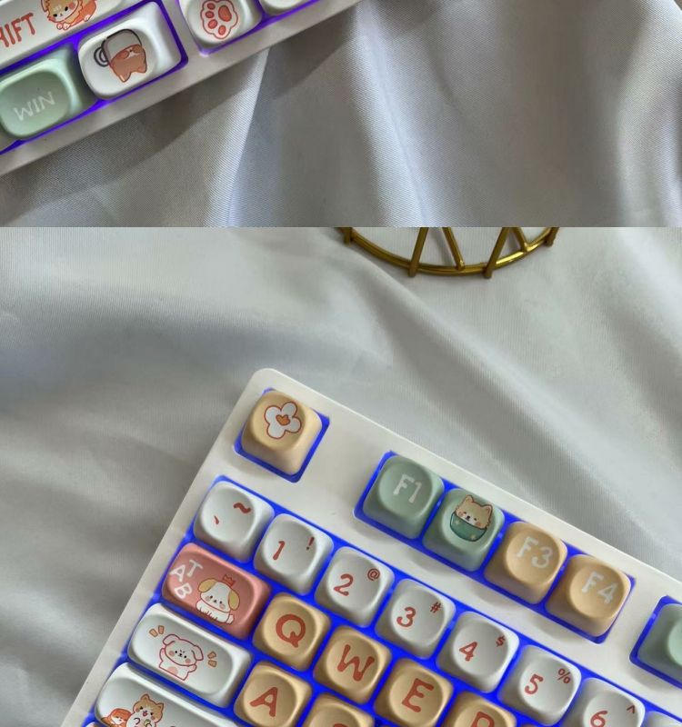 • 108키 3모드 화이트 해피퍼피 테마_사일런트 피치 스위치 V2 느낌 좋음
