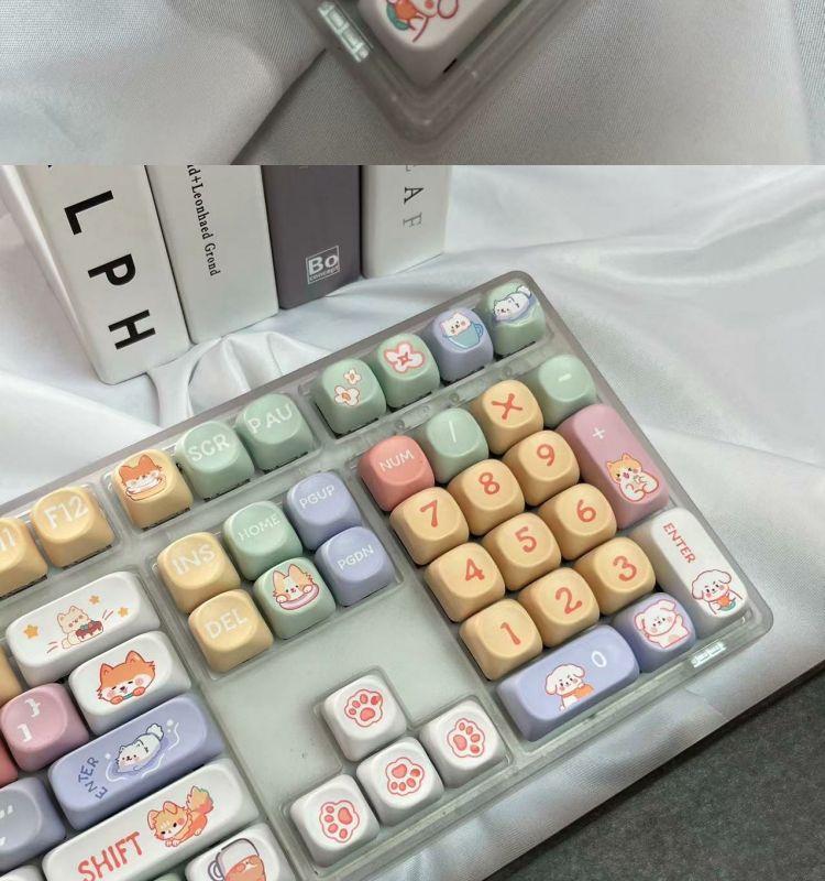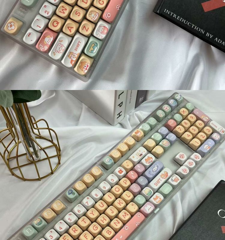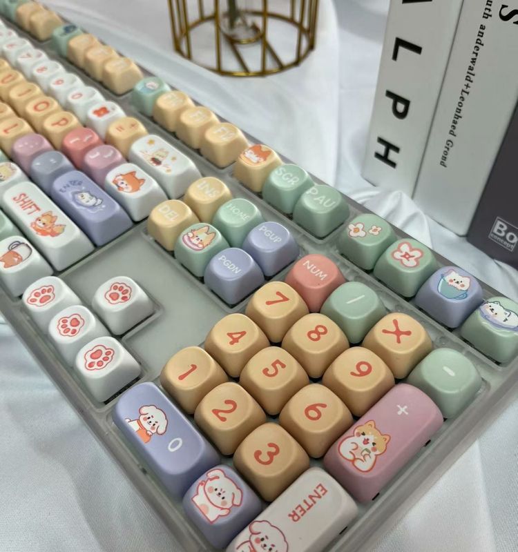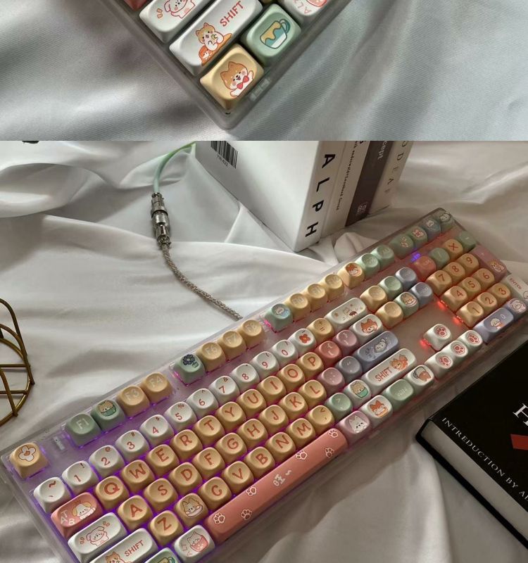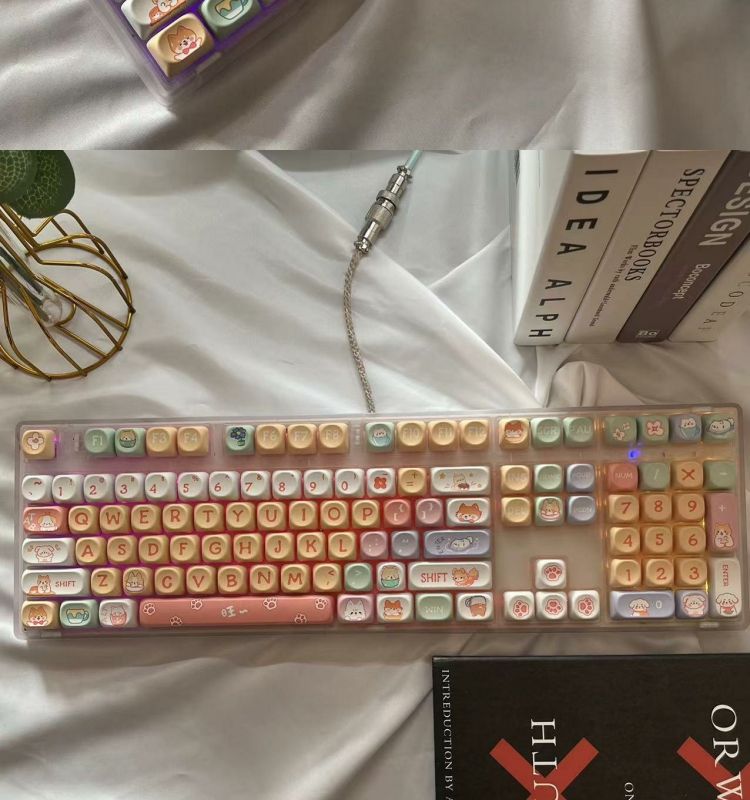 • 108키 3모드 완전 투명 해피 강아지 테마_사일런트 피치 스위치 V2 느낌이 좋음