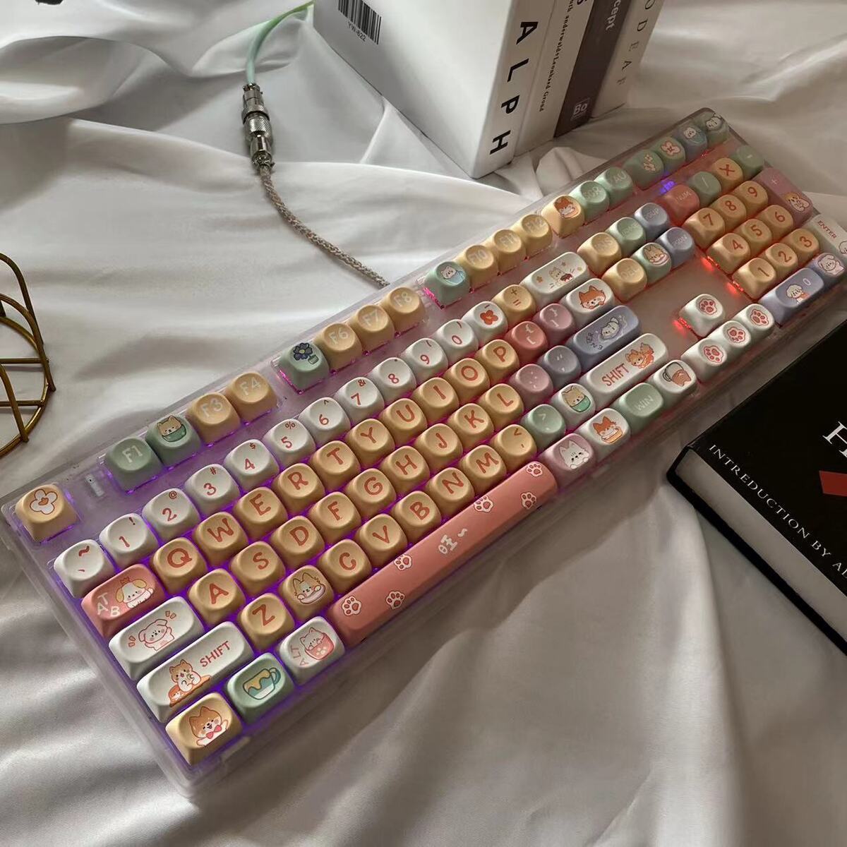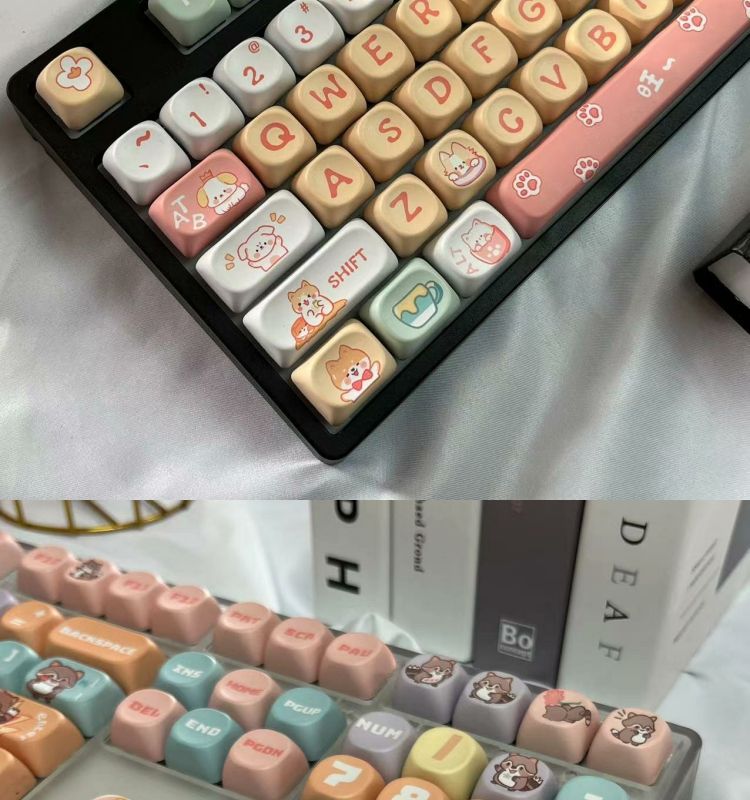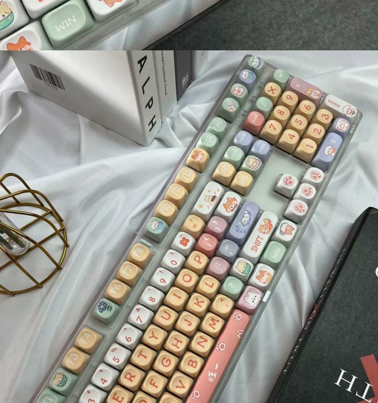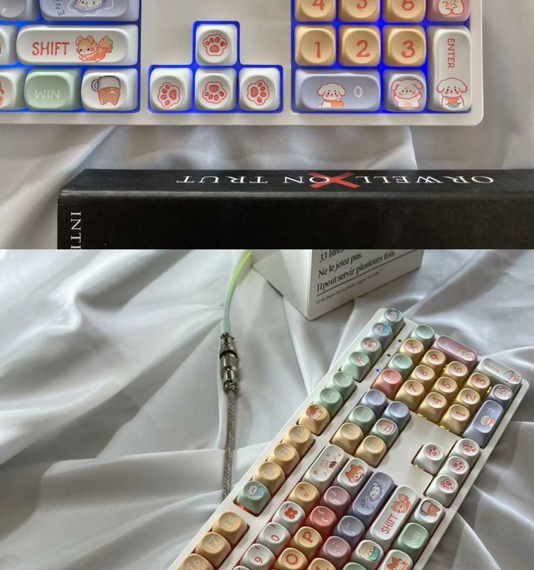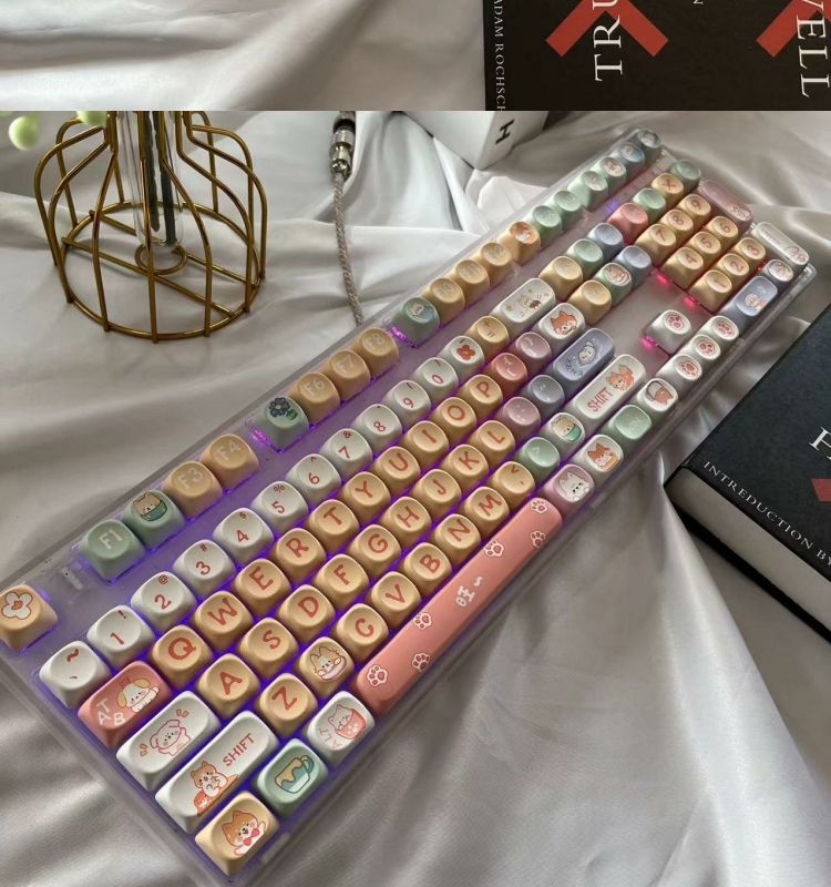 • 108키 3모드 완전 투명 해피 강아지 테마_사일런트 피치 스위치 V2 느낌이 좋음