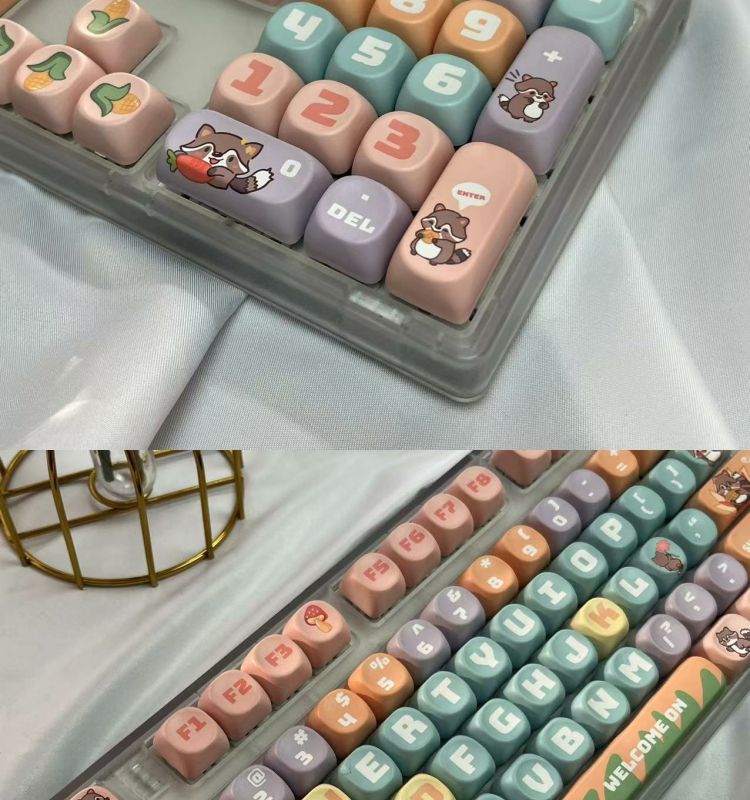 • 108키 3모드 완전 투명 작은 그릇 곰 테마_선형 밀크 퍼플 PRO 축/마작 사운드