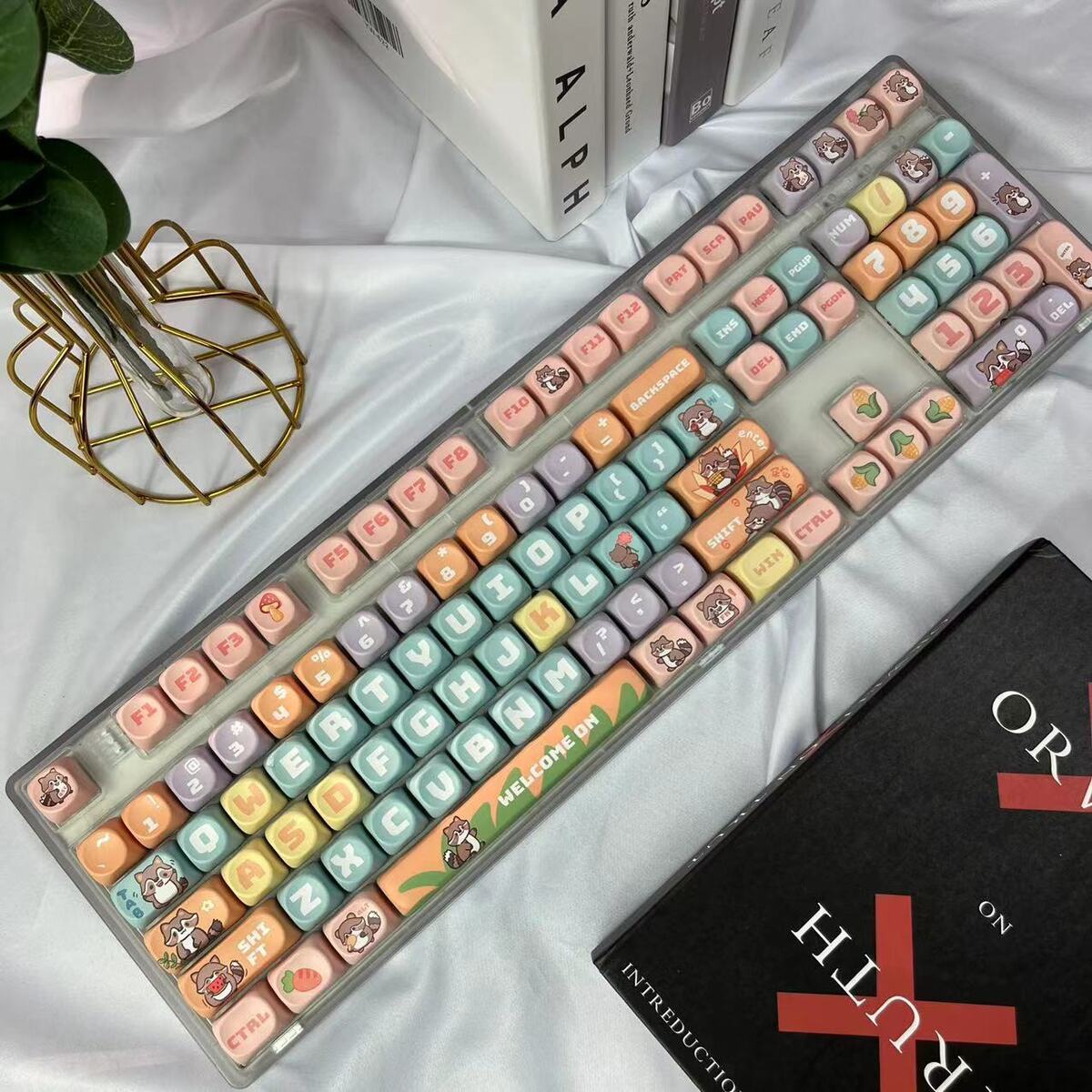 • 108키 3모드 완전 투명 작은 그릇 곰 테마_사일런트 피치 샤프트 V2 느낌이 좋음