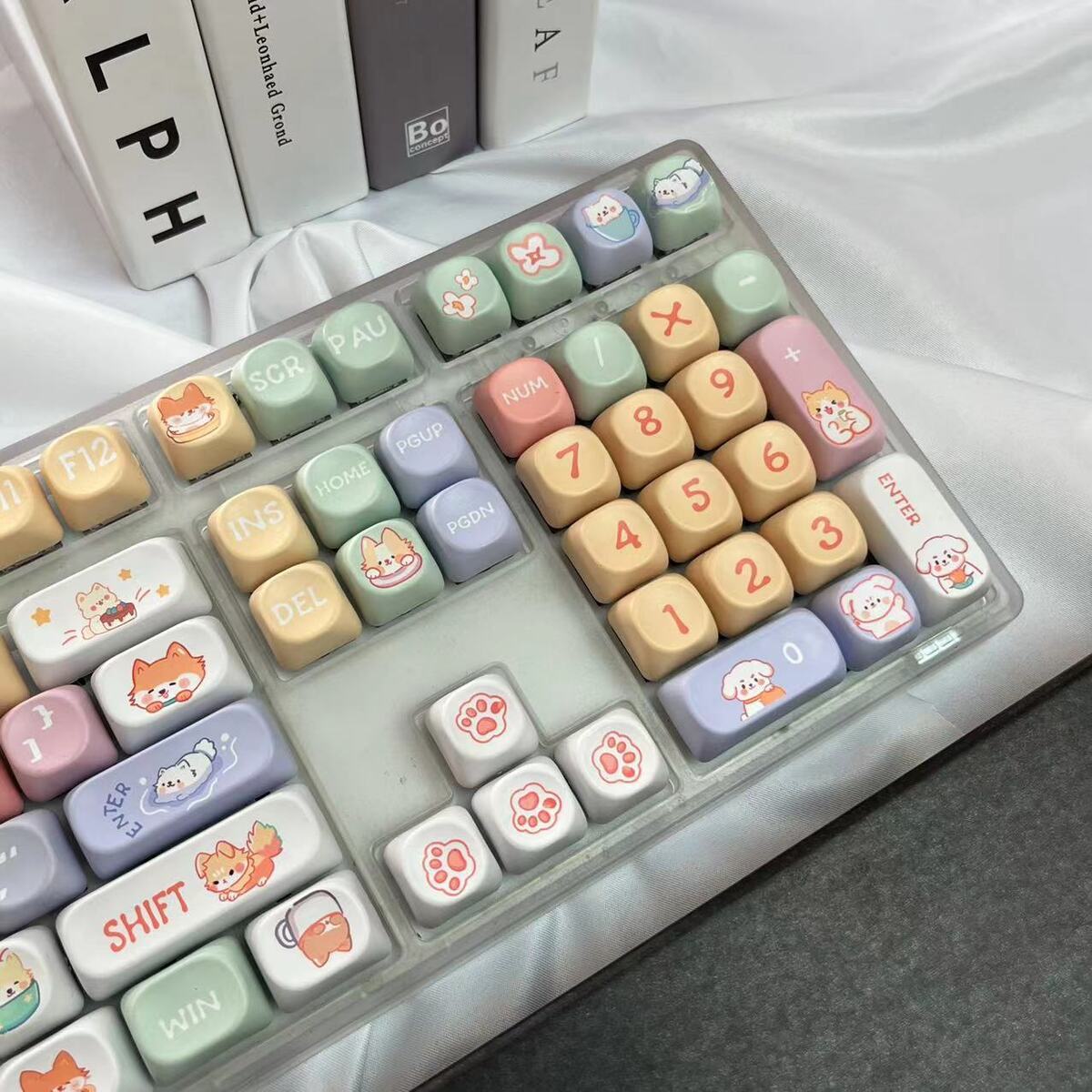 • 108키 3모드 완전 투명 해피 강아지 테마_사일런트 화이트 샤프트 사일런트 소프트