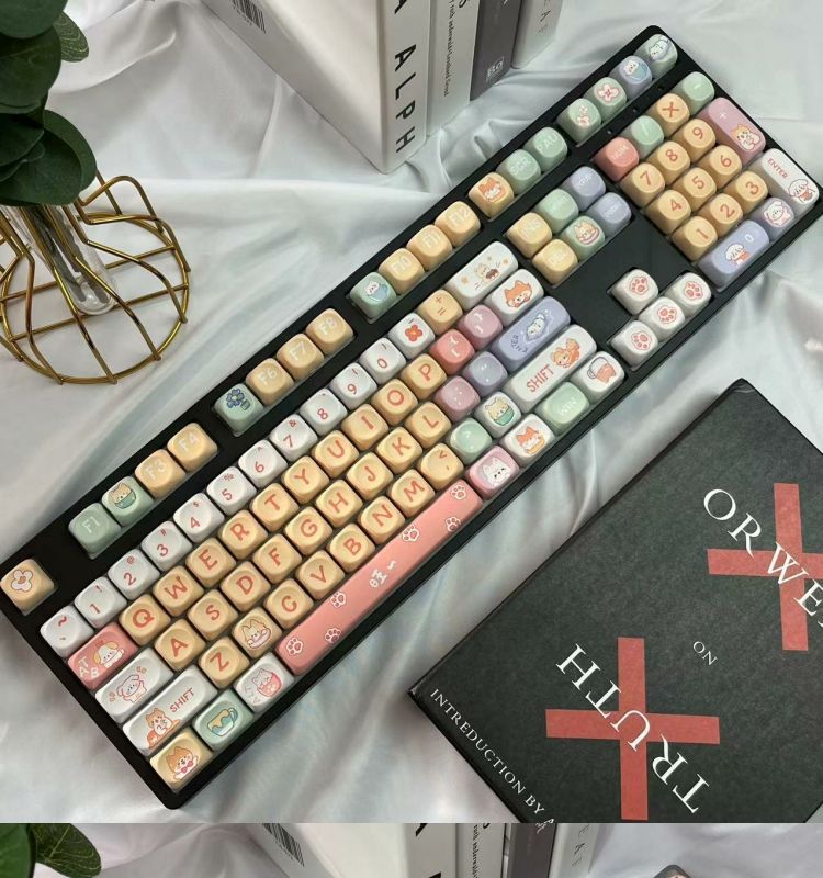 • 108키 3모드 흰색 작은 그릇 곰 테마_사일런트 피치 스위치 V2 느낌이 좋음