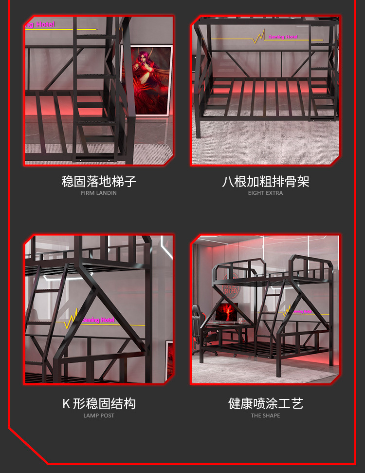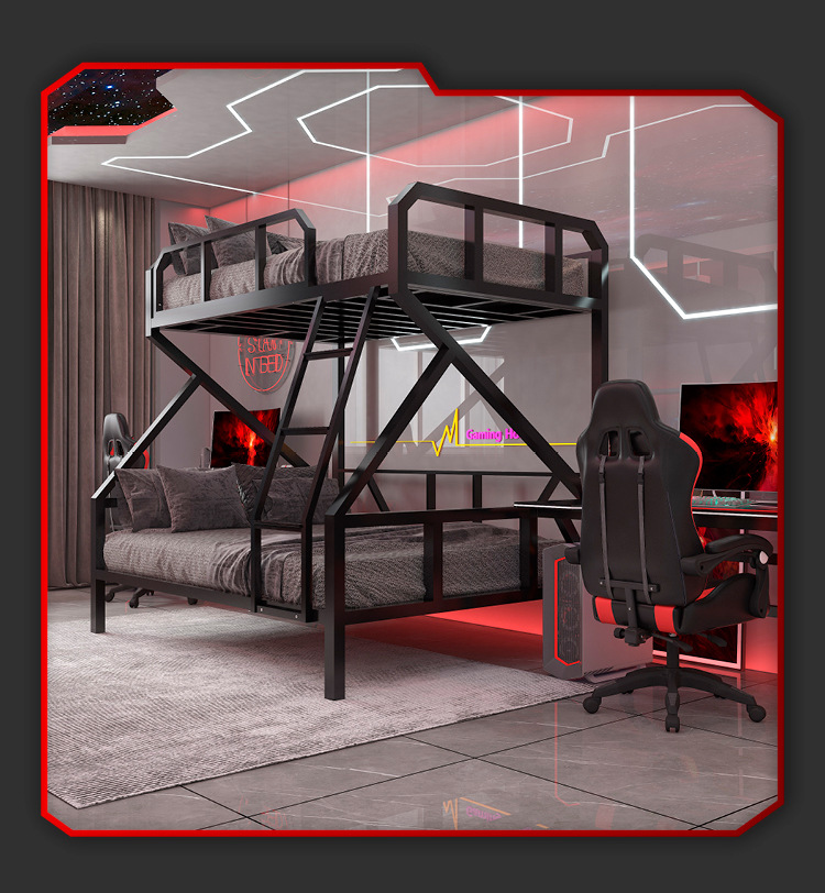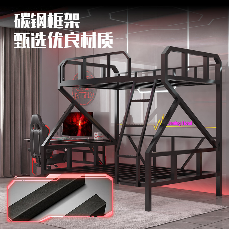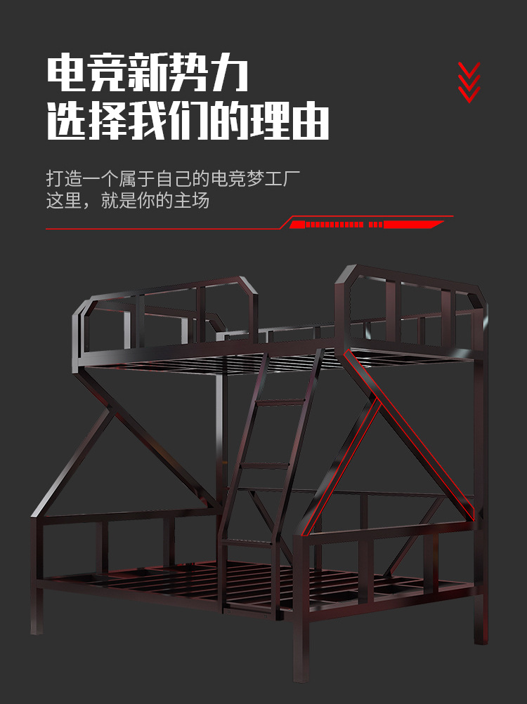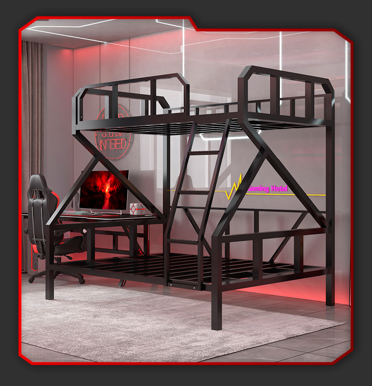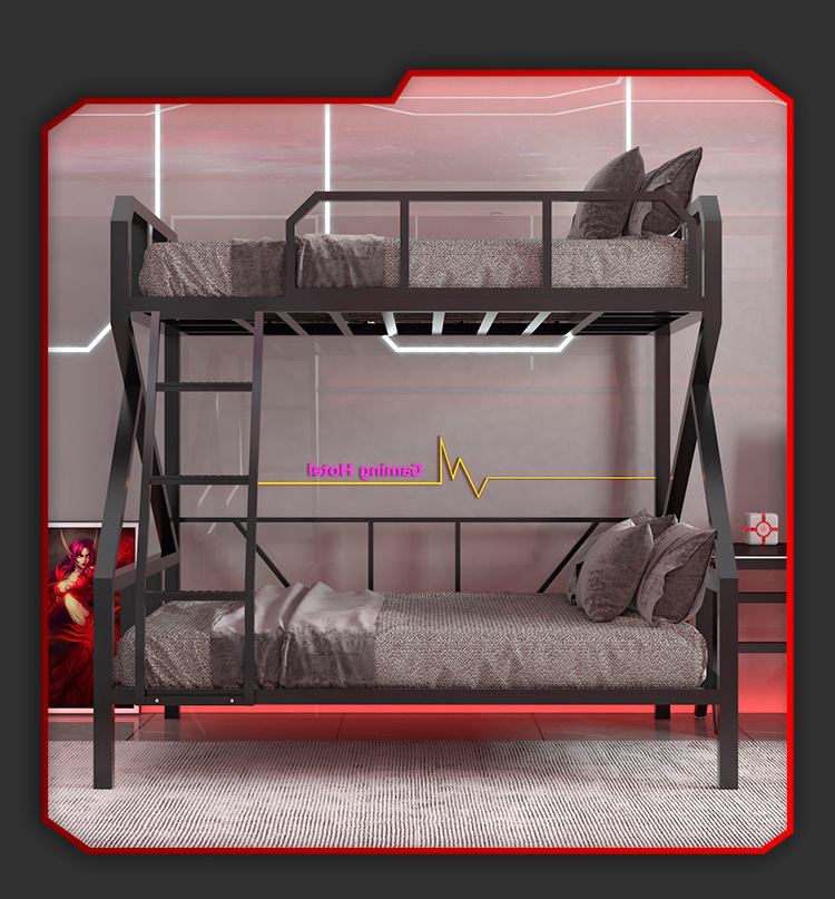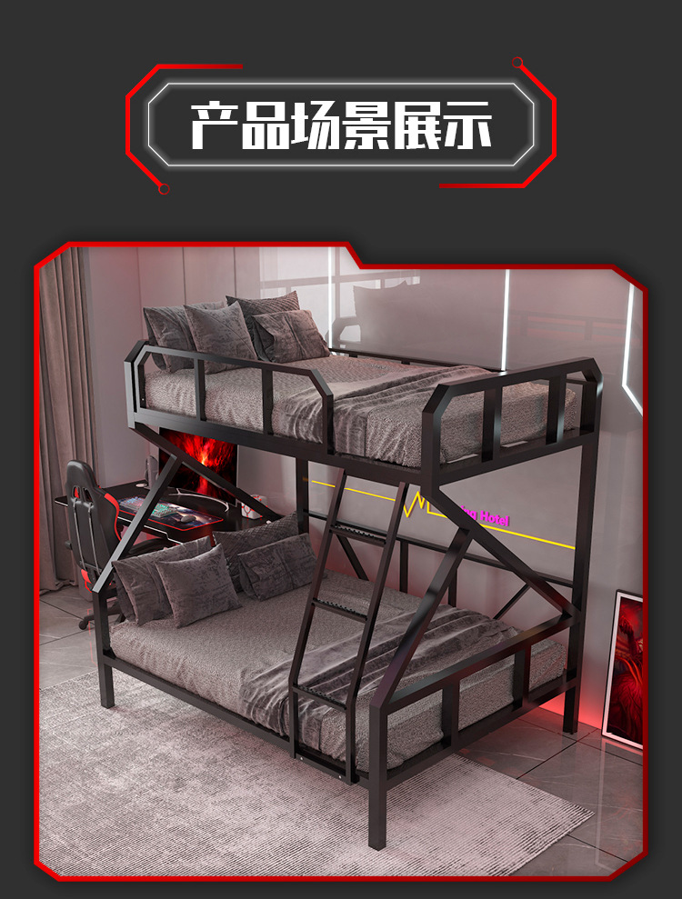 L $ H 전기 경쟁 침대 낮은 이층 아이언 침대 호텔 더블 아이언 프레임 높고 낮은 침대 아파트 학교 기숙사 침대