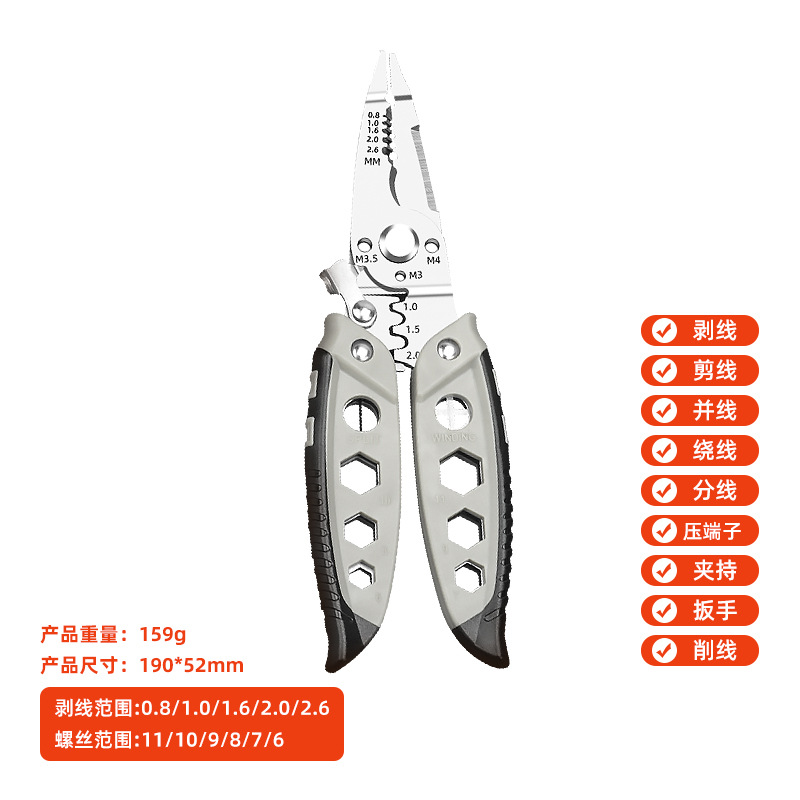 다기능 와이어 스트리퍼, 전선 껍질 벗기기, 전선 절단, 전선 뽑기, 전선 압착, 전선 감기, 만능 공구, 효율적인 다용도 펜치