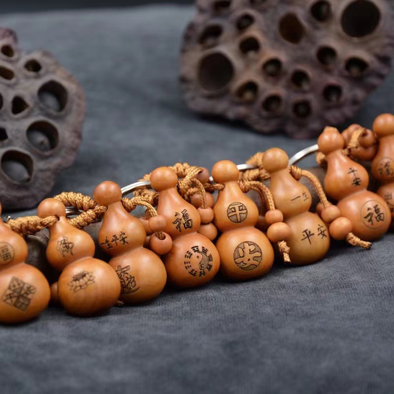 공장 도매 마호가니 키 체인 펜던트 풀루 조롱박 12 조디악 작은 조롱박 자동차 열쇠 장신구