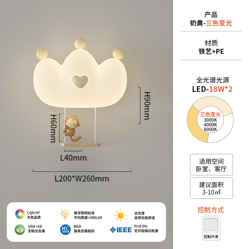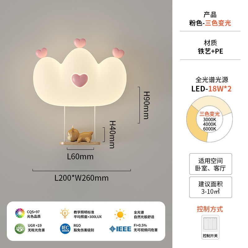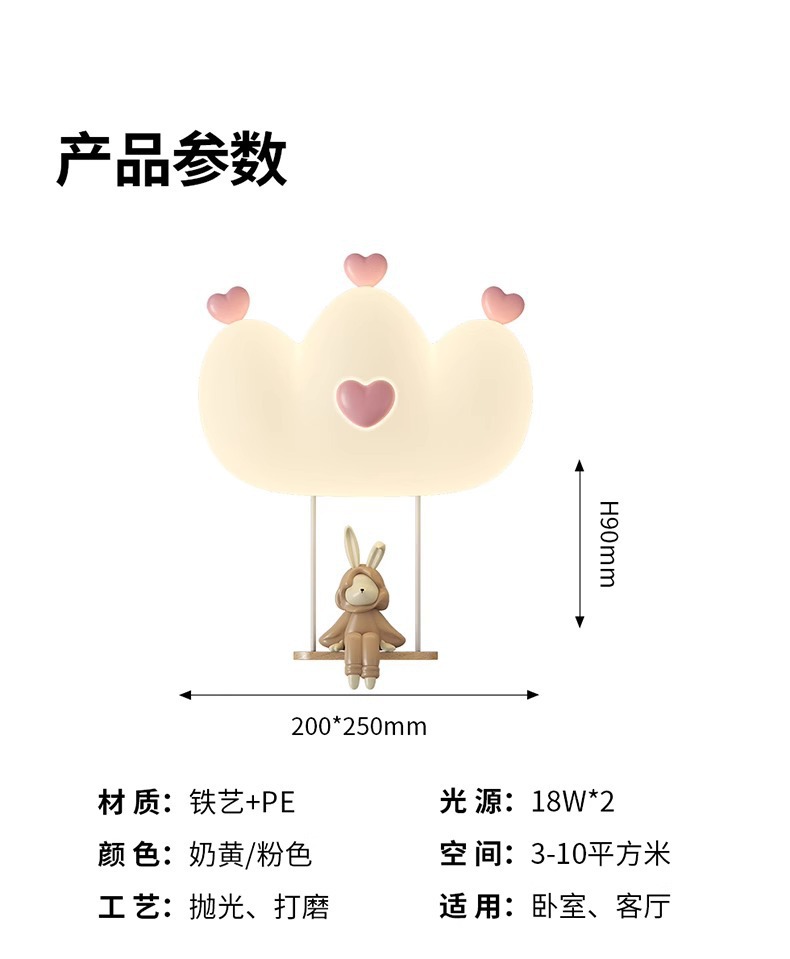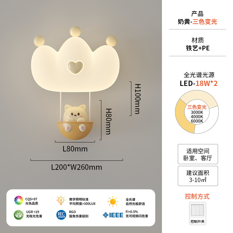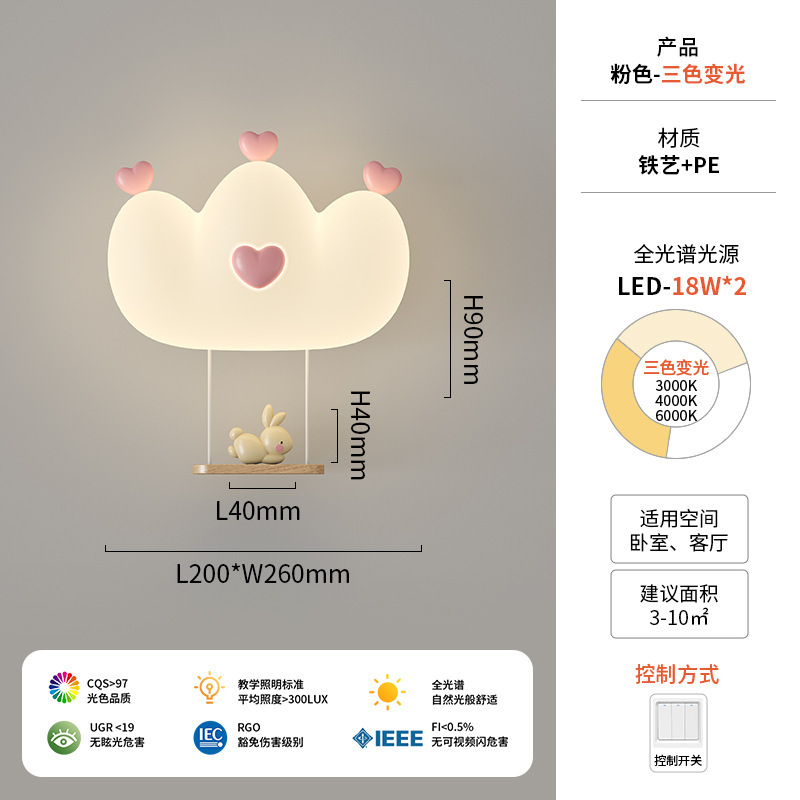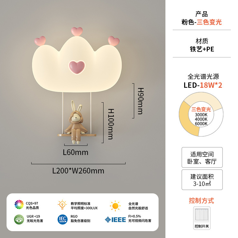 창조적 인 따뜻한 전체 스펙트럼 눈 보호 벽 램프 크림 바람 만화 어린이 창조적 인 토끼 방 침실 침대 옆 램프