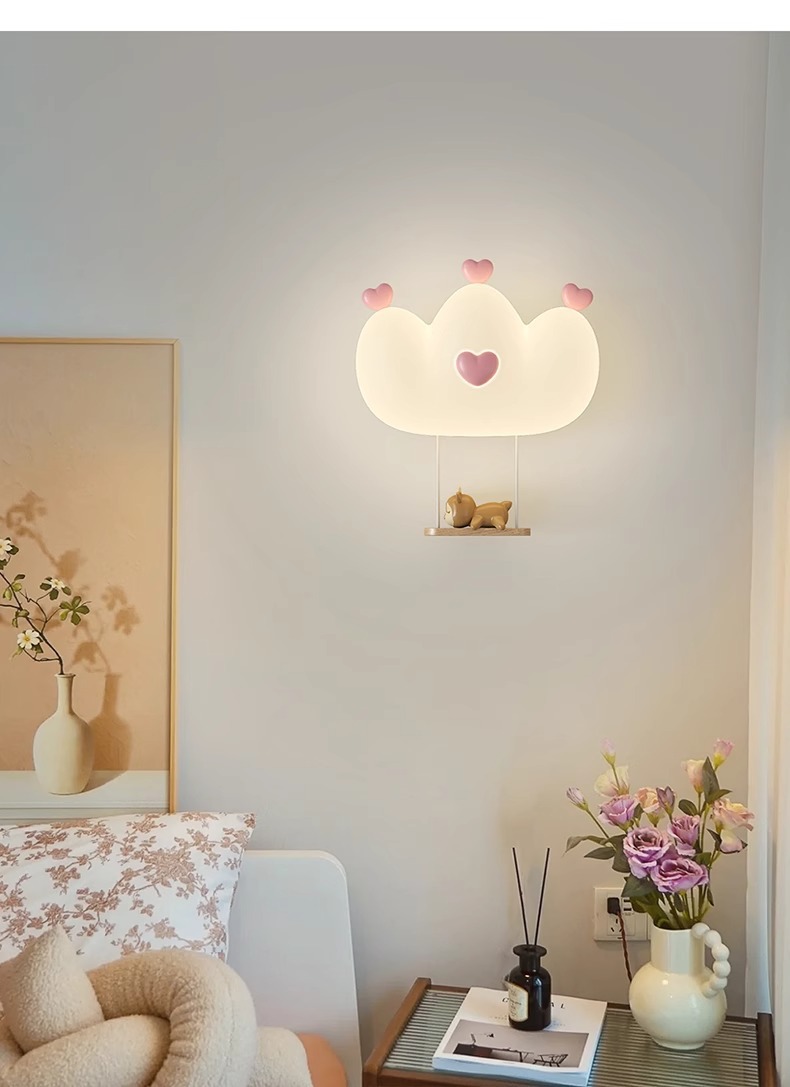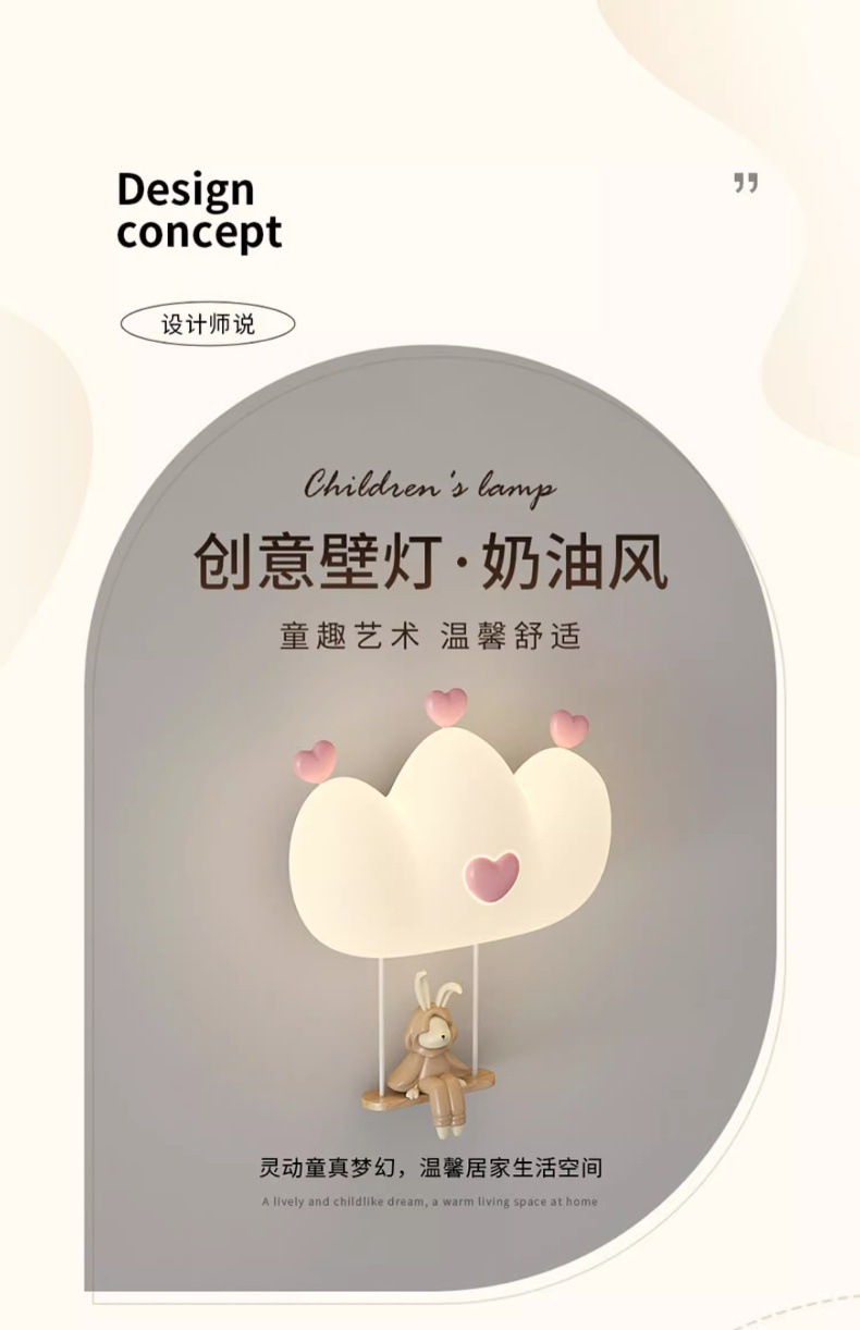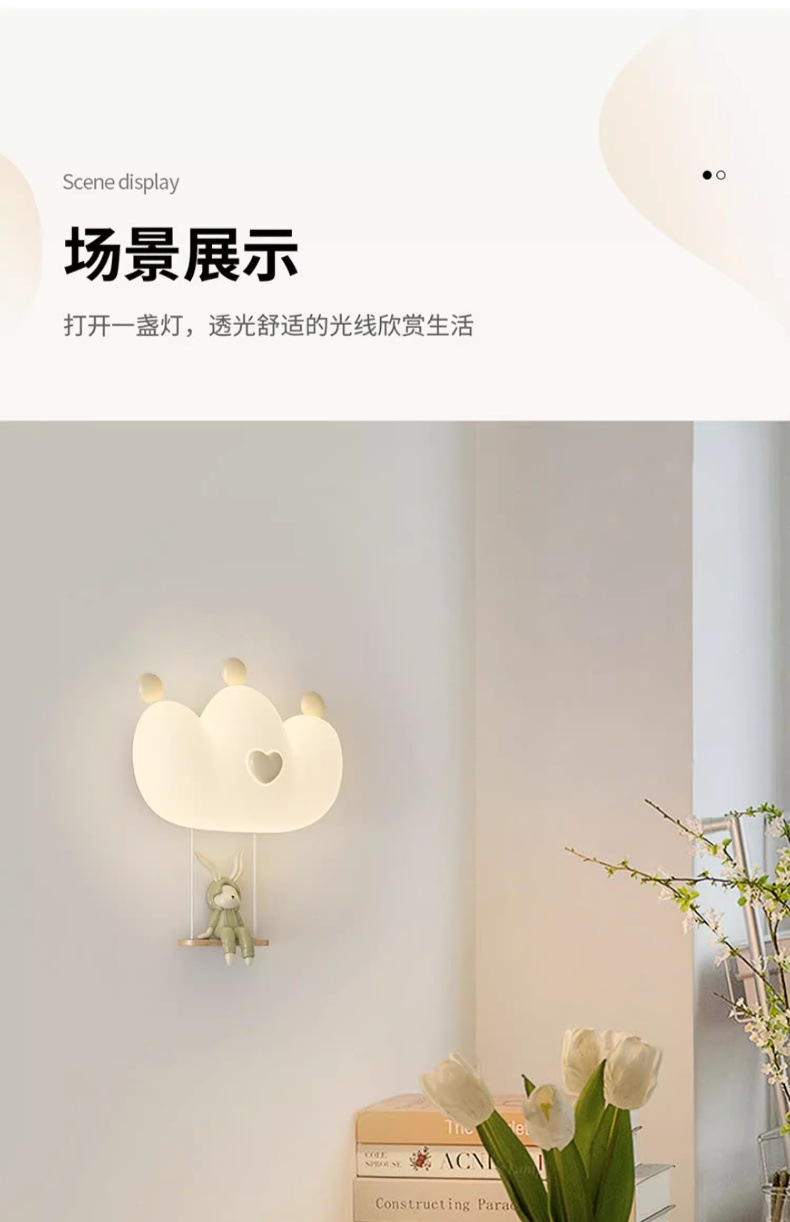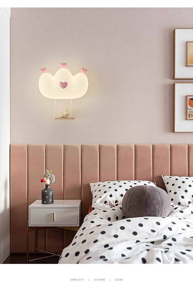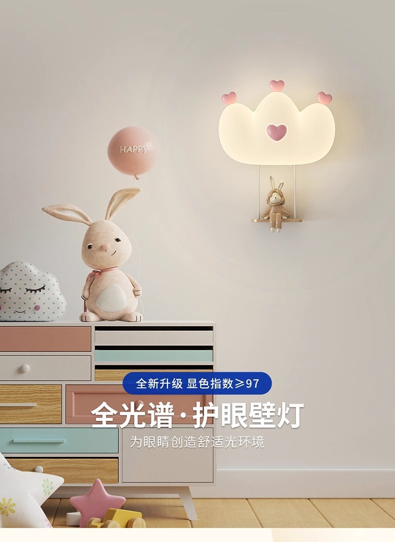 창조적 인 따뜻한 전체 스펙트럼 눈 보호 벽 램프 크림 바람 만화 어린이 창조적 인 토끼 방 침실 침대 옆 램프스토어 가기