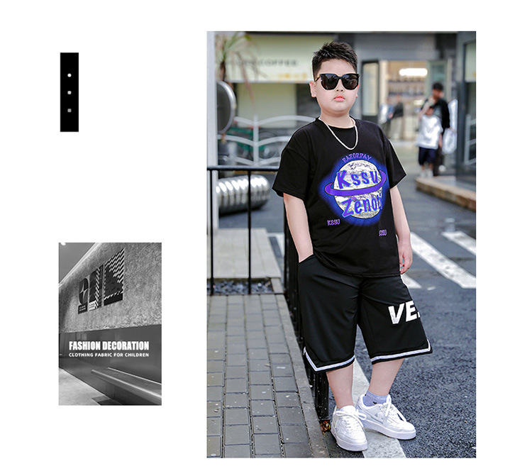 뚱뚱한 어린이 착용 남자들의 뚱뚱한 플러스 사이즈 반팔 티셔츠 여름 착용 큰 어린이 지방 어린이 플러스 사이즈 통기성 패션 반소매 면화 T