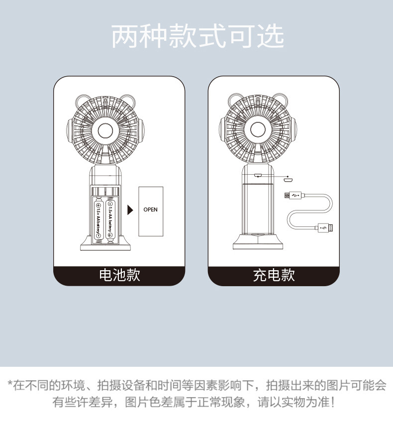 폭발성 아마존 새로운 핸드 헬드 작은 팬 USB 충전 데스크탑 학생 휴대용 만화 미니 바람