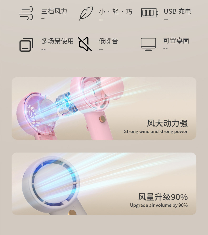 2024 새로운 목 팬 바람 작은 팬 여름 학생 USB 충전 휴대용 팬 공장 도매스토어 가기