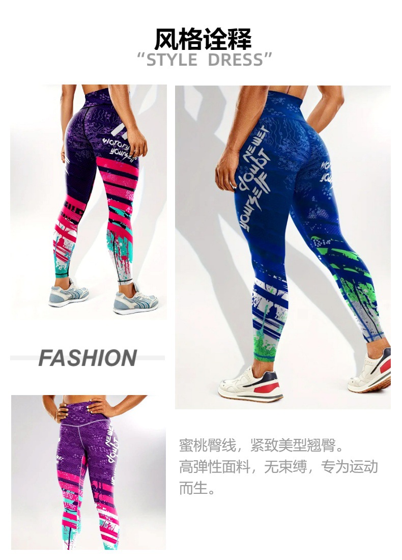 여성용 크로스보더 심리스 하이웨이스트 누드감 요가 팬츠, 복숭아힙 리프팅 타이트 피트니스 팬츠, 프린트 스포츠 타이트 팬츠, 힙업 효과