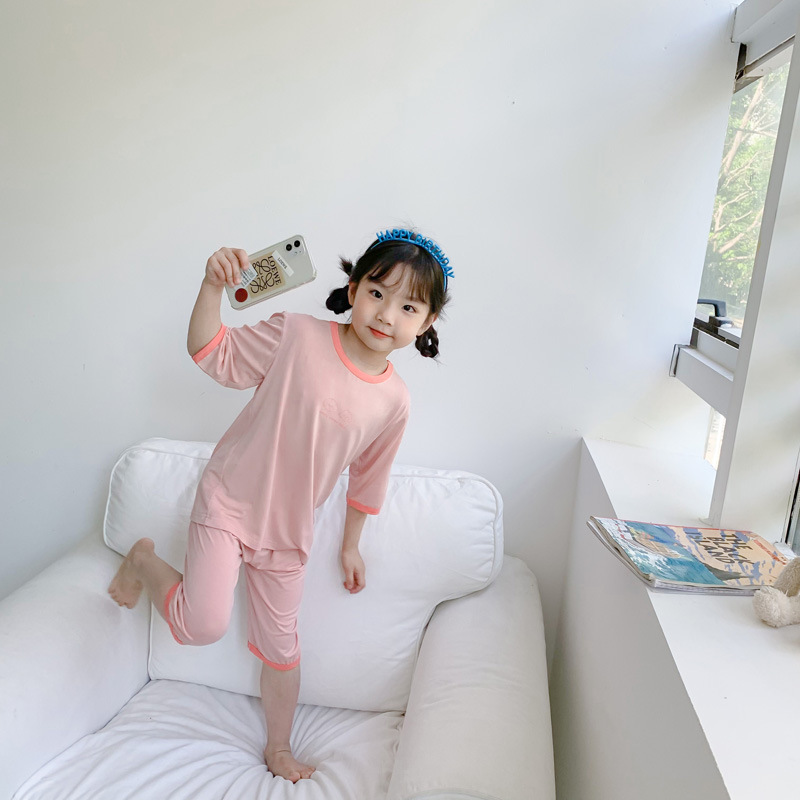 2023 년 어린이 여름 에어컨 남학생과 여학생을위한 가정용 옷 7 점 모달 아기 잠옷 세트 아동복 도매