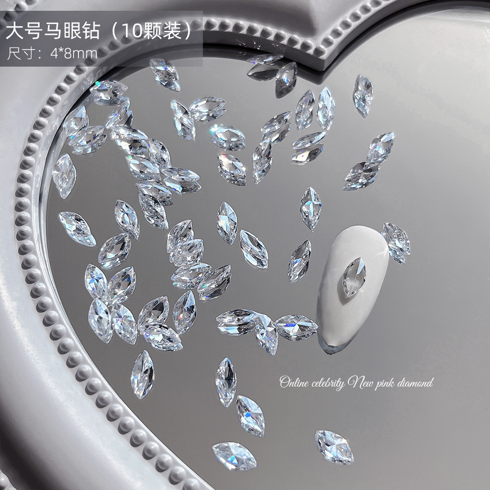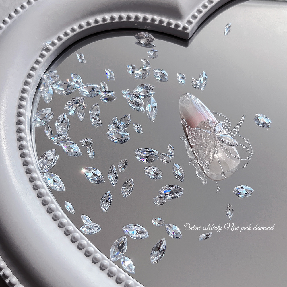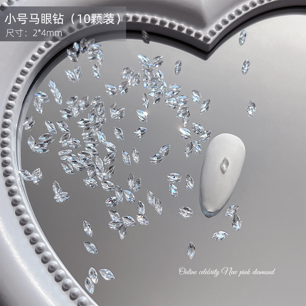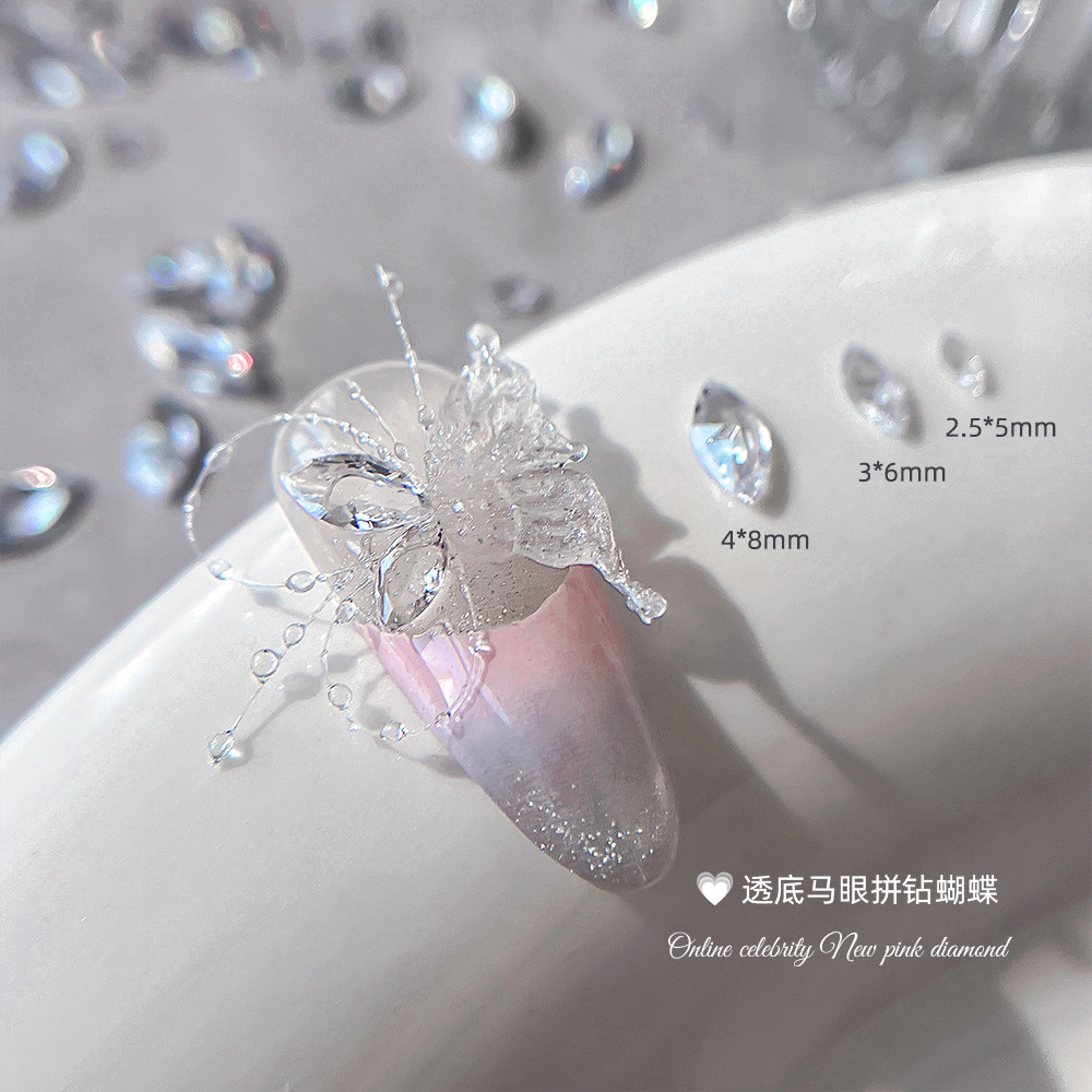 투명한 말 눈 지르콘 네일 쥬얼리 미니 뾰족한 바닥 드릴 그물 빨간 나비 날개 스티칭 네일 장식 드릴 도매스토어 가기